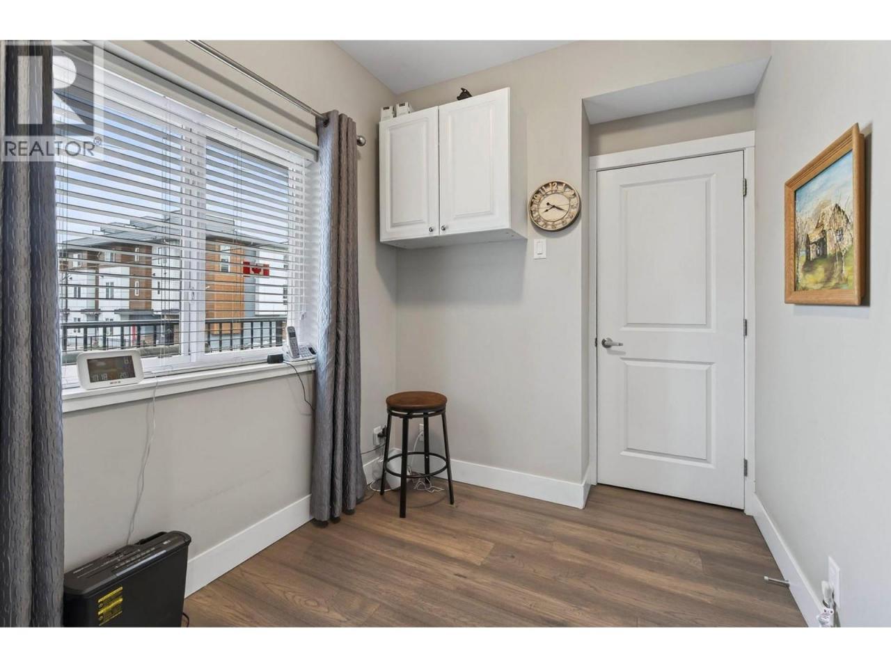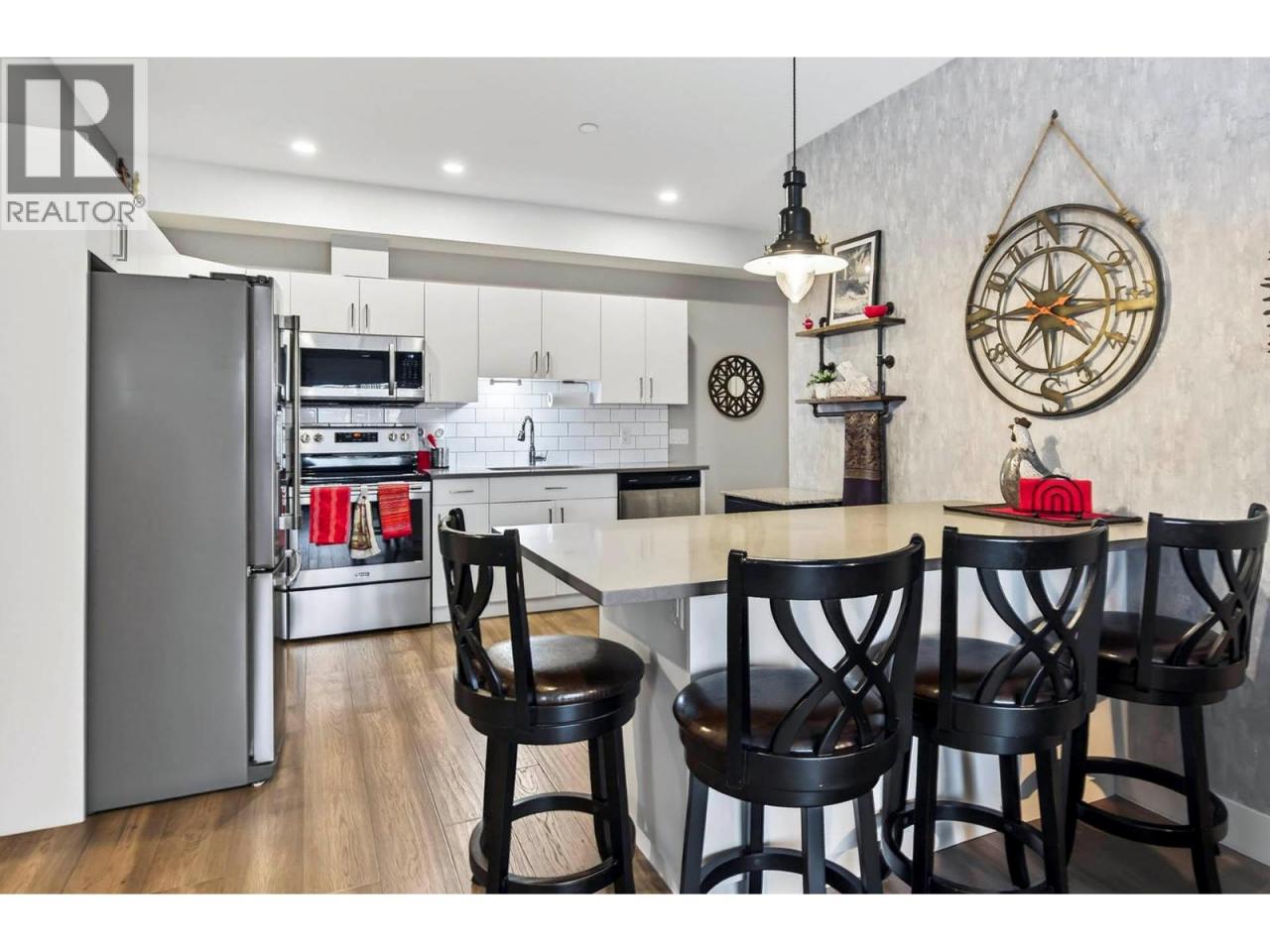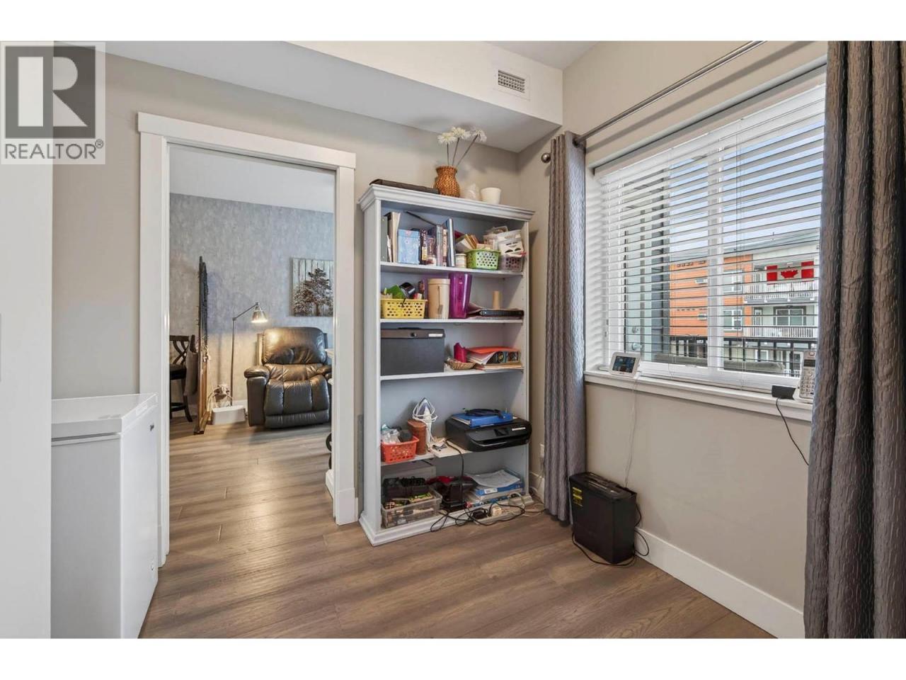 Welcome to this bright 1 bedroom + den corner unit, built in 2017 and offered by the original owners. Located on the second floor, this home features a larger-than-average deck with east and south exposure — perfect for morning sun and outdoor living. The open-concept kitchen includes upgraded appliances and an oversized island with added storage. The den (7’ x 8’4”) is ideal for a home office or guest space. Features include forced air natural gas heating with central A/C, in-suite laundry, secure fob entry with intercom, elevator access, a nearby storage locker, and a large community room for entertaining. Rentals are allowed and pets are permitted with strata approval. One covered parking stall is included. Enjoy an unbeatable downtown location with excellent walkability to shops, dining, and everyday amenities. A modern, move-in-ready home in a prime setting. (id:6769)