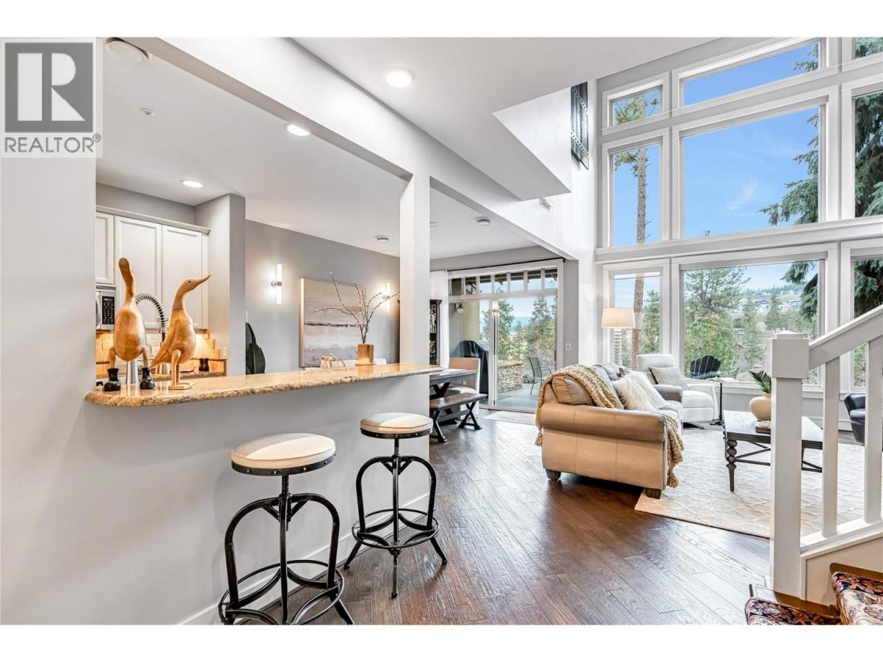 Experience resort living at its finest in this modern loft- inspired home at Predator Ridge offering exceptiional value. Soaring ceilings, sun-filled spaces, and resort amenities at your doorstep — welcome to elevated living at Predator Ridge. This loft-style home offers 19-foot ceilings, two primary bedrooms plus a guest bedroom or den, all with private ensuites. Wide-plank hardwood flooring, in-floor radiant heat on the living area, and a striking fireplace wall anchor the open living area, while tall transom windows capture natural light and golf course and resort views. The kitchen is designed for entertaining with granite countertops, stainless steel appliances, a pantry, and an entertainment bar. Large sliding doors open to a private patio, perfectly positioned to enjoy the surrounding scenery. Located just steps from trails and the village centre, residents enjoy a bare land strata fee of $339.00, including landscaping and Fitness Centre access with 25 metre lap pool, hot tub, steam rooms, gym, and yoga studio. Enjoy all the amentities that is offered including two world class golf courses, dining, tennis, hiking and endless outdoor recreation as well as an indoor tennis/pickleball faciity. (id:6769)
