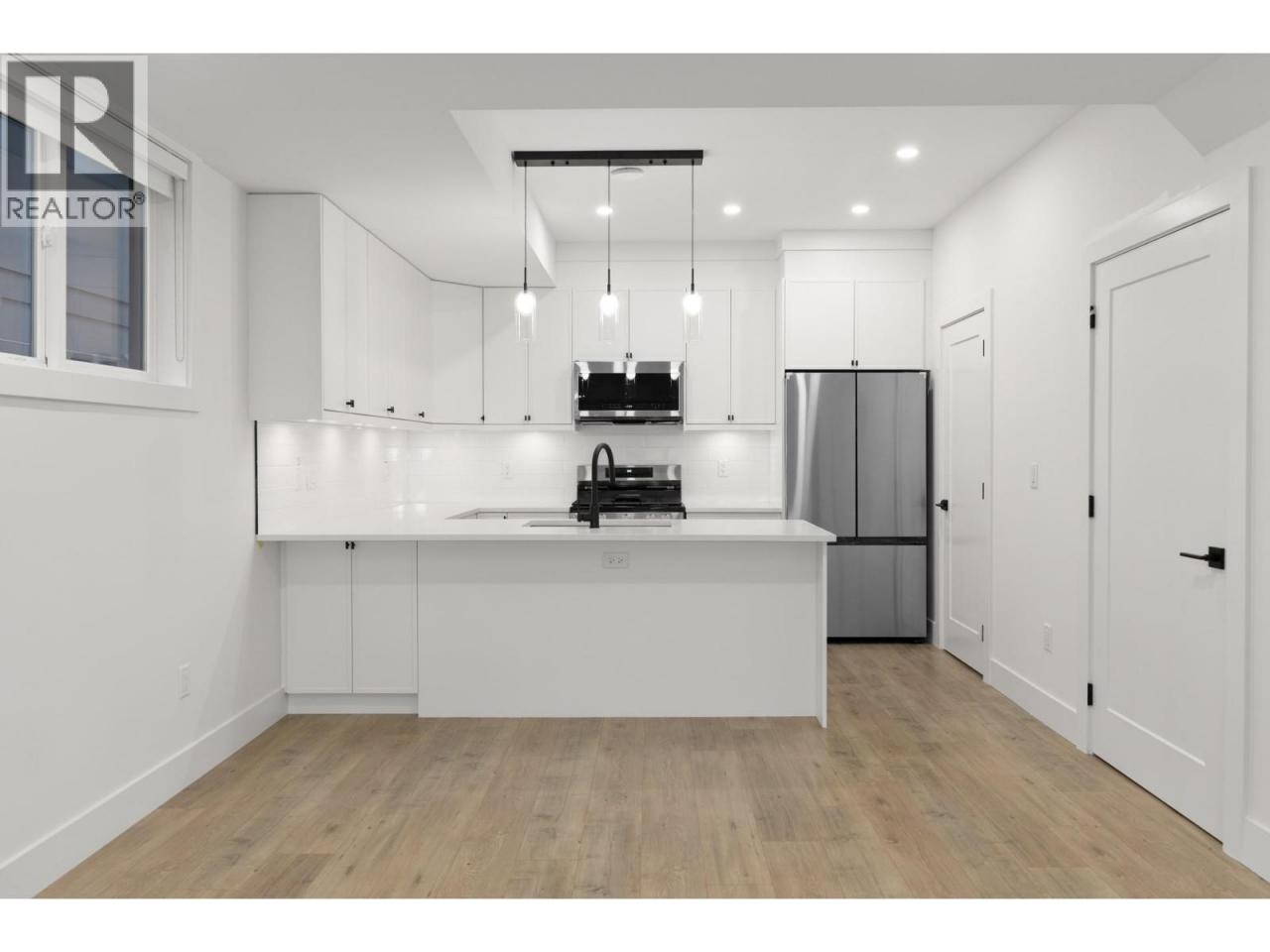 This newly built three-bedroom, three-bathroom townhome is located in Kelowna’s highly walkable South Pandosy neighbourhood, offering easy access to everyday amenities, outdoor recreation, and key destinations. Kelowna General Hospital and Okanagan College are both nearby, along with shopping, dining, transit, and waterfront parks. The home is thoughtfully arranged over three levels, providing a practical layout suited to modern urban living. The main level features an open kitchen and living area with quartz countertops, a gas cooktop, and contemporary finishes, as well as main-floor laundry, a utility area, and a convenient powder room. The second level includes three bedrooms, including a primary bedroom with a walk-in closet and ensuite, plus a full main bathroom serving the additional bedrooms. A private rooftop terrace offers an additional outdoor living space, while a fenced patio, balcony, and detached single garage add everyday functionality. Street parking is also available. Boyce-Gyro Beach Park is just minutes away and remains one of Kelowna’s most popular lakeside destinations. The recently completed waterfront park at the corner of Abbott Street and KLO Road further enhances access to green space, lakefront walking routes, and outdoor gathering areas. Pandosy is well known for its vibrant streetscape, local boutiques, cafes, and restaurants, as well as its connection to the Abbott Street corridor and nearby beaches. Covered by a 2-5-10 New Home Warranty. (id:6769)