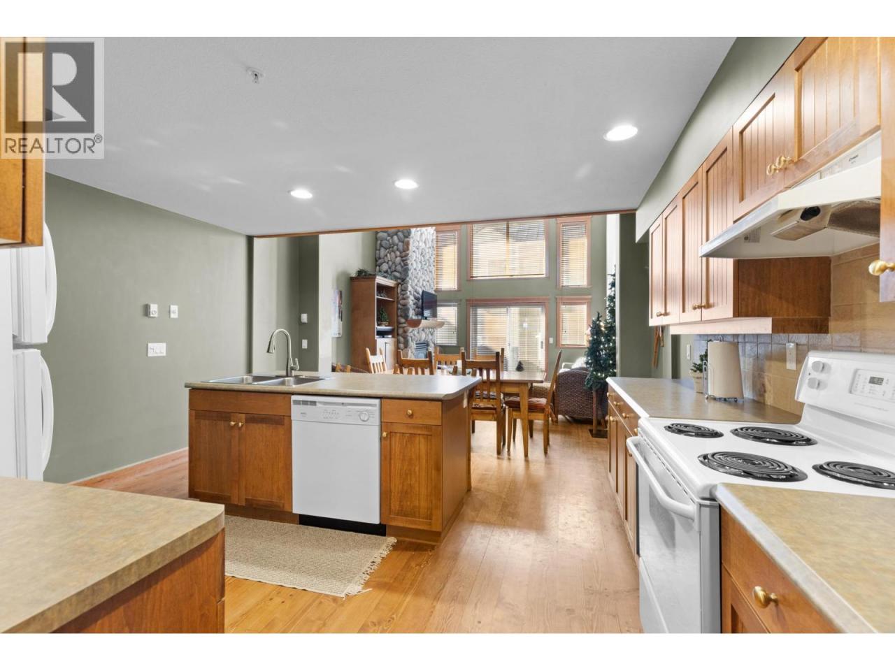 Welcome to Tree Tops, one of Big White’s most sought-after developments offering true ski-in/ski-out convenience via the Mogul Cat Track. This 2 Bed/3 Bath townhome combines mountain charm with modern comfort, making it the perfect getaway for family, friends, or rental guests. Step inside to an airy, open-concept layout highlighted by soaring ceilings & abundance of natural light. The main living area features a stunning floor-to-ceiling river-rock fireplace surrounded by custom built-ins—the ideal centerpiece for cozy evenings after a day on the slopes. Just off the living room, you’ll find your private hot tub, a perfect spot to unwind under the stars. The large kitchen is designed for entertaining with shaker cabinetry, a sit-up island, and plenty of prep space. A versatile loft overlooks the living area, providing a fun hangout for kids and includes a sofa bed for extra sleeping accommodations. Upstairs, both bedrooms offer private ensuites, while one also includes a flex/den space that can easily be used as an additional sleeping area. With a variety of flexible layouts, this home is well-suited to host multiple families or groups. The timeless design blends rich tones, wood accents, & a cozy mountain feel throughout. Additional conveniences include a covered parking stall directly across from the unit & two storage lockers-one for owners and one for guests. This turnkey property is equally perfect as your personal mountain retreat or a high-demand rental investment! (id:6769)