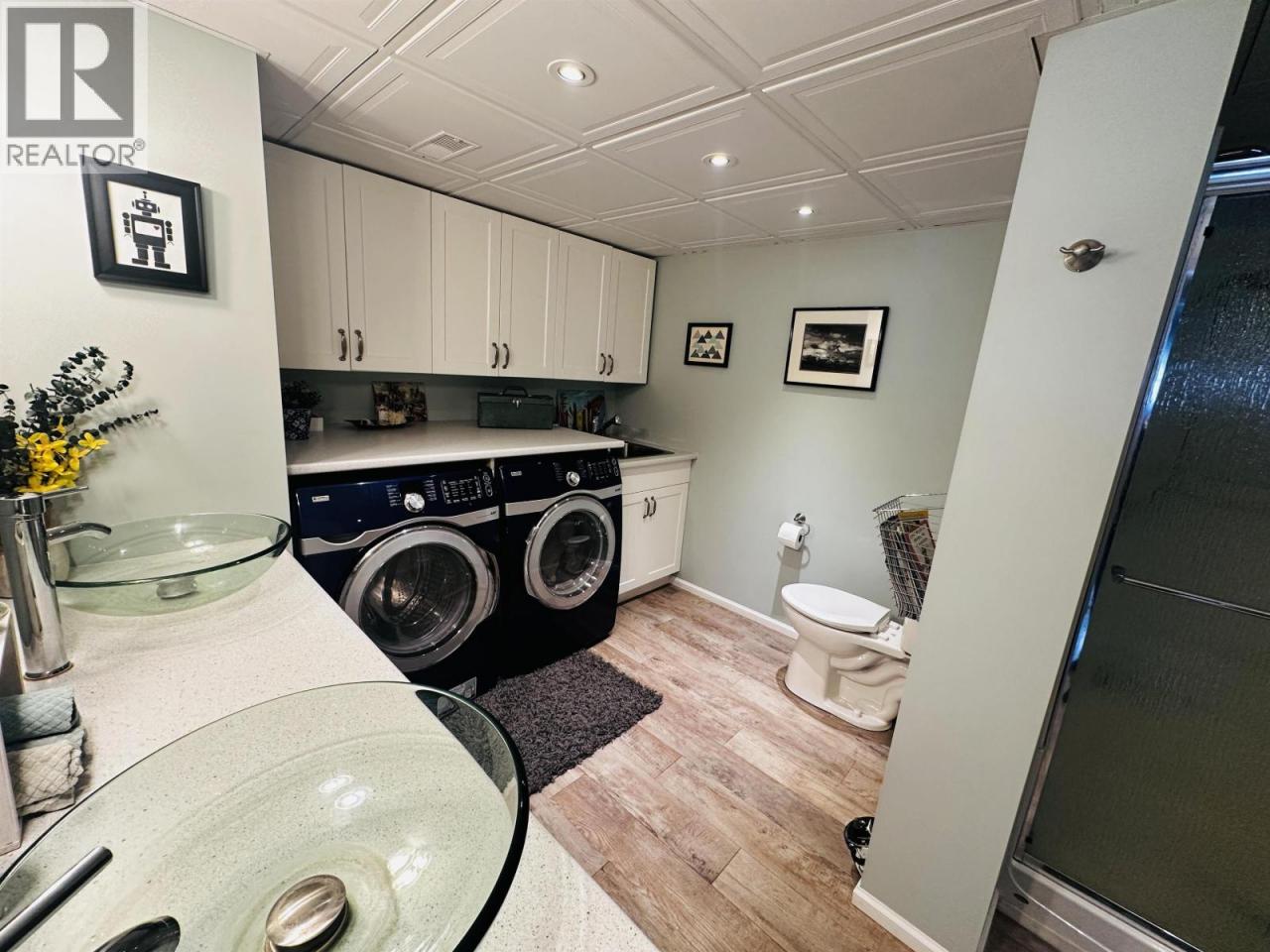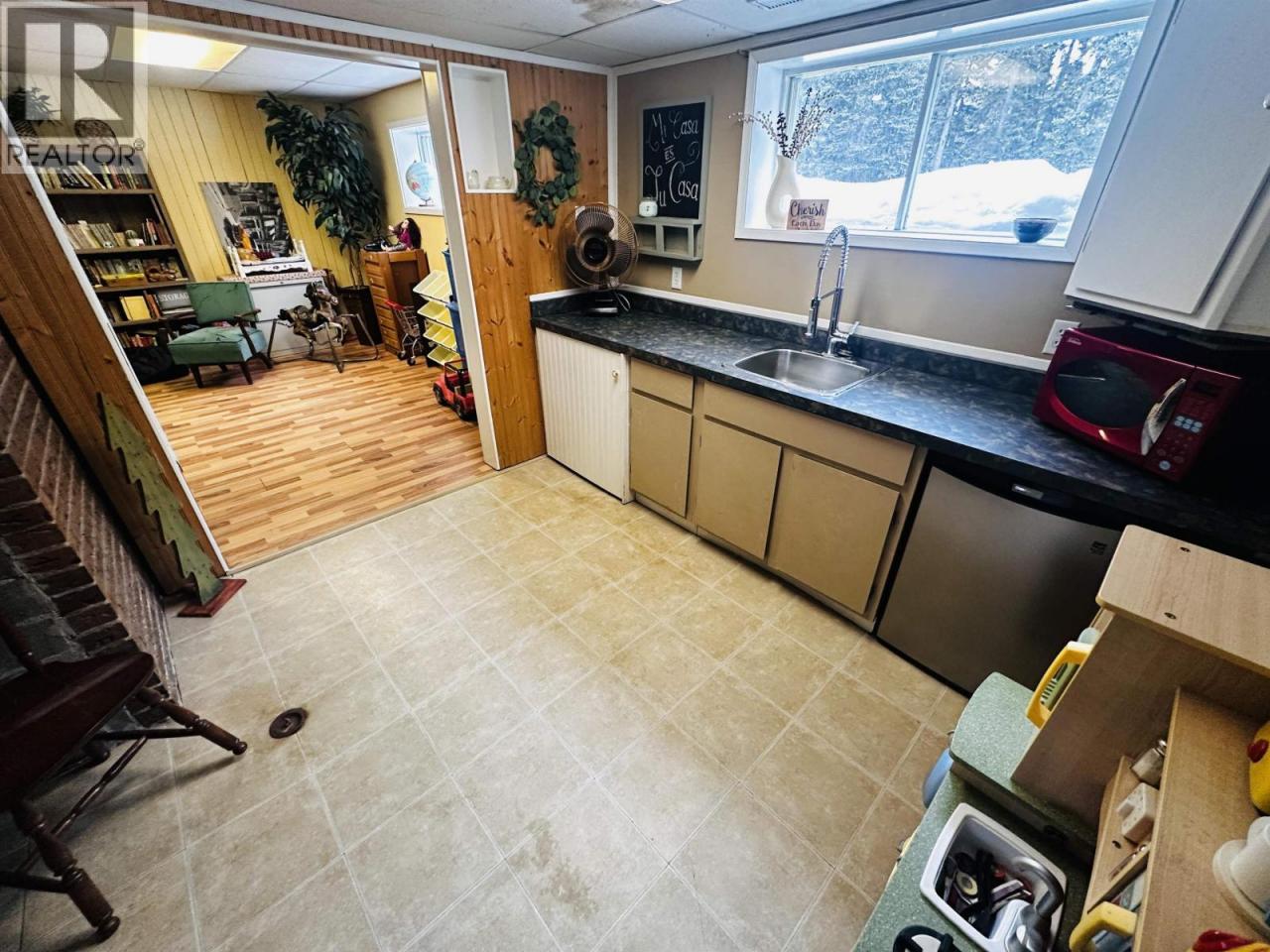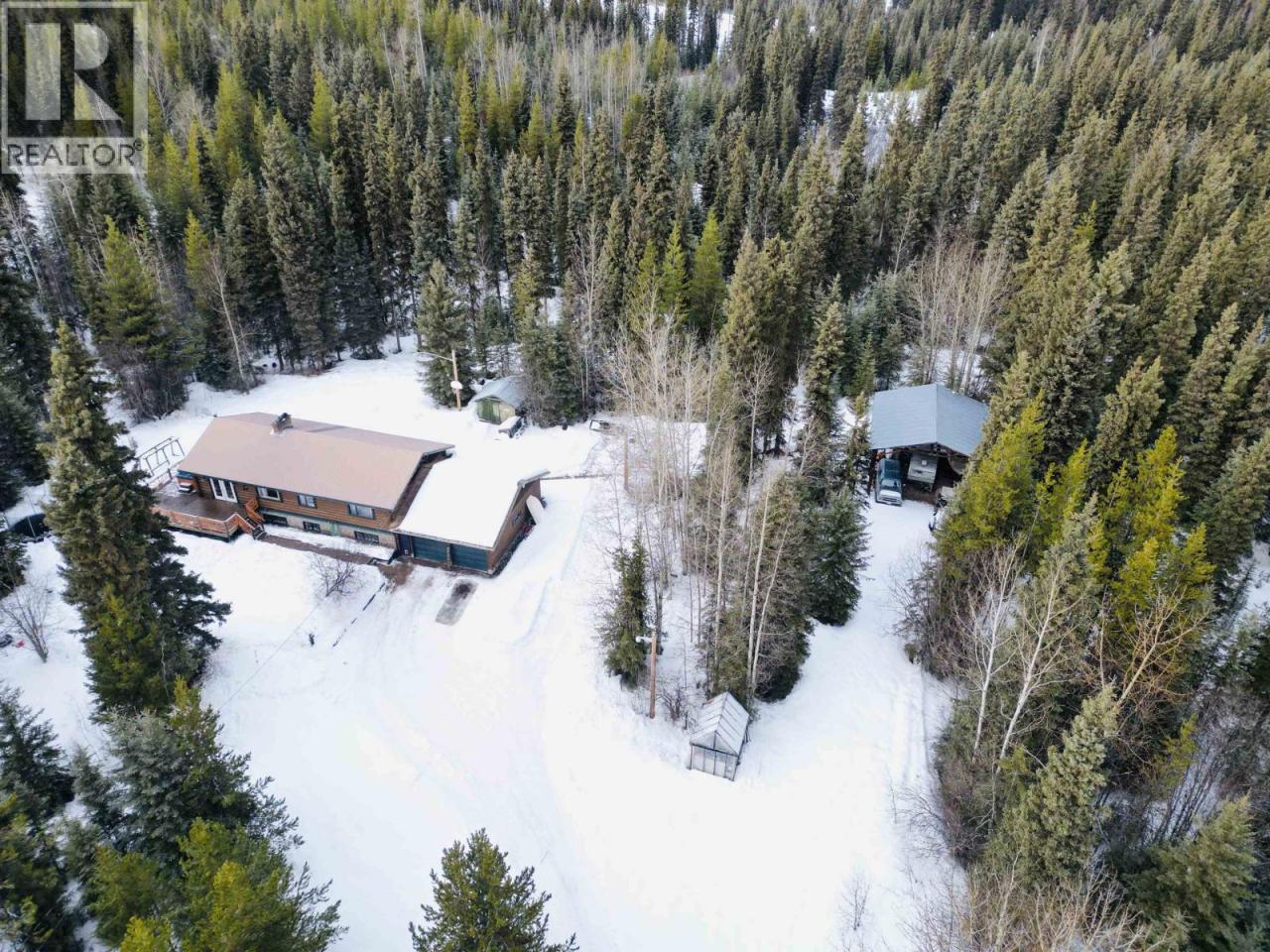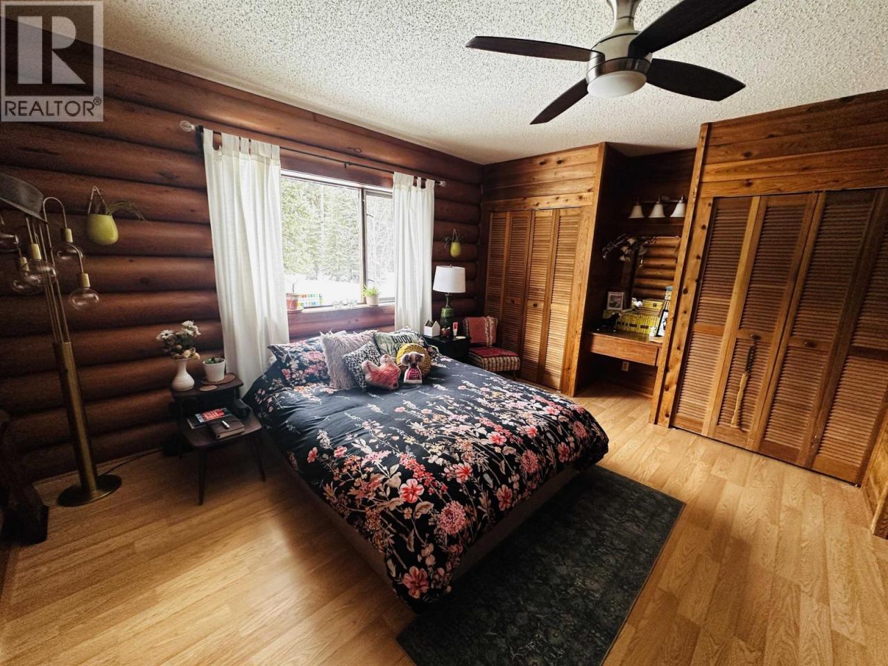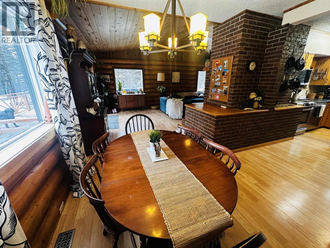 Four-bedroom, two-bathroom log home on a private five-acre, treed parcel, with flat, usable land. Backs onto Crown land, offering added privacy, a natural buffer, and frequent wildlife sightings. Space suitable for chickens or small animals. Features an attached two-car garage plus a large pole shed for storage or toys. Enjoy a spacious wrap-around deck, abundant natural light, updated bathrooms, a large rec room, and a secondary kitchen setup downstairs-ideal for extended family or entertaining. A rare blend of privacy, space, and lifestyle. (id:6769)