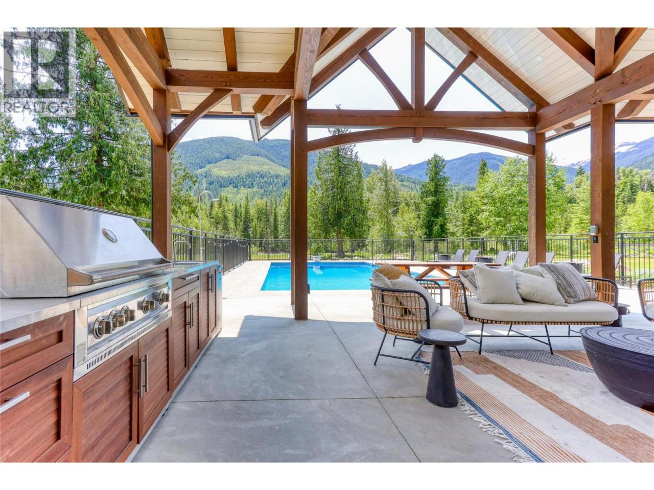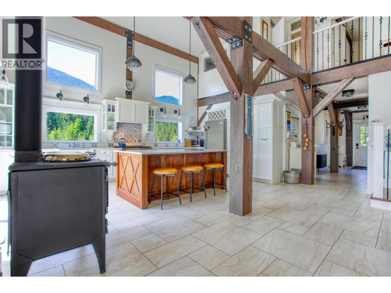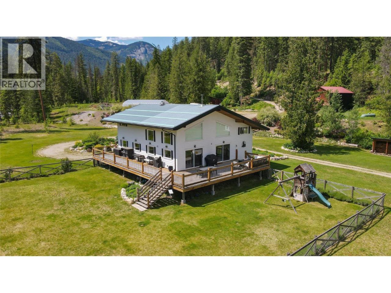 Multi-Family Property – Foreign Buyers Welcome! This extraordinary 20-acre estate offers over 1,400 feet of frontage on the Little Slocan River, showcasing panoramic views of Frog Peak and unmatched privacy. The custom-designed 4-bedroom main residence is masterfully crafted from a reclaimed vintage barn. It features exposed timbers, soaring vaulted ceilings, and expansive windows that frame the surrounding mountains and river. Inside, the chef’s kitchen is equipped with high-end appliances, and a charming European wood cookstove. Artistic accents and an open-concept layout create a warm and inviting living space with thoughtful character throughout. Complementing the main home is a charming 2-bedroom original residence with its own driveway—ideal for guests, extended family, or rental income—alongside a separate caretaker’s suite located in the Barn. Outdoor living is elevated with a large 8-foot deep pool, an elegant Purcell timber-frame pavilion, a custom stone fireplace, a fully equipped outdoor kitchen area, and a wood fired sauna - perfect for entertaining or peaceful retreat-style living. The grounds are beautifully developed and set up for a hobby farm or entrepreneurial venture, including a state-of-the-art barn with stalls, fencing, and a year round animal self-watering system. The property also boasts expansive perennial gardens, a large greenhouse, raised garden beds, and a deer-fenced orchard with berries and fruit trees. Additional infrastructure includes a garage/workshop, a professional underground sprinkler system, and extensive rockwork and landscaping. Located just 30 minutes from both Nelson and Castlegar, this south-facing, unzoned, and non-ALR property provides excellent sun exposure and limitless potential for agriculture, recreation, or tourism use. A rare opportunity to own a riverfront sanctuary that seamlessly blends privacy, sustainability, and lifestyle—truly one-of-a-kind. (id:6769)