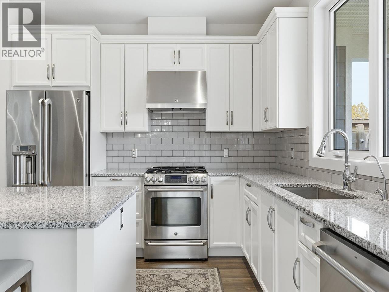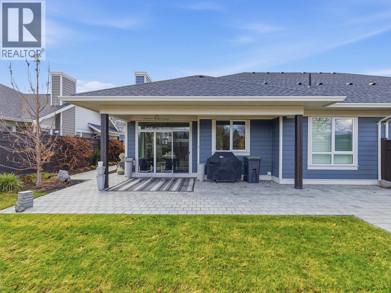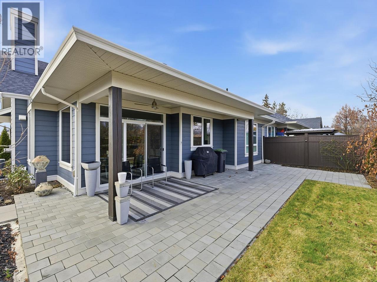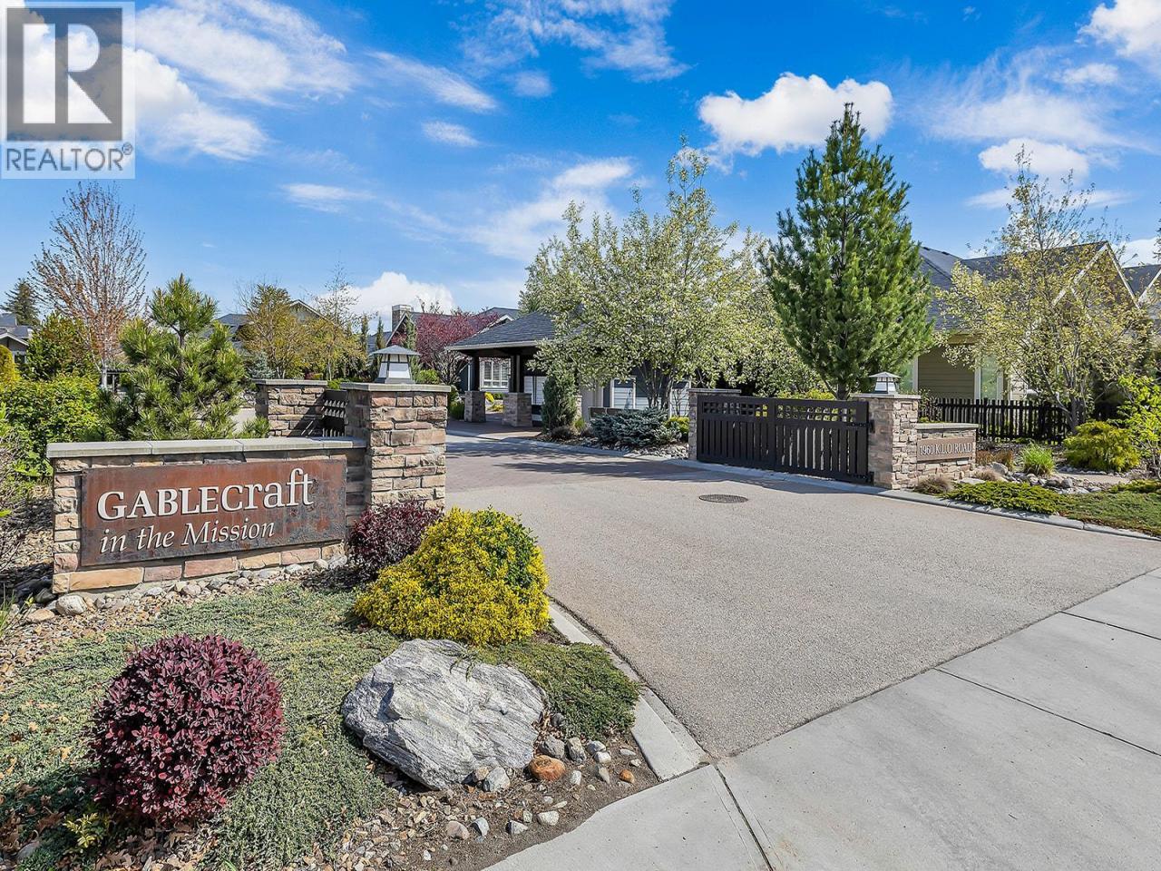 Low maintenance single-level townhome. High quality community! Fantastic opportunity to enjoy low-maintenance, stress-free, single-level living in the sought-after Gable Craft Community. Approx. 1395 sqft of single level living connects the open concept kitchen, dining and living areas with easy flow to the patio through glass sliding doors. The kitchen features granite countertops, GE stainless steel appliances, laminate flooring and in the centre of the living room is a gas fireplace set into a rock feature wall. The primary bedroom includes a 4 piece ensuite with a walk through closet, while the second bedroom sits near another full 4 piece bath. Laundry is set in its own room and a double car garage adds everyday function. Outside, enjoy a private stone block patio, fenced yard, small low maintenance lawn and space to garden along the fence line, plus a front porch, covered entry and driveway parking. Pet friendly and peaceful yet central, set across from Mission Creek Golf Course and steps to the Greenway. A smart option for first time buyers, downsizers or anyone seeking connection and easy living. (id:6769)