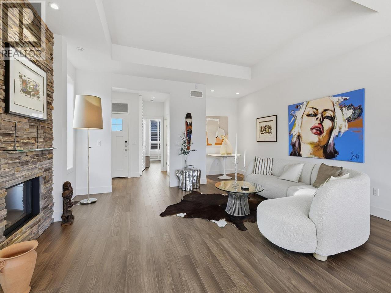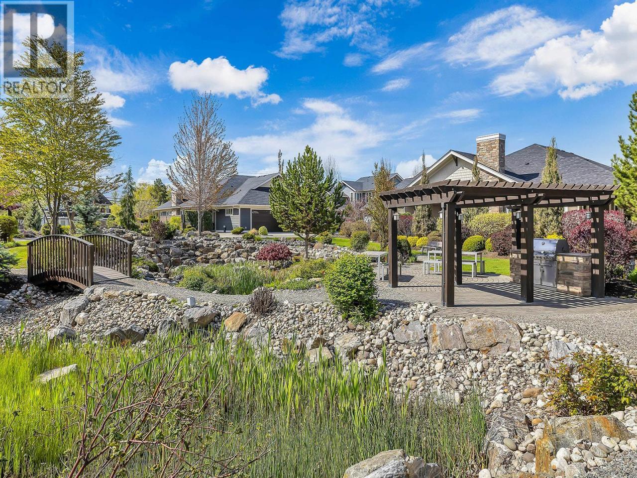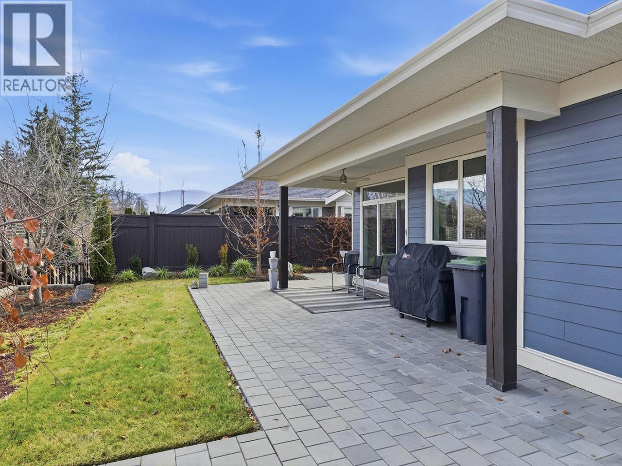 Low maintenance single-level townhome. High quality community! Fantastic opportunity to enjoy low-maintenance, stress-free, single-level living in the sought-after Gable Craft Community. Approx. 1395 sqft of single level living connects the open concept kitchen, dining and living areas with easy flow to the patio through glass sliding doors. The kitchen features granite countertops, GE stainless steel appliances, laminate flooring and in the centre of the living room is a gas fireplace set into a rock feature wall. The primary bedroom includes a 4 piece ensuite with a walk through closet, while the second bedroom sits near another full 4 piece bath. Laundry is set in its own room and a double car garage adds everyday function. Outside, enjoy a private stone block patio, fenced yard, small low maintenance lawn and space to garden along the fence line, plus a front porch, covered entry and driveway parking. Pet friendly and peaceful yet central, set across from Mission Creek Golf Course and steps to the Greenway. A smart option for first time buyers, downsizers or anyone seeking connection and easy living. (id:6769)