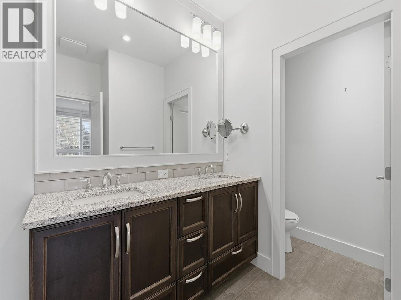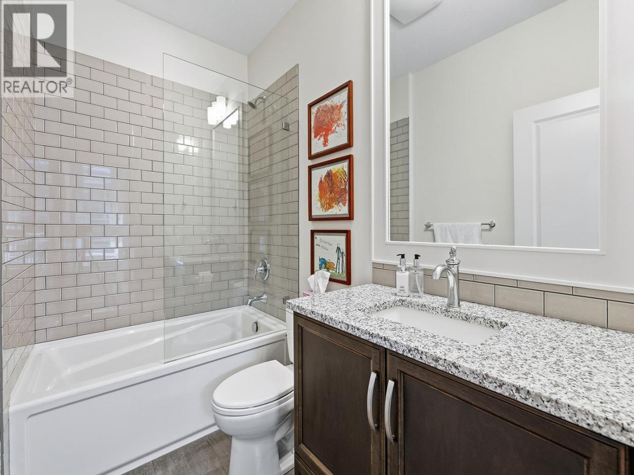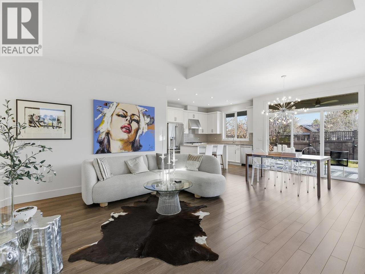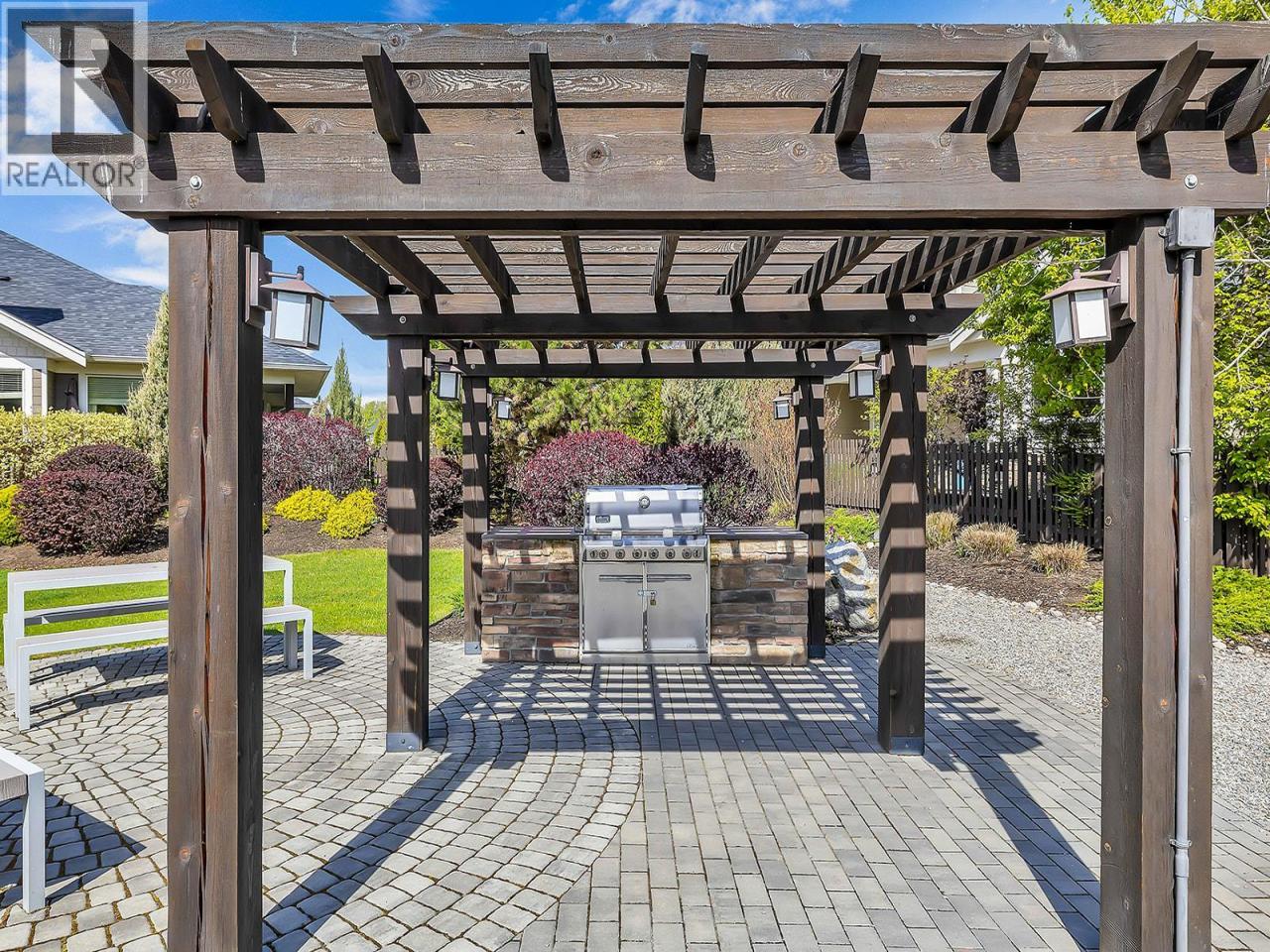 Low maintenance single-level townhome. High quality community! Fantastic opportunity to enjoy low-maintenance, stress-free, single-level living in the sought-after Gable Craft Community. Approx. 1395 sqft of single level living connects the open concept kitchen, dining and living areas with easy flow to the patio through glass sliding doors. The kitchen features granite countertops, GE stainless steel appliances, laminate flooring and in the centre of the living room is a gas fireplace set into a rock feature wall. The primary bedroom includes a 4 piece ensuite with a walk through closet, while the second bedroom sits near another full 4 piece bath. Laundry is set in its own room and a double car garage adds everyday function. Outside, enjoy a private stone block patio, fenced yard, small low maintenance lawn and space to garden along the fence line, plus a front porch, covered entry and driveway parking. Pet friendly and peaceful yet central, set across from Mission Creek Golf Course and steps to the Greenway. A smart option for first time buyers, downsizers or anyone seeking connection and easy living. (id:6769)