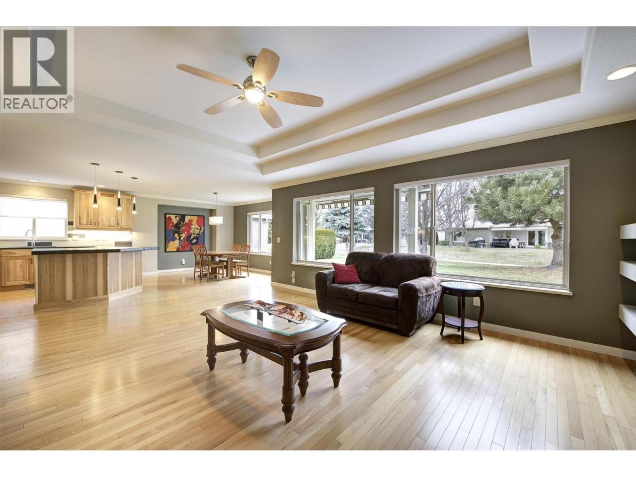 QUALITY, LOCATION, UPDATED in luxurious Balmoral Estates. Perfectly positioned with a stunning west-facing view over the manicured green space, #217 is a standout 2 bed + den rancher that truly sets itself apart. Step inside and you’ll immediately feel the difference — gleaming hardwood throughout, 9’ ceilings, and an open, modern layout flooded with natural light. The great room is designed to impress with custom built-ins, a cozy gas fireplace, and expansive windows framing the treed outlook and spectacular sunset views. The completely reimagined custom kitchen is a showpiece: granite countertops, high-end appliances, and exceptional storage and prep space — perfectly suited for entertaining and everyday living. The dining area easily accommodates a full-size table for family gatherings and hosting. The den/office offers versatility for work-from-home or guests, while the bedroom wing delivers comfort and privacy. Both bathrooms were fully renovated with elevated finishes including marble tile, creating a spa-like feel. Practical upgrades include a new furnace and hot water tank, plus a 4–5’ crawl space providing outstanding additional storage. Balmoral offers an exceptional 55+ lifestyle with a beautiful clubhouse/rec centre, indoor pool, and swirl pool — all in one of the most central locations: close to the hospital, walking distance to shopping and Starbucks, and just minutes to Orchard Park, the lake, beaches, golf, and more. Renovated. Refined. Perfectly located (id:6769)