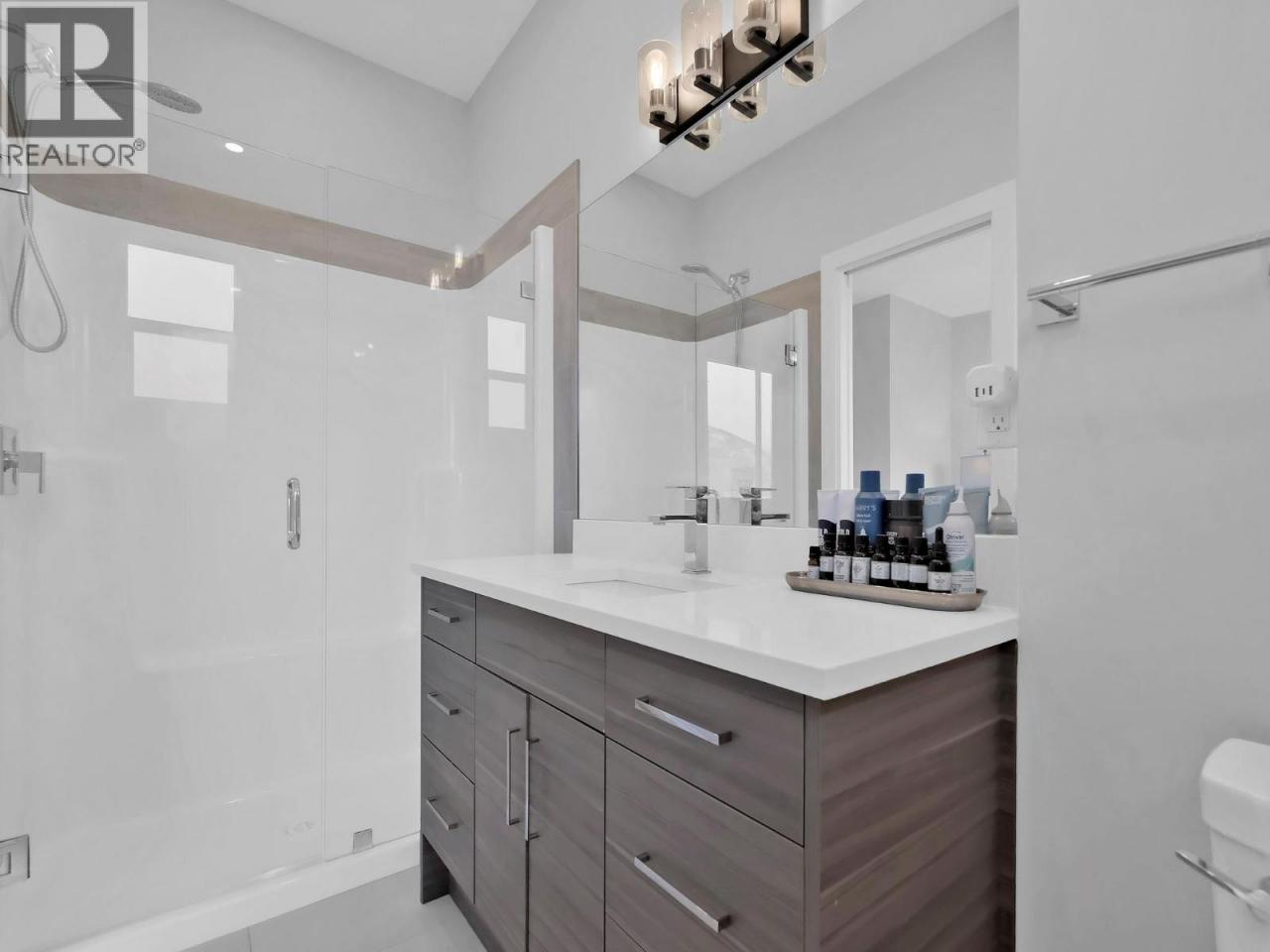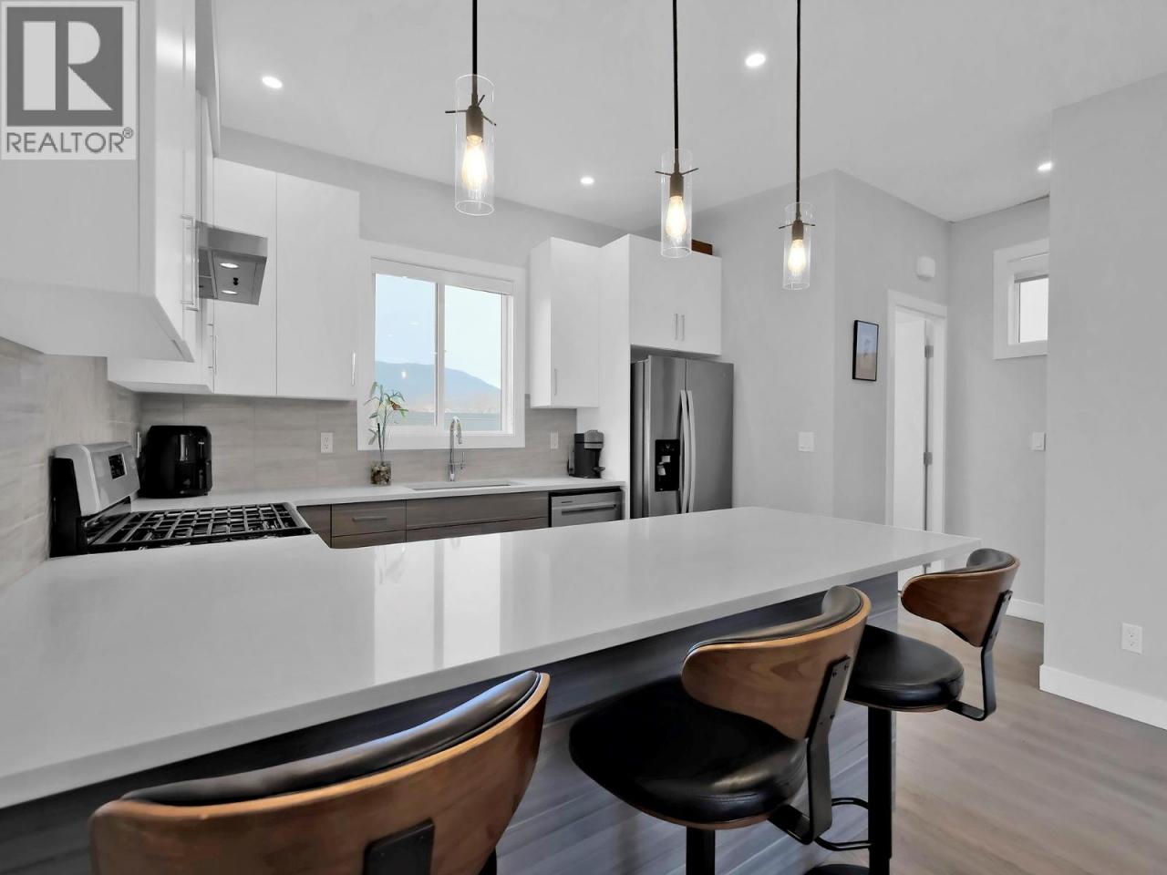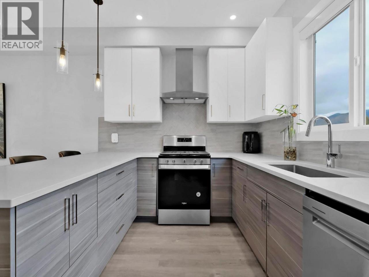 Trendy Corner Townhome, Steps from Downtown Penticton - If location matters to you, this one delivers. This bright, well-maintained 3-bedroom, 3-bathroom corner townhome sits in a quiet, tidy development within walking distance of Okanagan Lake, the KVR Trail, craft breweries, the farmers market, and downtown's best shops and restaurants. Urban convenience without the noise. The main level features a sun-filled, open-concept living space that works equally well for relaxing or entertaining. The kitchen stands out with a gas stove, stylish cabinetry, and a sit-up breakfast bar perfect for casual meals or hosting friends. A 2-piece powder room completes the level. Upstairs, the primary bedroom offers a walk-in closet, 3-piece ensuite, and a peek-a-boo lake view. Two additional bedrooms, a full bathroom, and in-suite laundry round out the upper floor with comfort and practicality in mind. The lower level rec room opens directly to a fully fenced private patio with a gas BBQ hookup - a great spot for long Okanagan summer evenings. Pet-friendly, no age restrictions, low strata fees of just $210/month, and remaining home warranty still in place. A solid buy for first-timers, downsizers, or investors. This kind of package doesn't come up often. Total sq.ft. calculations are based on the exterior dimensions of the building at each floor level & include all interior walls & must be verified by the buyer if deemed important. (id:6769)