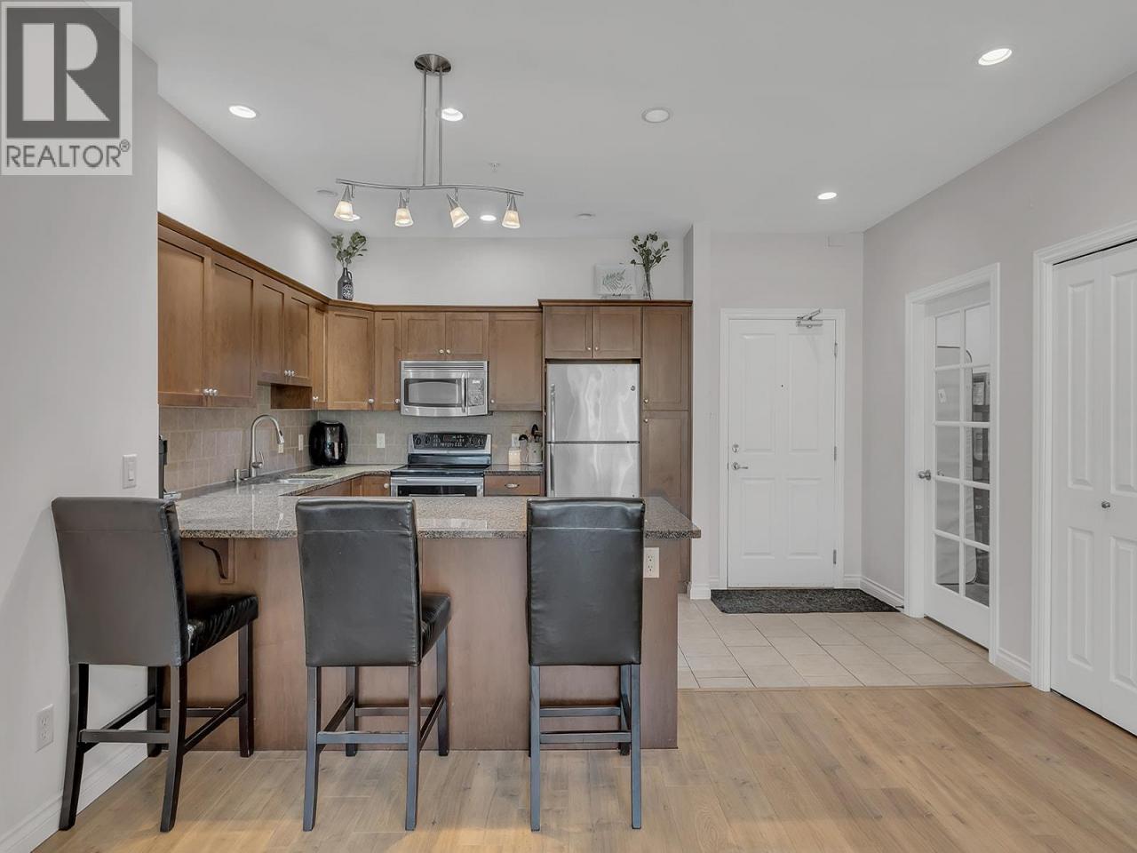 Welcome back to Unit 3305 at Mira Vista, a bright and beautifully cared for condo offering comfort, privacy, and unbeatable convenience in the heart of West Kelowna. This thoughtfully designed 2 bedroom, 2 bathroom home also features a versatile den and a highly desirable split bedroom floor plan, ideal for everyday living as well as hosting guests. The spacious kitchen is equipped with granite countertops, abundant cabinetry, and plenty of prep space, making it perfect for cooking, entertaining, or casual dining. The open concept living and dining area is filled with natural light from oversized windows, creating a warm and airy feel throughout. Step outside to your covered patio and enjoy a peaceful glimpse of the lake, a perfect setting for morning coffee or relaxing evenings. Positioned on opposite sides of the living room, the two bedrooms offer excellent separation and privacy. The generous primary suite features a walk in closet and a full ensuite bathroom, creating a comfortable retreat at the end of the day. Mira Vista is a well established and professionally managed community known for its beautifully maintained grounds and welcoming atmosphere. Residents enjoy access to exceptional amenities including a large outdoor heated pool, hot tub, social and entertainment lounge, and a rentable guest suite for visiting family and friends, and a workshop. Located just steps from grocery stores, pharmacies, restaurants, wineries, walking trails, and beaches, this home delivers an easy, connected lifestyle. Having enjoyed quiet neighbours on all four sides for the past eight years, this unit offers a rare sense of peace while still being close to everything West Kelowna has to offer. (id:6769)