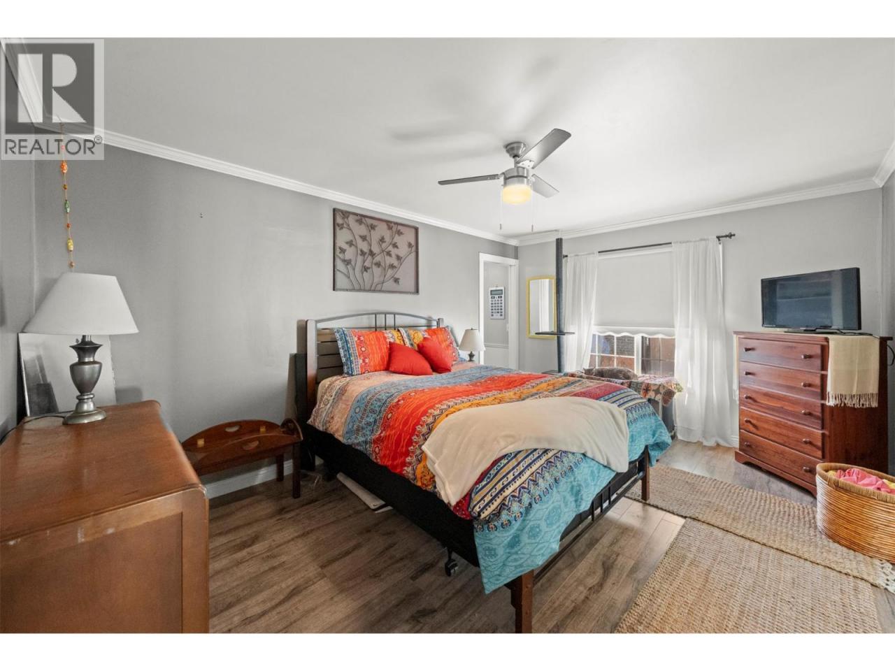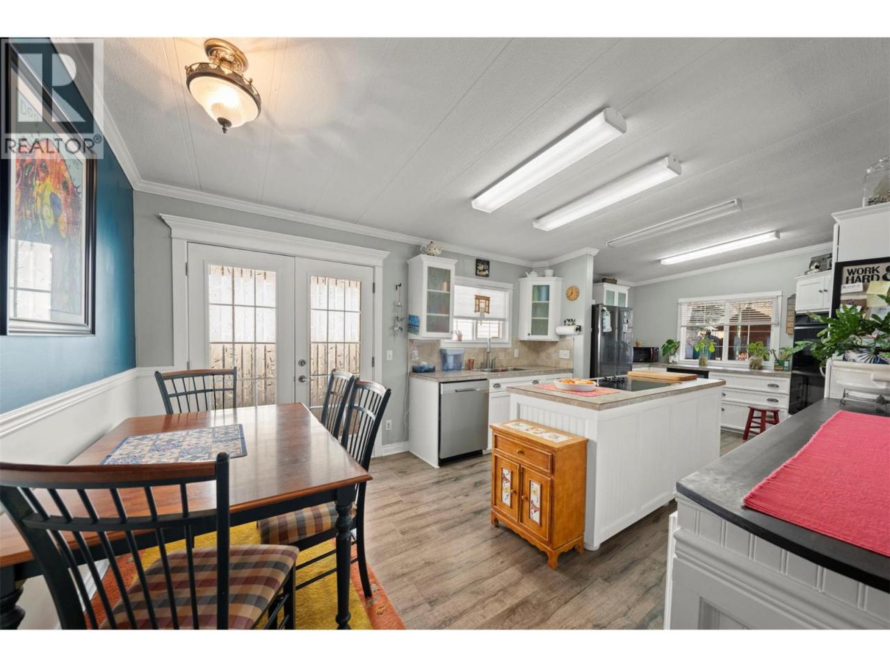 Newly renovated home in a desirable park BEAUTIFUL double wide home boasts 2 bed 2 bath and 1650 sq ft. Step onto your private front veranda thru the french doors and relax with morning coffee and soak up the sun all while enjoying the unparalleled view of Mount Boucherie, and mountains along OK lake. Freshly painted, totally updated with drywall throughout. Living room is large with plenty of light and lovely views from the bay windows and french double door leading to the side deck to the back yard. Appliances are SS and fairly new, fridge (2021), DW (2023), washer/dryer (2020). Both bathrooms have a walk-in glass shower, and the spa like ensuite has a double jetted tub. Master bed has large windows with plenty of light, a large bright office and walk in closer with built in shelves and drawers. The 2nd bedroom is bright and spacious with plenty of light and room for king bed and dressers. A gardeners dream with raised beds along the entire length of the mobile, the front has a beautiful garden bed and side bed alongside a large brick driveway. Newly landscaped private back yard including patio area. Both front and back yards are fenced. Roof is 5 years old, furnace was replaced in 2020 with a high efficiency and windows are new. House is located on a very quiet road in a well managed park. It is in the adult section (19+). Close to shopping, wineries, beaches, and hiking trails. 2 Pets welcome without size limits, with park approval. (id:6769)
