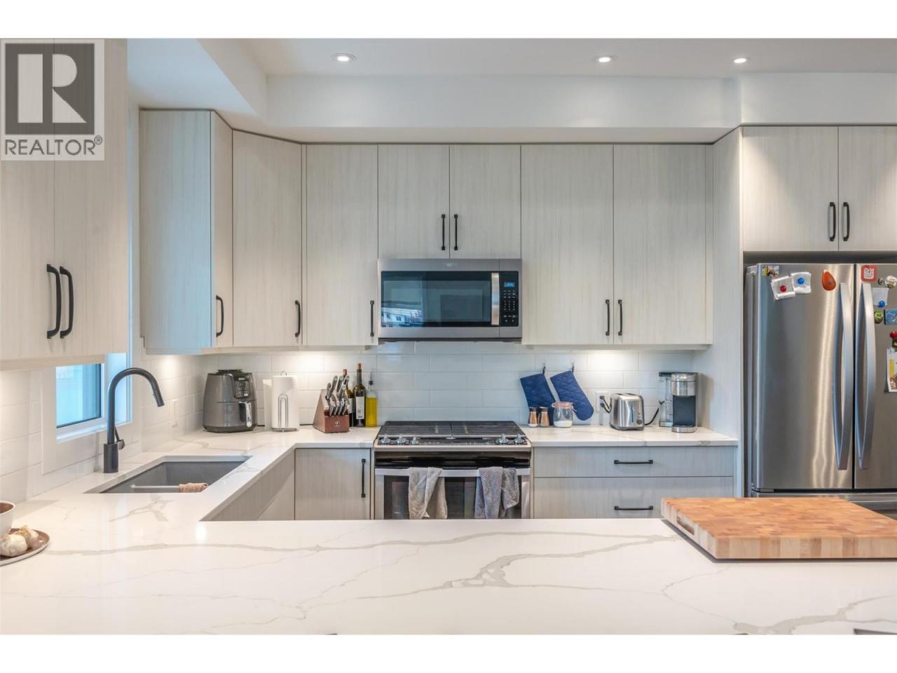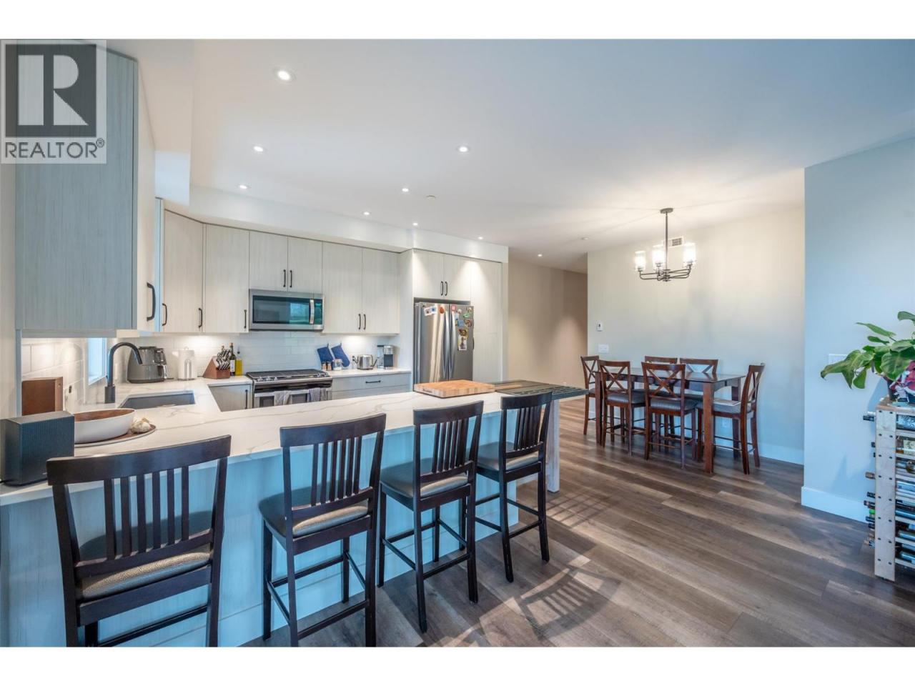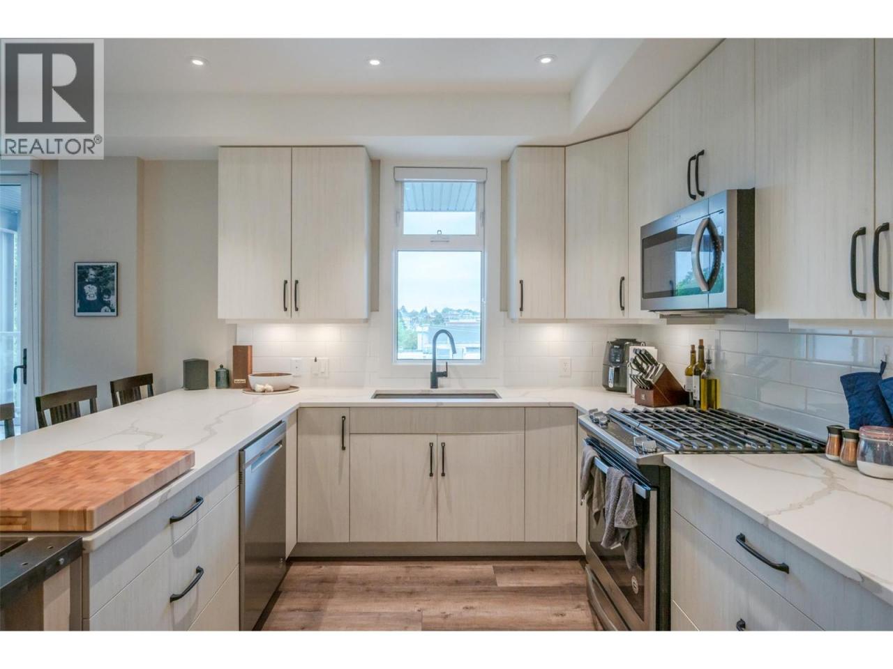 Welcome to Ellis One, an executive building located steps away from Okanagan Beach, vibrant restaurants, charming shops, and scenic parks! Embrace the Okanagan lifestyle with downtown city living at its finest, where you can leave your car at home and walk to all your favorite coffee shops, breweries, and local markets/festivals. This southeast corner unit boasts the best layout in the entire building. Upon entry, a grand hallway separates the entrance from the main living and kitchen area, giving it a house-like feel. The kitchen is adorned with timeless cabinets, quartz countertops, and a large island that seamlessly connects to the living room. The living room features a wall of windows that flood the space with natural light, creating a bright and airy atmosphere perfect for entertaining. The oversized covered deck off the kitchen/living room is ideal for enjoying dinners and indulging in Okanagan wine while taking in the beautiful mountain views. With large hallways and a thoughtful layout, the bedrooms are completely separate from the main entertaining space. The unit includes a 4-piece guest bathroom, a spacious second bedroom, and a primary bedroom with a luxurious 4-piece ensuite with dual vanities. The unit comes with one secured underground parking space and a storage locker. Pets and long-term rentals are allowed. Over 50% annual tax break for 4 more years. Don’t miss out on this opportunity to enjoy your slice of the Okanagan lifestyle! (id:6769)