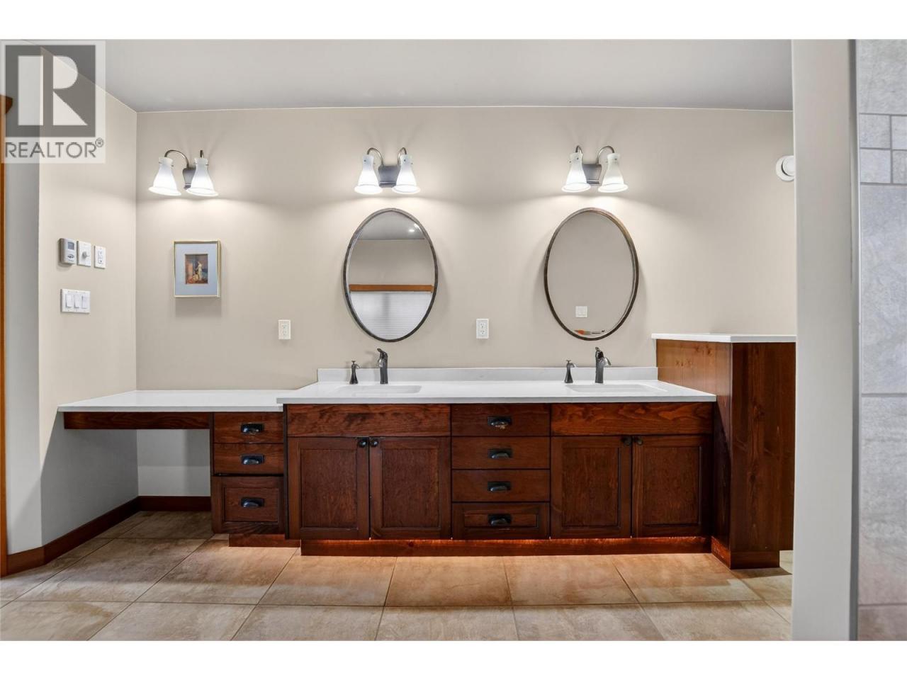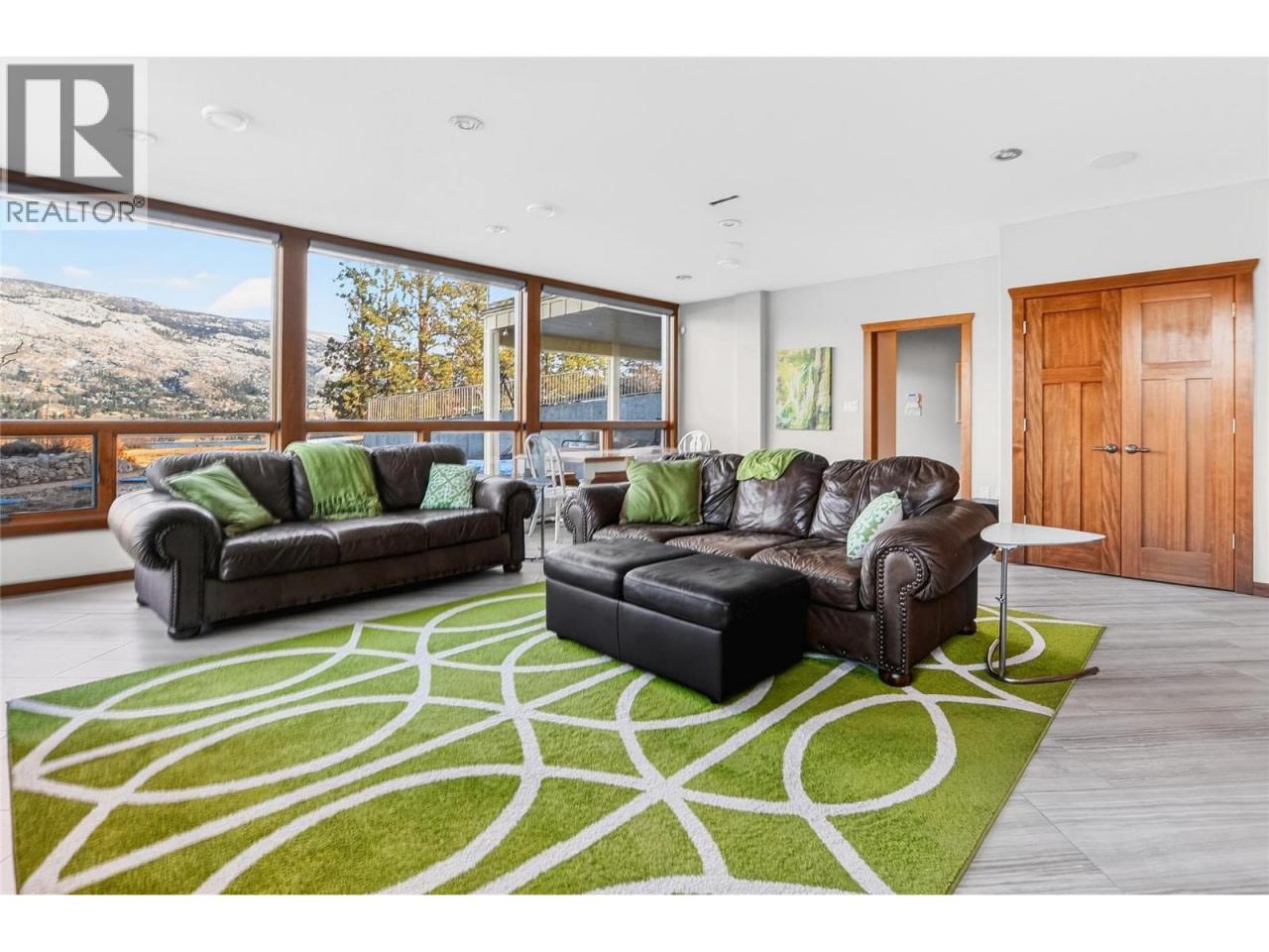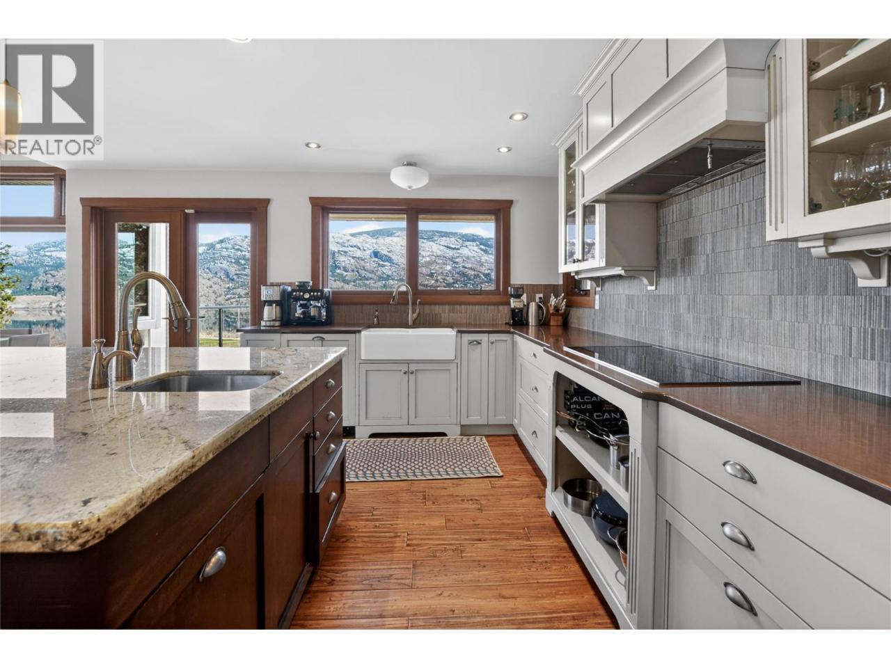Set above Skaha Lake in Kaleden, next to the KVR Trail, this custom home is one of those properties people slow down to admire. It offers 7,000 sqft of living space w/ 5 baths, 4 bedrms plus an additional 2 bedrms set up in the flex room on the main floor & the loft. With almost 2.5 acres, it has space to add features like a pool & a pool house. The covered front porch w/ its barrel-style ceiling flows right into the foyer. In the great room, the timber mantle & stone fireplace anchor the space, while the fir trim throughout adds elegance & shows that no expense was spared in building this home. The kitchen w/ a massive granite-topped island, Miele appliances, banquette seating, & direct access to the concrete stamped deck w/ glass railing for unobstructed views of nature. The primary suite is a retreat with french doors to a private sitting area, a two-way fireplace, and renovated ensuite with a soaker tub. The loft is the perfect space for a bedroom or home office/art studio. The lower lvl adds a full kitchen, media room, games area, 3 bedrms & storage. Excellent opportunity for a short-term rental set up. The detached 4-bay garage is a dream for hobbies, cars or toys. ICF construction, geo-thermal, stamped concrete with radiant floor on all 3 lvls. Step-free access on the main floor, wider interior hallways, and direct access to the backyard path, which leads to a magical viewpoint, add comfort and flexibility for new homeowners to age in place. (id:6769)
