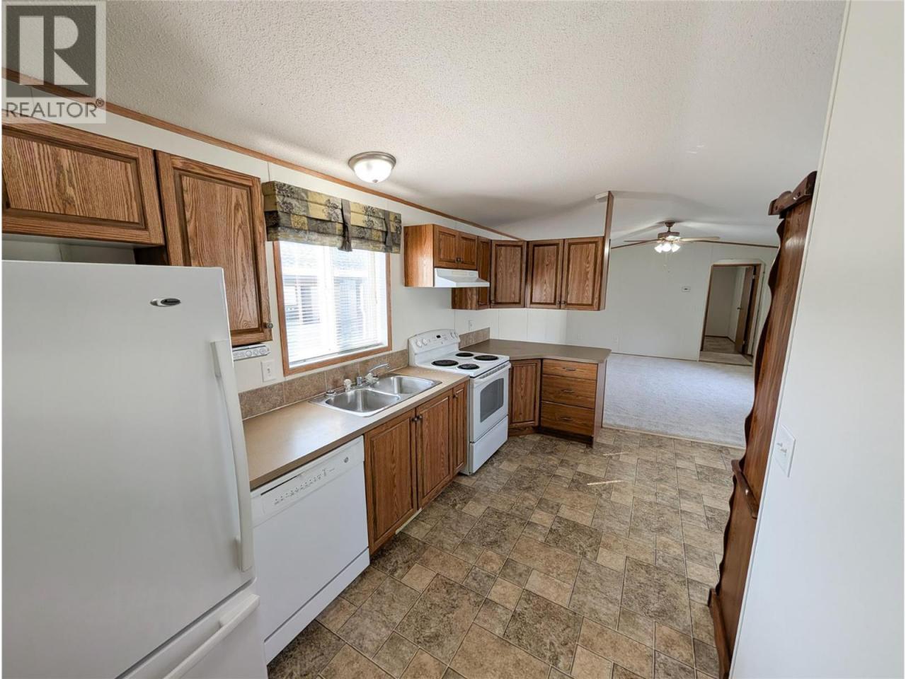 Welcome to unit #120 at Orchard Manufactured Home Park. This 2008 2 bedroom, 2 bathroom unit is sparkling clean and shows like new. This is a great starter home for a young family, or right-sizers/down-sizers looking for carefree living in their own property. The layout is ideal with a bedroom and a 4pc bath at both ends of the home for separation and privacy. In between the bedrooms you'll find a bright open concept living area with the kitchen, dining and living room all connected. The hot water tank was replaced in 2020, brand new carpets have been installed July 2025, a full interior paint completed July 2025, and the unit has been professionally cleaned. There are two exterior doors that lead into the yard which has been professionally cleaned and is ready for a new owners ideas. Currently there are some patio stones and two sheds for extra storage, the exterior decks, fence and large shed have also been recently painted. There is a swing gate that opens into the yard, and parking for two vehicles out front. This park is close to many amenities including, golf, shopping, casino, parks and more. Pets are allowed with restrictions and immediate possession is available. (id:6769)