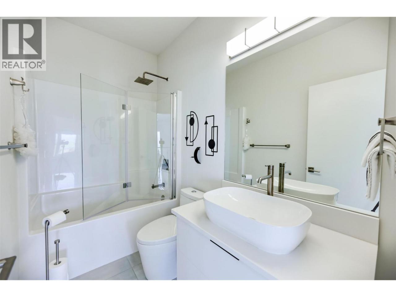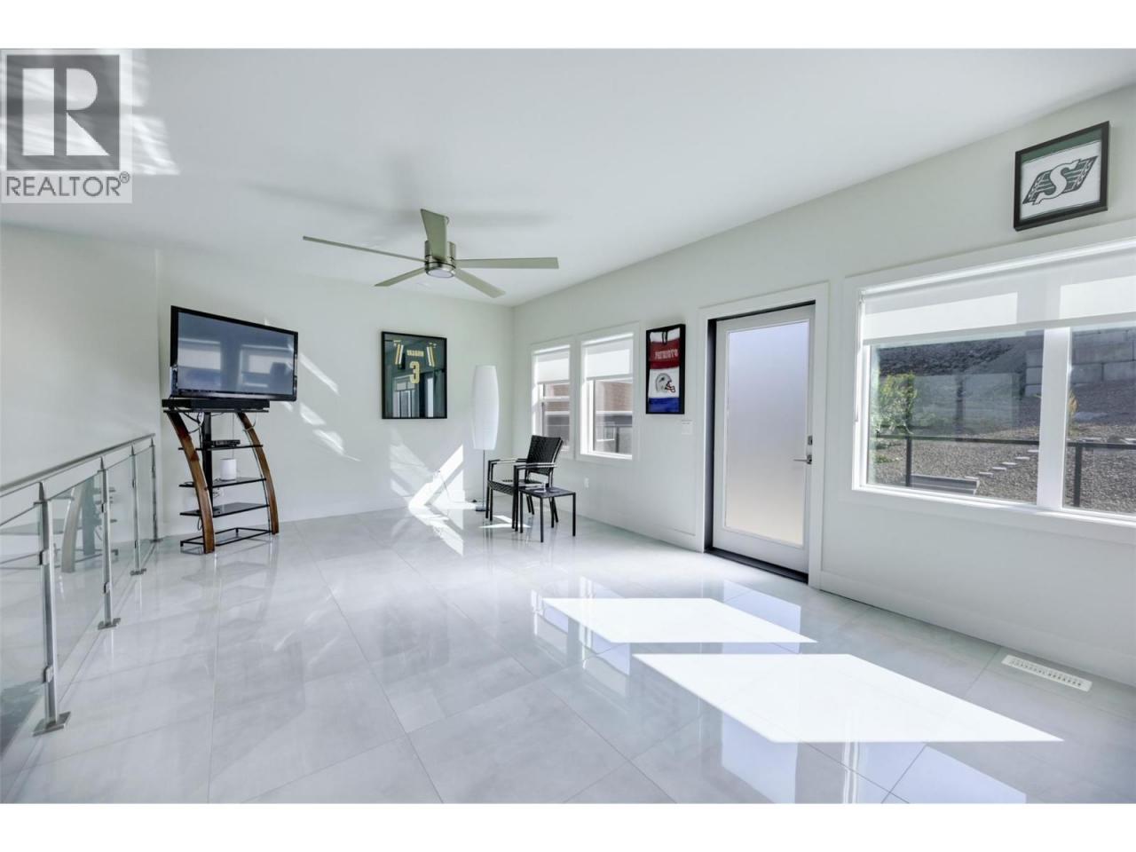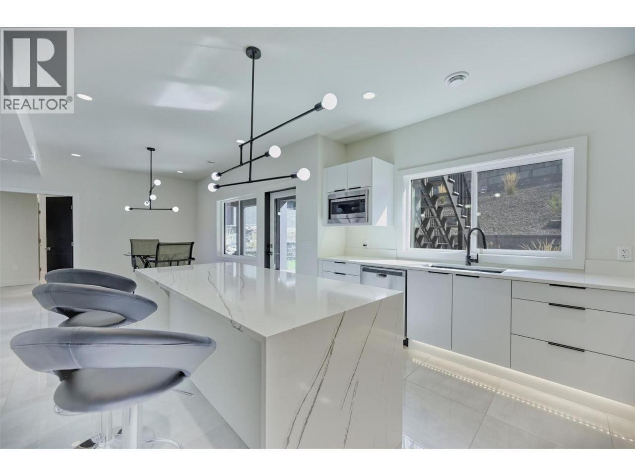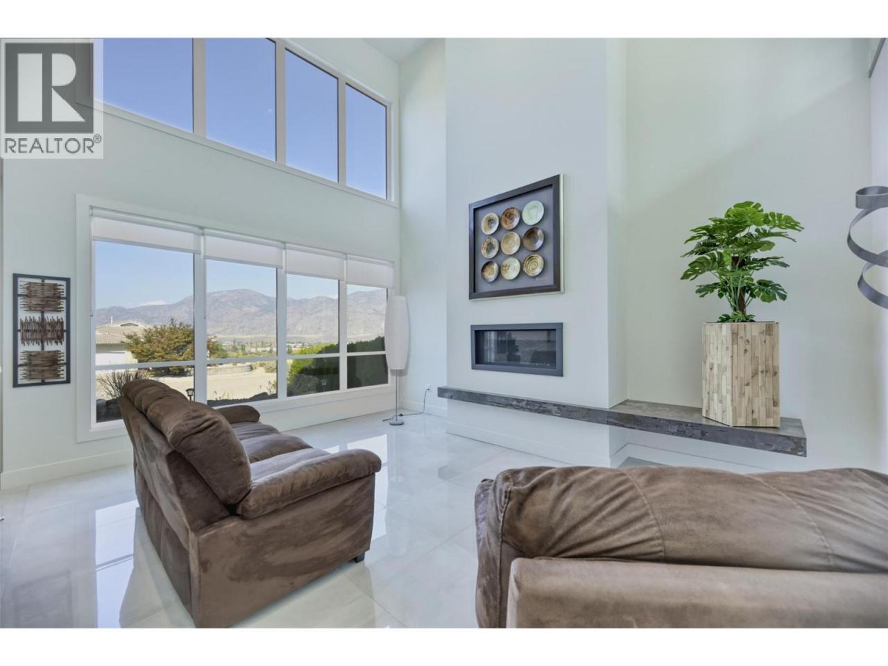 MODERN, NEWLY BUILT HOME STEPS TO THE LARGEST GOLF COURSE IN SUNNY OSOYOOS. Like brand new, still under the New Home Warranty, this beautiful contemporary home offers a low-maintenance yard and thoughtful design throughout. The open-concept gourmet kitchen is ideal for any cooking enthusiast, featuring a large island and direct views of the covered back patio, perfect for outdoor dining and entertaining. The central livingroom impresses with its soaring ceiling and striking floating staircase, filling the space with natural light from expansive windows that frame picturesque views of the mountains. Durable tile flooring extends throughout the home, enhancing its clean and contemporary feel. The upper level showcases the luxurious primary suite, complete with a spa-inspired ensuite offering a spacious walk-in shower and a separate soaking tub—perfect for relaxation after a round of golf or a day at the lake. This floor also includes a second bedroom, a convenient laundry area, and a versatile loft space that makes an ideal movie room, gym or a cozy lounge. Step out onto the upper front deck to enjoy the views and the sunrise. A third bedroom is located on the main floor, providing flexible options for guests or a home office. With very little use since new, this pristine home is move-in ready and waiting for you! (id:6769)