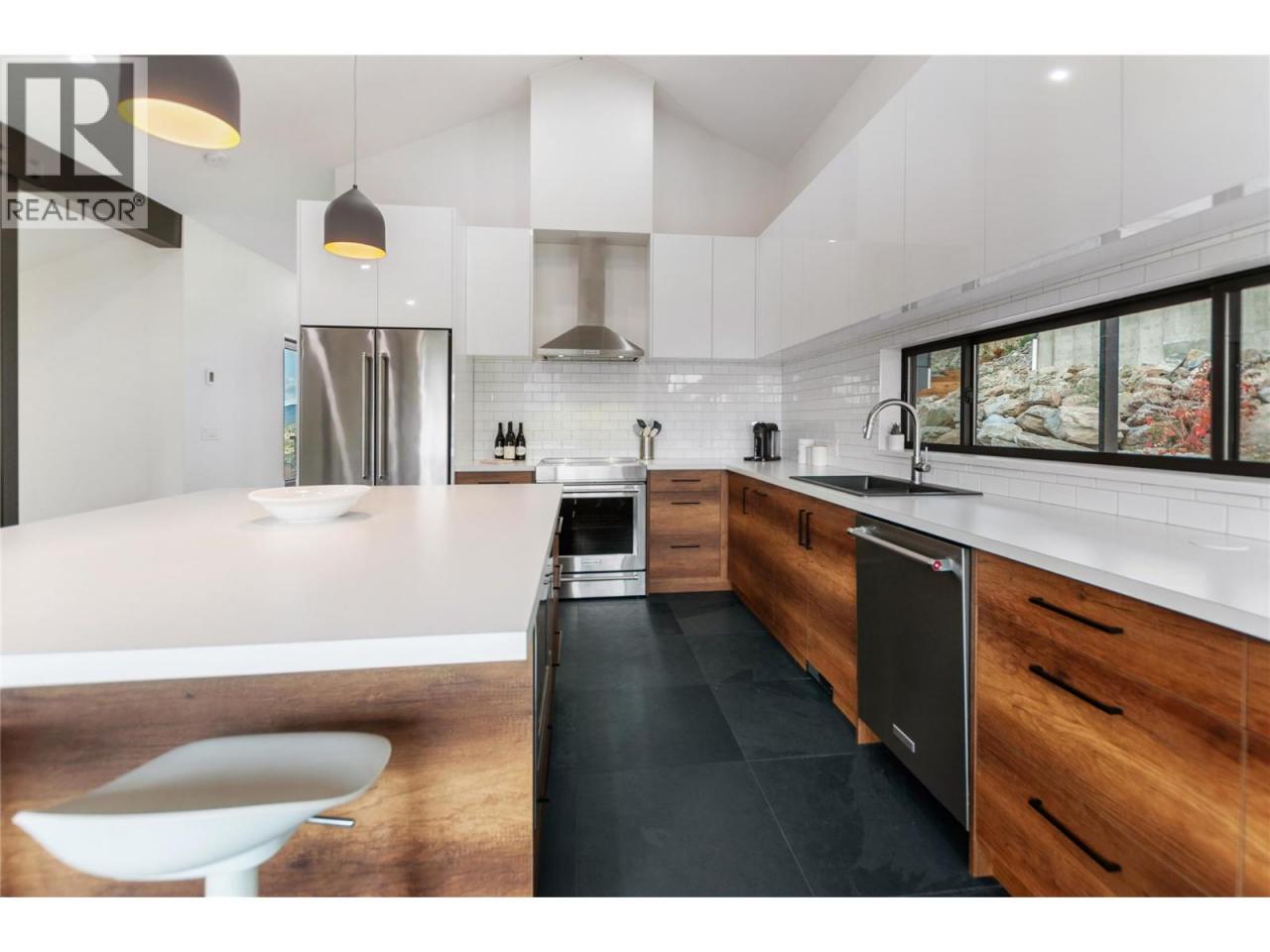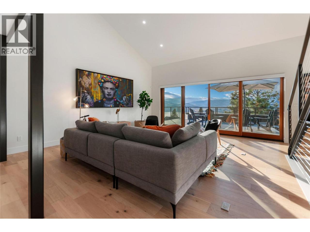 Penthouse Loft meets Okanagan Wine Country! Perched on the Naramata Bench, overlooking the vast beauty of Okanagan Lake, sits this glorious home. Every direction you turn in this magnificent space you are greeted by expansive windows, offering commanding views the region is known for. With an abundance of natural light pouring in, a sunny spot to curl up and enjoy a book or glass of wine can always be found. With 5 bedrooms and 5 bathrooms, the clever layout provides privacy for all. A stunning primary suite with European spa-like bathroom, oversize walk-in closet and private terrace sit on the top level. The heart of the home is the voluminous living room, with 18’ ceilings and a wall of windows seamlessly flowing out to the massive deck, making this the ultimate area for entertaining with friends and family. On the lower level, you will find 2 more bedrooms and a full bathroom. The added bonus of this home are the two self-contained studio suites offering endless possibilities… art space, home office, yoga studio, gym, nightly rentals, etc. The cherry on top, is the location, with close proximity to Naramata Village, multiple beaches, cafe's, fine dining, shops and the Farmers’ Market. Jump on your bike, ride down the street and explore the many award winning wineries along the KVR trail. At the end of the day, this stunning home will envelop you in a comforting hug as you kick back with a bottle of local wine and hear the gentle breeze in the tree-tops whisper “welcome home”. (id:6769)