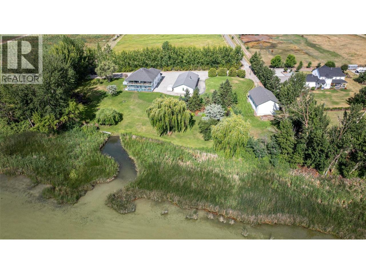 One of a kind property on Swan Lake! 1.95 manicured acres with an immaculate 6 bed/4.5 bath home with 2 detached Shops for your auto or wdworking hobbies. The home is of quality construction on 2 full levels. From the spacious entrance follow the curved staircase to the upper main floor to find the open living and dining rooms then the kitchen with an Island/eating bar. Off the kitchen is direct access to the covered 10'x43' deck where you will sit and enjoy your morning coffee over looking the Lake and enjoying the song birds in this natural wildlife sanctuary. The primary bedroom is on this level with an attached 5 pce. ensuite bath and walk-in closet. 3 more bedrms. with a ""Jack and Jill"" bathrm conveniently situated between 2 of them as well as another full bath. Downstairs off the foyer is the office/den along with a 2 pce. powder room. Also on the ground floor is an oversized family room with gas fireplace, 2 remaining bedrms, full bathrm and laundry. The ground floor could easily be converted to a separate suite with the side entrance and covered 10' x 43' patio. Outbuildings include a 32'W x70L'x 8'H' insulated/partitioned Shop with 200 amp service with roughed in plumbing, 2nd Shop is 30'W x 50'L x 16'H with 2x14' roll up door with 100 amp service. The landscaping includes a stone water fountain and pond along with ample lawns and mature trees. The home is heated with Gas forced air furnace and cooled with central A/C. Water via drilled Well. All perimeter fenced. (id:6769)