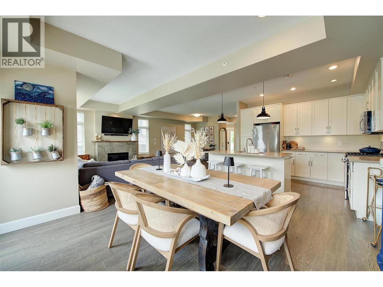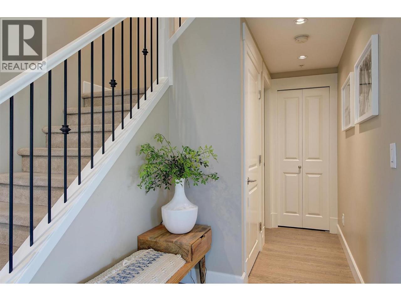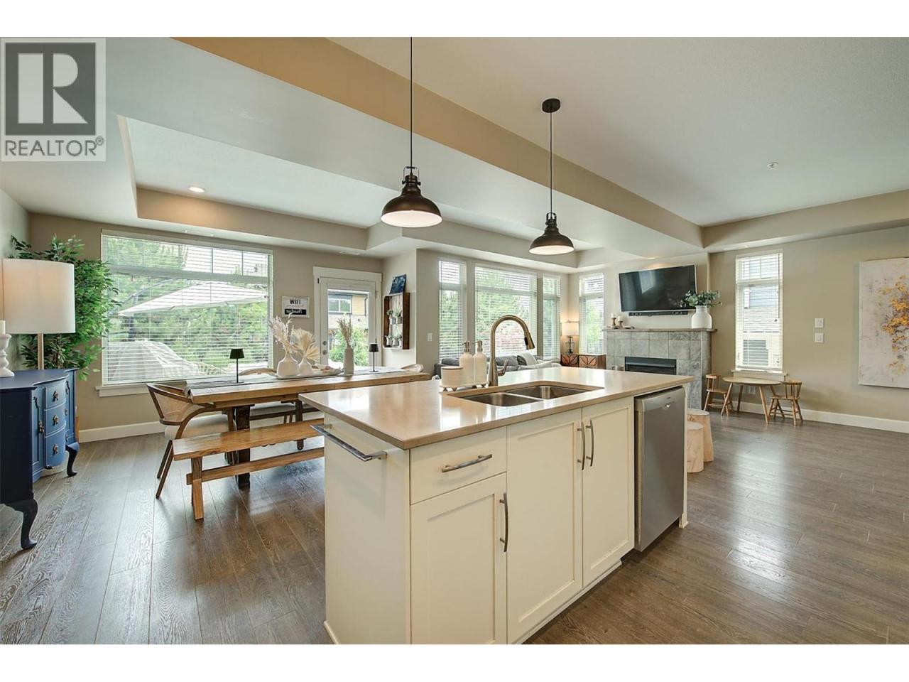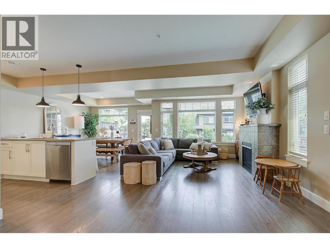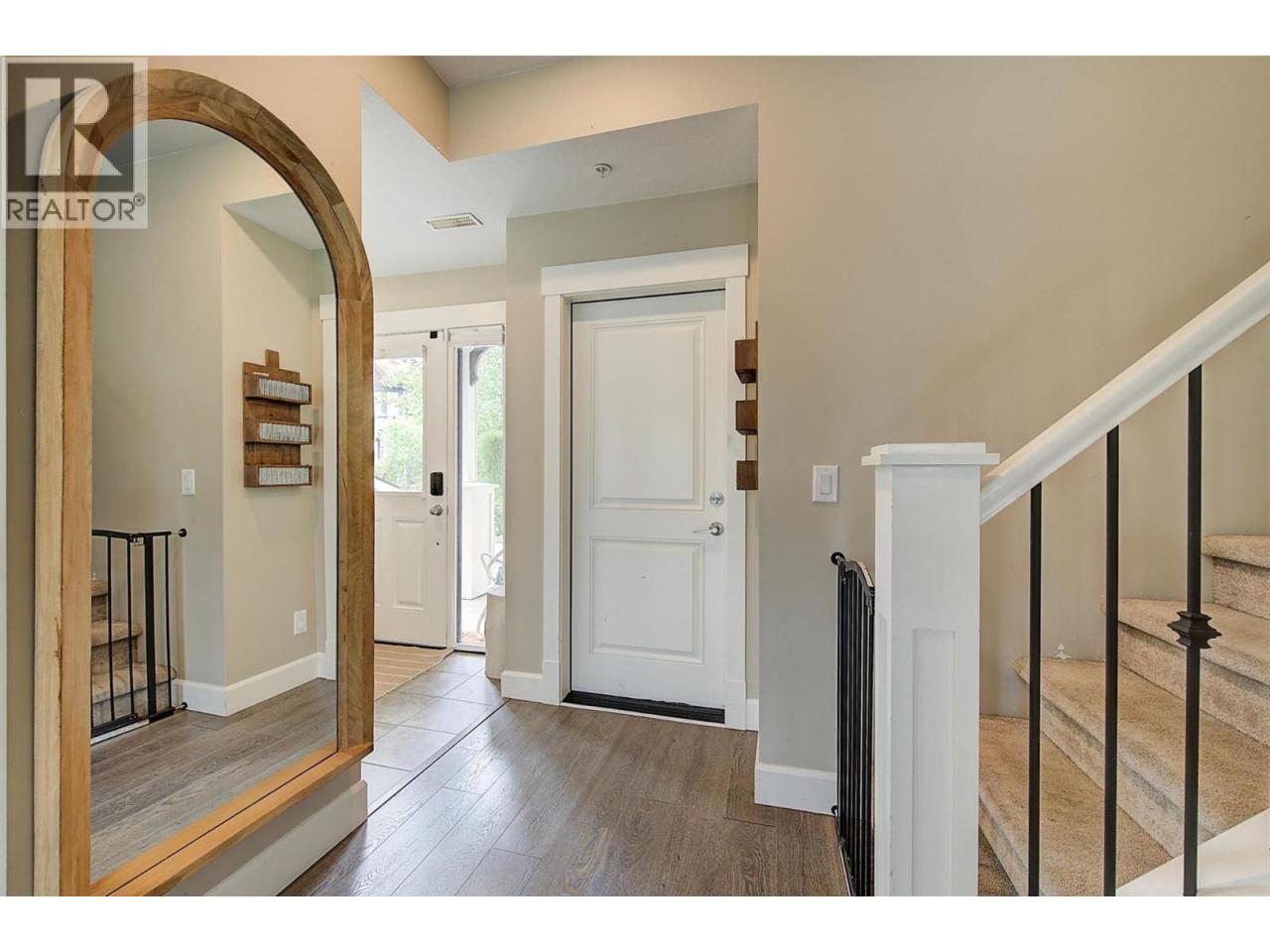 Stunning 3-bedroom townhome at Crystal Heights! Highly functional layout with all bedrooms on the top floor and all living spaces on the main entry level. The bright and airy living and dining areas showcase high-end finishes, large windows throughout and a tasteful accent fireplace with ample room above for a wall-mounted TV. Beautiful open-concept kitchen featuring stainless steel appliances, a stand-alone island, granite countertops and easy access to the backyard, allowing for indoor–outdoor entertaining! Step out to the sun-soaked patio (equipped with a gas hookup) and a generously sized fenced yard. The home's main level also features a powder room, and forced-air heating and central air conditioning keep every season comfortable and enjoyable. Upstairs, the primary bedroom boasts a walk-in closet and a luxurious four-piece ensuite, and the upper floor also hosts two additional bedrooms plus another full bathroom. Additional features include a double garage and a great location near beaches, parks, restaurants, Kelowna International Airport and more! (id:6769)