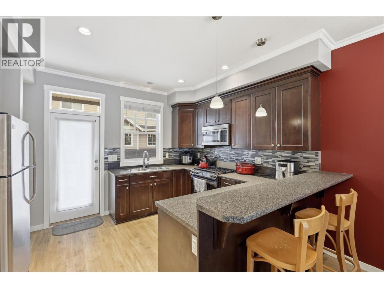 Located just 10 minutes from downtown in Cortland Park at Orchards Walk, this three-level home offers low-maintenance living with strata-managed landscaping — no yard work to worry about. The ground level features a spacious tandem two-car garage with extra storage. The bright main floor includes an open kitchen and dining area, stainless steel appliances with a gas stove, pantry, breakfast bar, and access to a covered deck with BBQ. A convenient 2-piece bathroom completes this level. Upstairs you’ll find all three bedrooms, two full bathrooms, and laundry located right where you need it. Pet friendly and surrounded by walking paths, this home is ideal for professionals, busy couples, or anyone looking for a lock-and-leave lifestyle in a well-connected community close to the city. (id:6769)