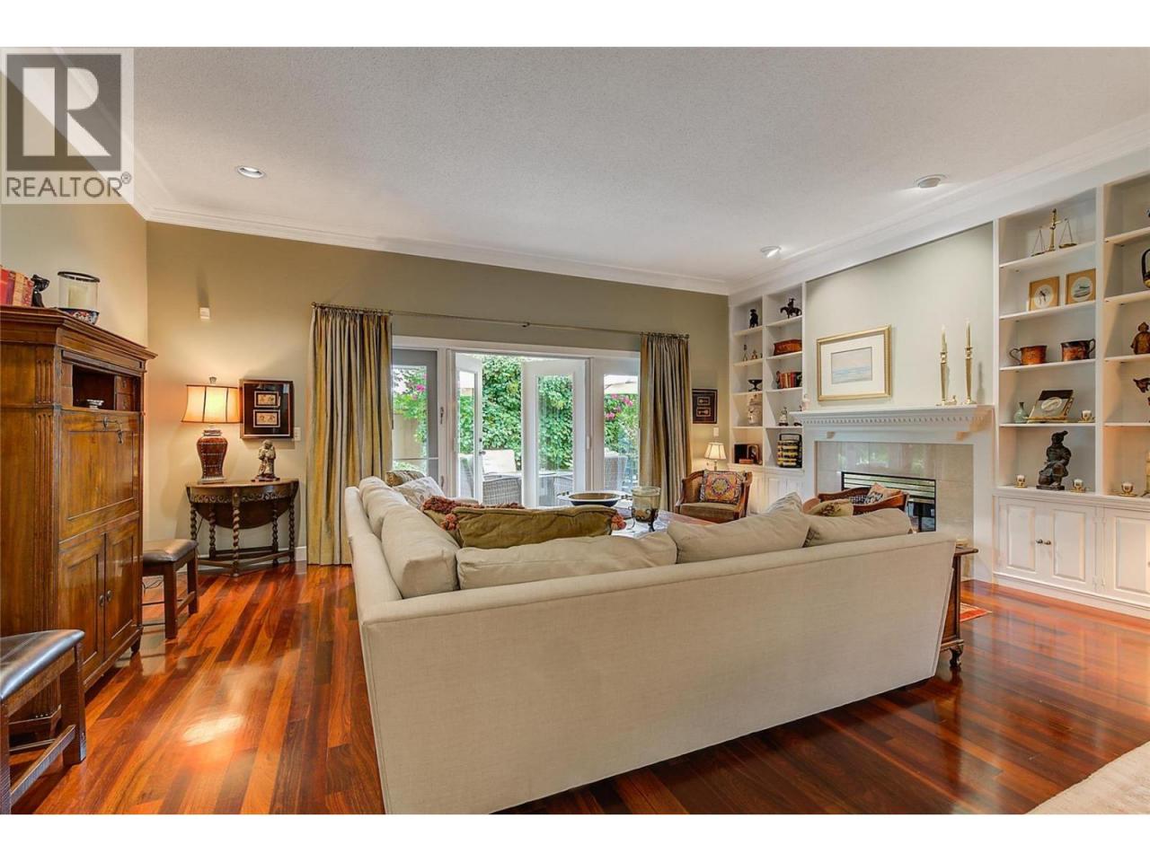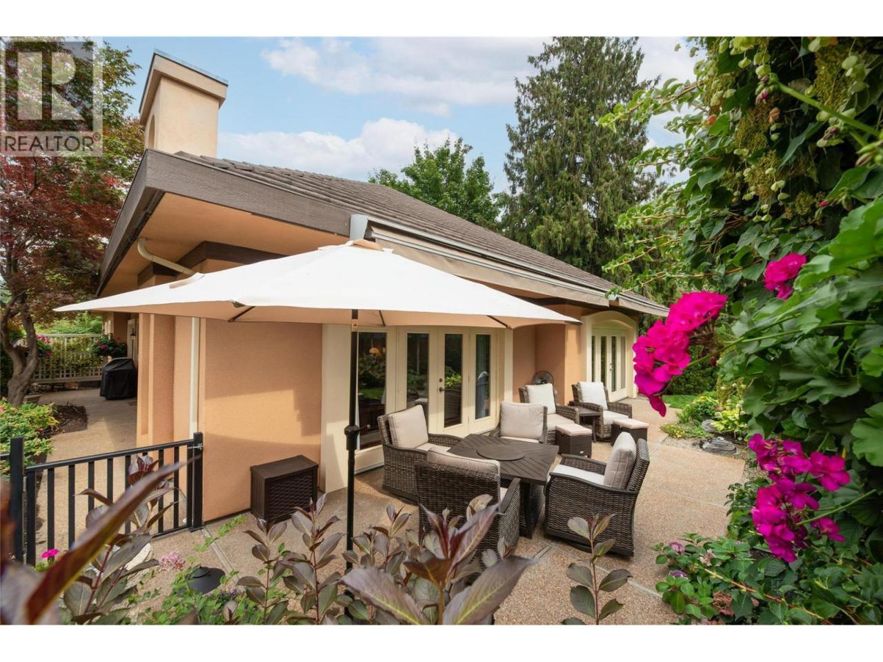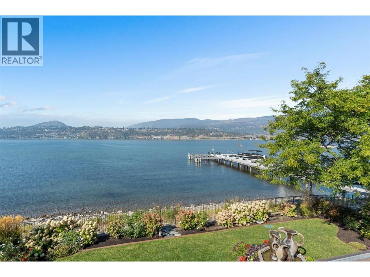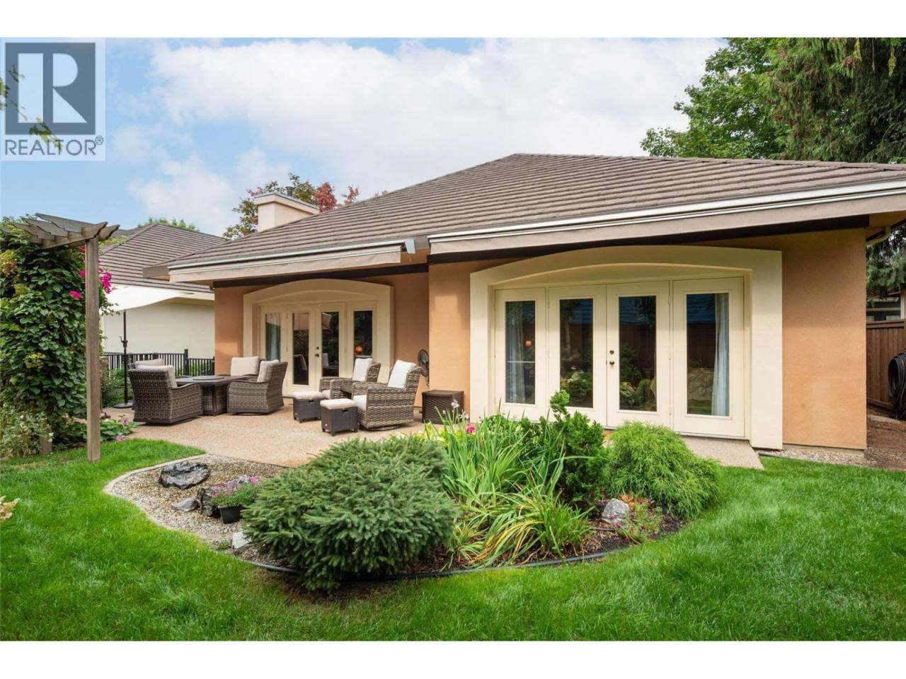 Luxurious One-Level Home in Gated Waterfront Community. Discover the perfect blend of comfort and convenience in this stunning one-level home located in an exclusive gated community. This residence offers easy access to the lake with your own private boat slip and lift. Enjoy tranquil living with waterfront pool beautifully landscaped surroundings. Residents of Le Chateau can also enjoy resort-style amenities on site including an outdoor pool, hot tub & private dock. Upon entry you're greeted by high ceilings, and rich cherry hardwood floors leading to the kitchen and the main living area. The chef’s kitchen features brand-new stainless-steel appliances. Centre island offers a gas range. Off the kitchen is an open, main living area with custom built-ins surrounding the gas fireplace. The primary suite is a gorgeous sanctuary with private access to the backyard and a recently renovated primary ensuite. The ensuite is finished with wood cabinetry, & granite counters for a luxurious feel. Enjoy unwinding in the soaker tub or expansive glass steam shower with a bench and speakers. One additional bedroom and den. In the backyard you’re surrounded by mature landscaping and a trellis bordering the patio. A water feature & outdoor lighting have been added. The two-car garage has been finished with epoxy flooring, and custom cabinetry. Incredible location within walking distance to beaches, cafes, restaurants and boutiques, and only a 5 minute drive to downtown Kelowna. (id:6769)
