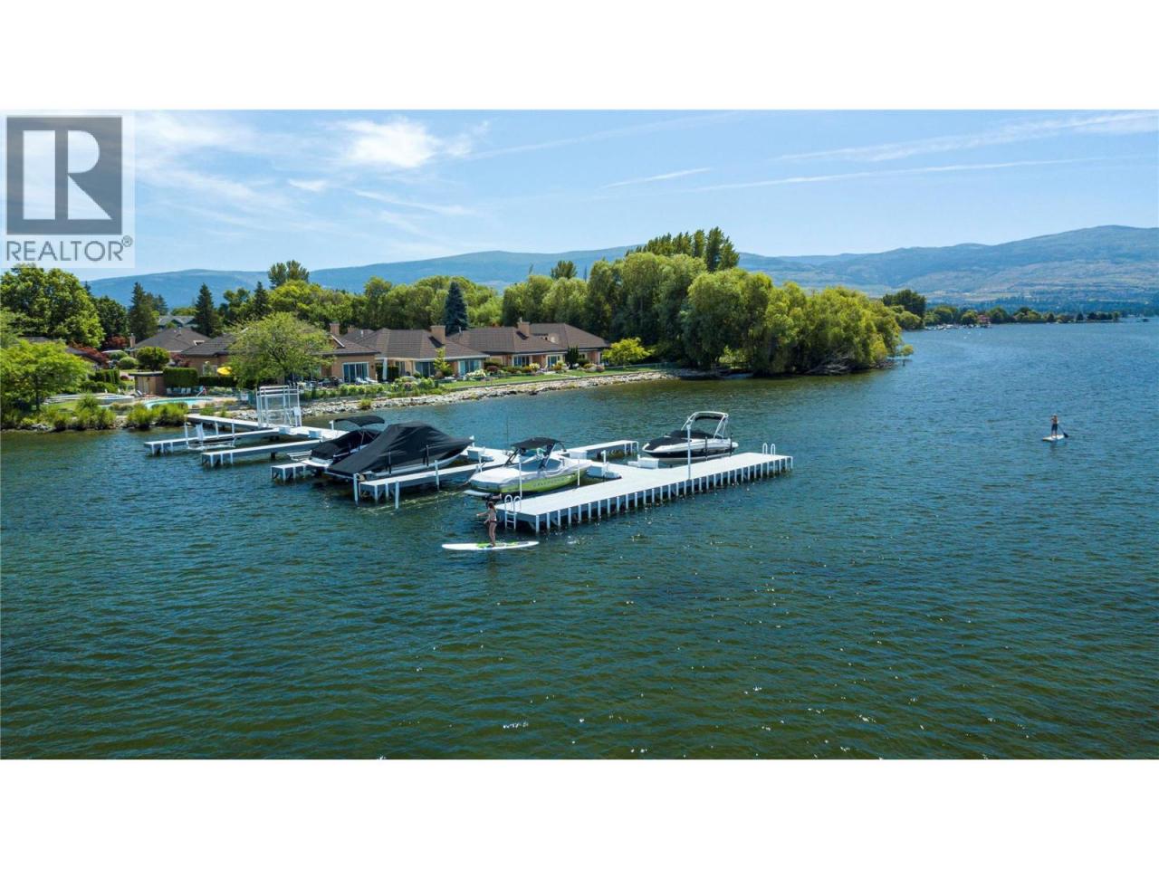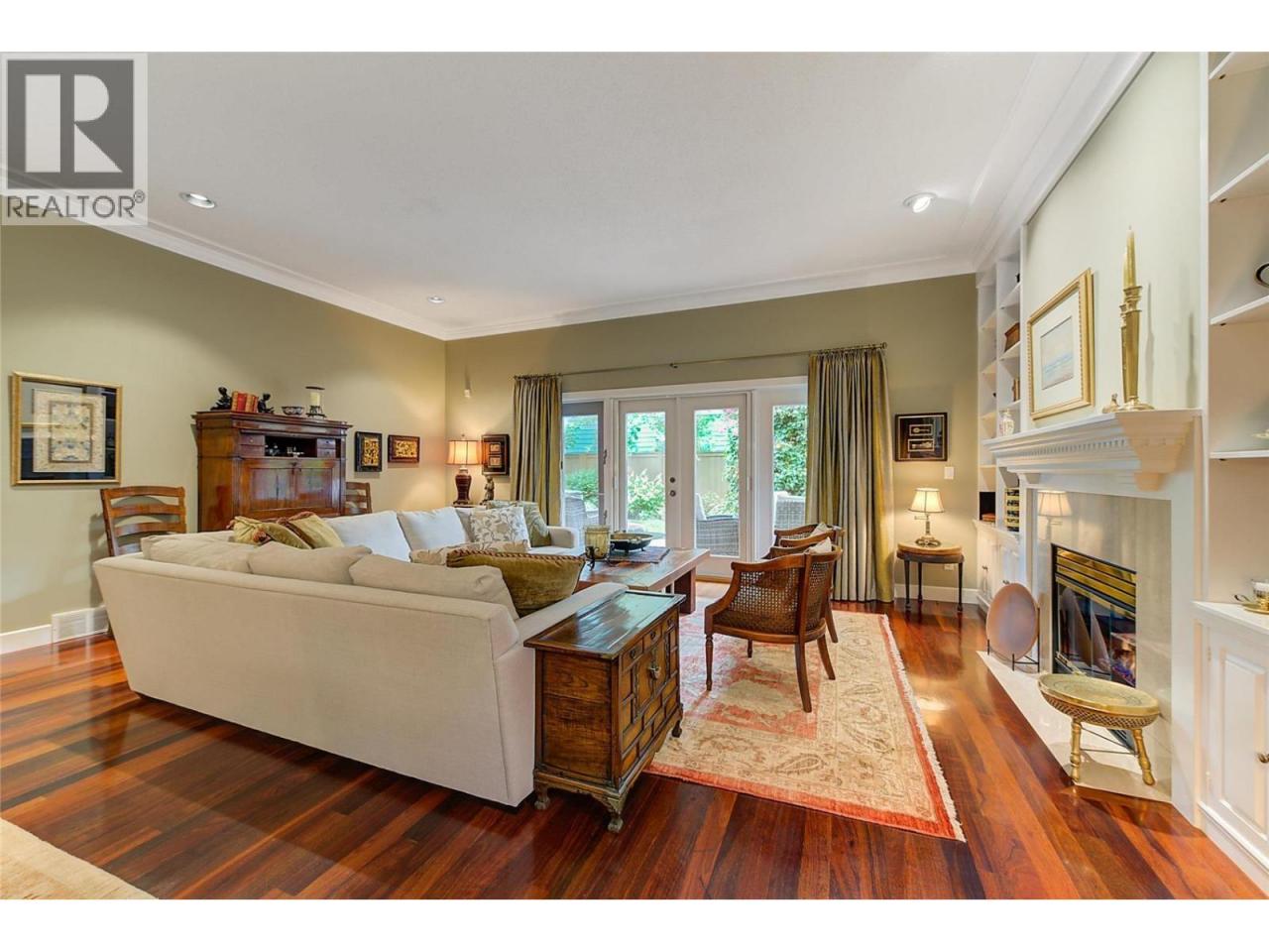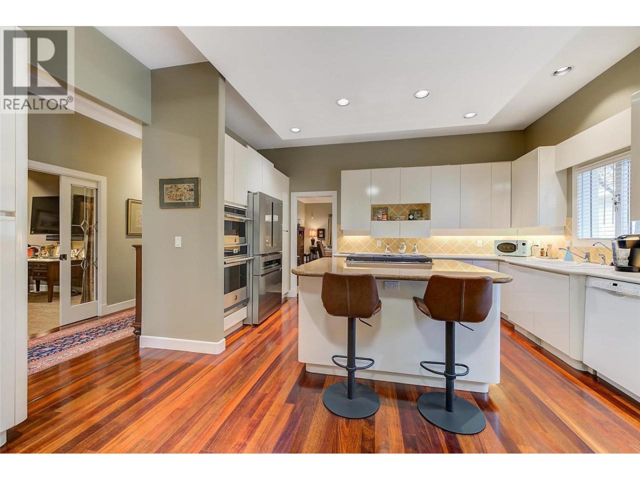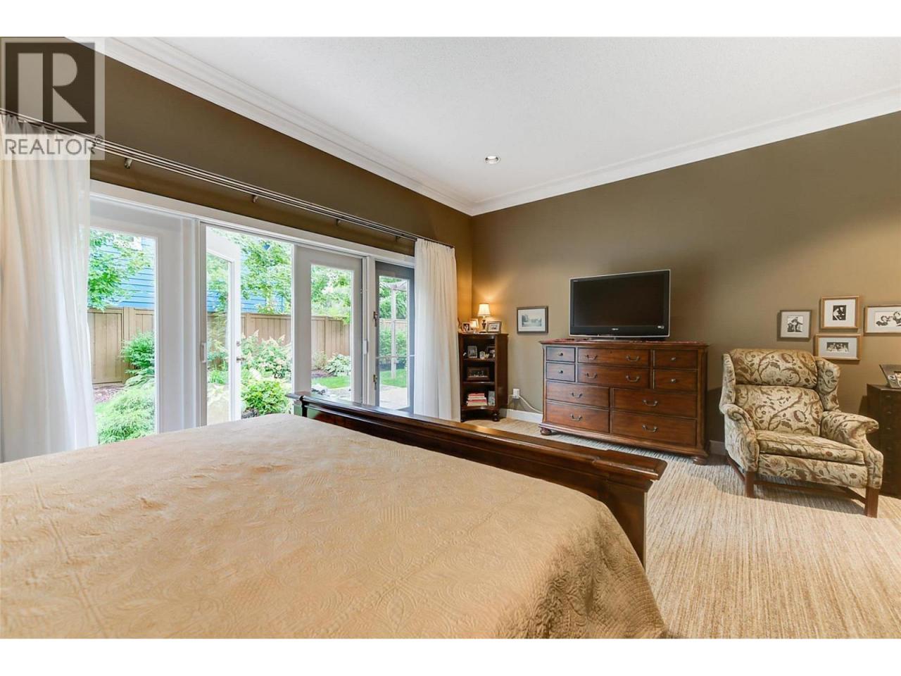 Luxurious One-Level Home in Gated Waterfront Community. Discover the perfect blend of comfort and convenience in this stunning one-level home located in an exclusive gated community. This residence offers easy access to the lake with your own private boat slip and lift. Enjoy tranquil living with waterfront pool beautifully landscaped surroundings. Residents of Le Chateau can also enjoy resort-style amenities on site including an outdoor pool, hot tub & private dock. Upon entry you're greeted by high ceilings, and rich cherry hardwood floors leading to the kitchen and the main living area. The chef’s kitchen features brand-new stainless-steel appliances. Centre island offers a gas range. Off the kitchen is an open, main living area with custom built-ins surrounding the gas fireplace. The primary suite is a gorgeous sanctuary with private access to the backyard and a recently renovated primary ensuite. The ensuite is finished with wood cabinetry, & granite counters for a luxurious feel. Enjoy unwinding in the soaker tub or expansive glass steam shower with a bench and speakers. One additional bedroom and den. In the backyard you’re surrounded by mature landscaping and a trellis bordering the patio. A water feature & outdoor lighting have been added. The two-car garage has been finished with epoxy flooring, and custom cabinetry. Incredible location within walking distance to beaches, cafes, restaurants and boutiques, and only a 5 minute drive to downtown Kelowna. (id:6769)