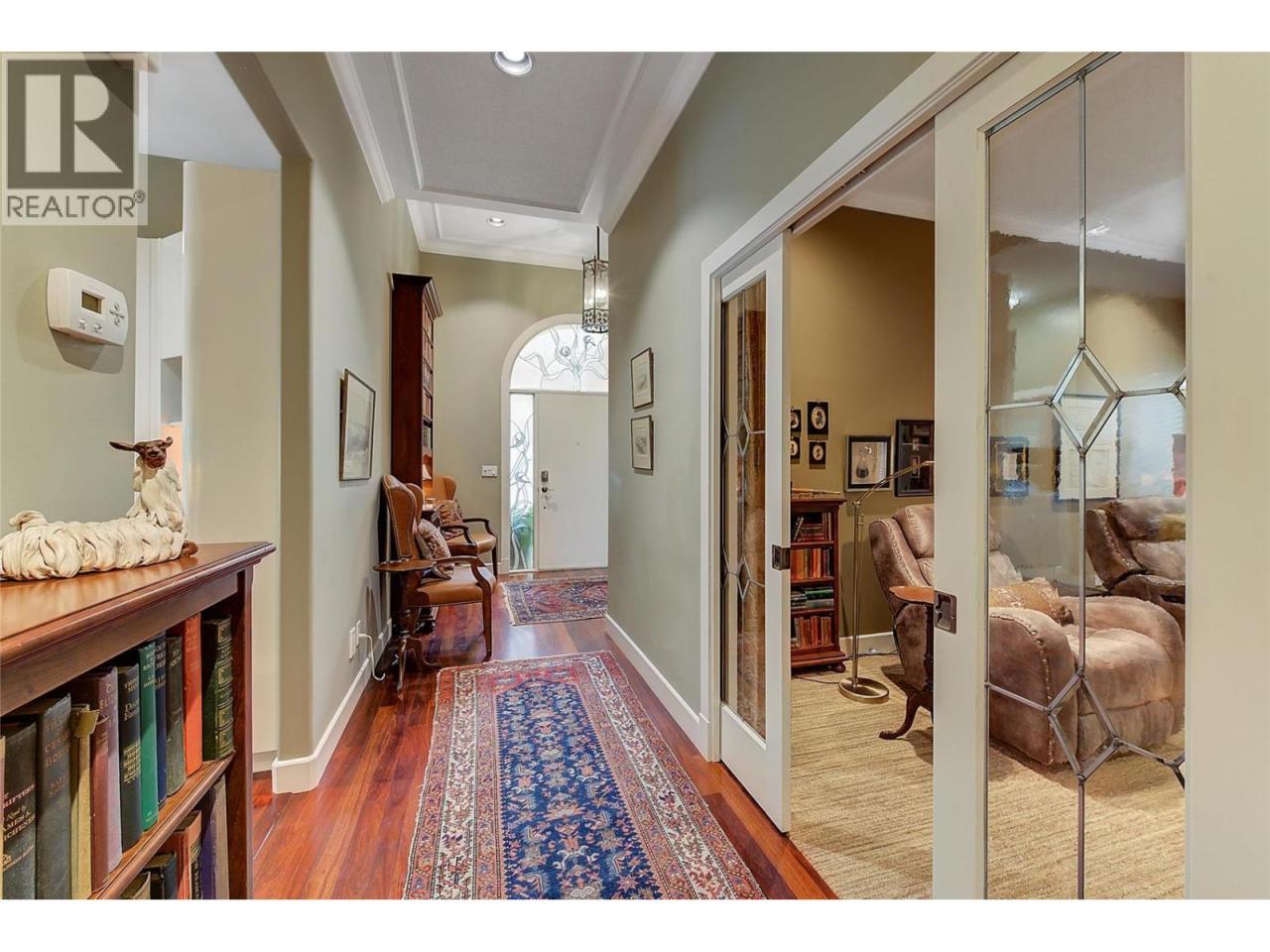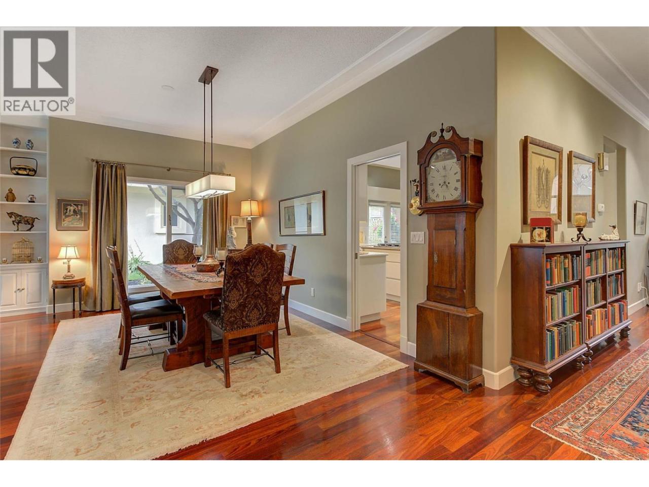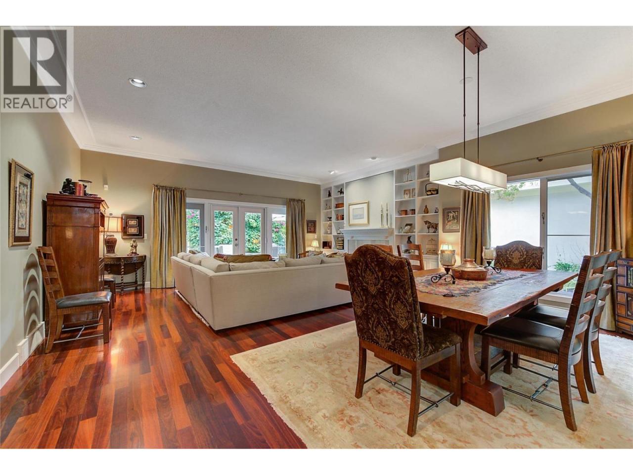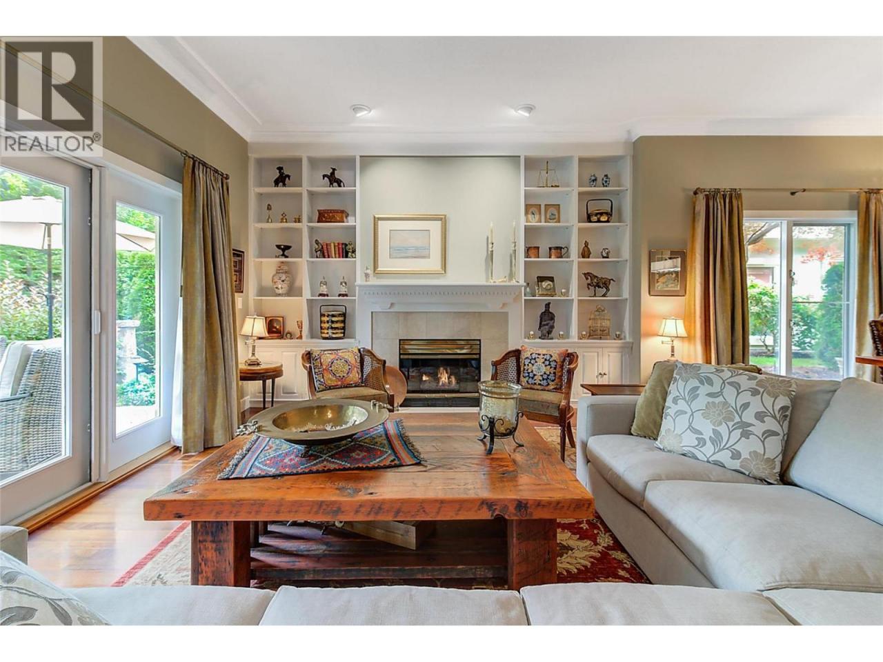 Luxurious One-Level Home in Gated Waterfront Community. Discover the perfect blend of comfort and convenience in this stunning one-level home located in an exclusive gated community. This residence offers easy access to the lake with your own private boat slip and lift. Enjoy tranquil living with waterfront pool beautifully landscaped surroundings. Residents of Le Chateau can also enjoy resort-style amenities on site including an outdoor pool, hot tub & private dock. Upon entry you're greeted by high ceilings, and rich cherry hardwood floors leading to the kitchen and the main living area. The chef’s kitchen features brand-new stainless-steel appliances. Centre island offers a gas range. Off the kitchen is an open, main living area with custom built-ins surrounding the gas fireplace. The primary suite is a gorgeous sanctuary with private access to the backyard and a recently renovated primary ensuite. The ensuite is finished with wood cabinetry, & granite counters for a luxurious feel. Enjoy unwinding in the soaker tub or expansive glass steam shower with a bench and speakers. One additional bedroom and den. In the backyard you’re surrounded by mature landscaping and a trellis bordering the patio. A water feature & outdoor lighting have been added. The two-car garage has been finished with epoxy flooring, and custom cabinetry. Incredible location within walking distance to beaches, cafes, restaurants and boutiques, and only a 5 minute drive to downtown Kelowna. (id:6769)