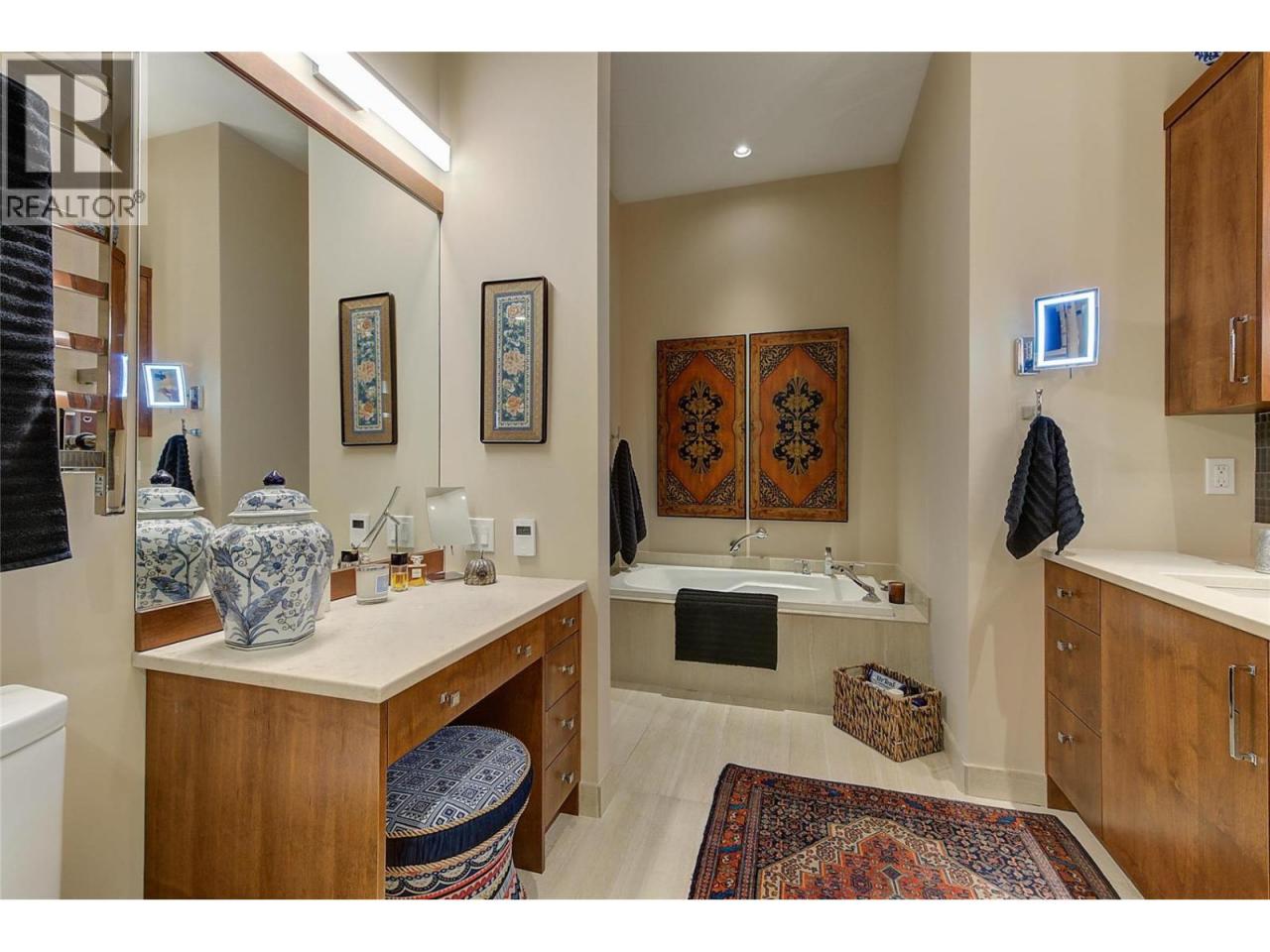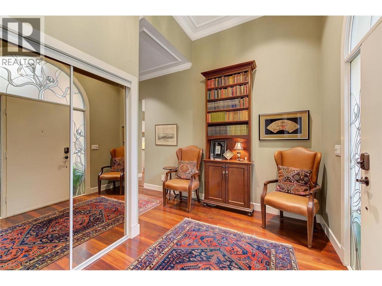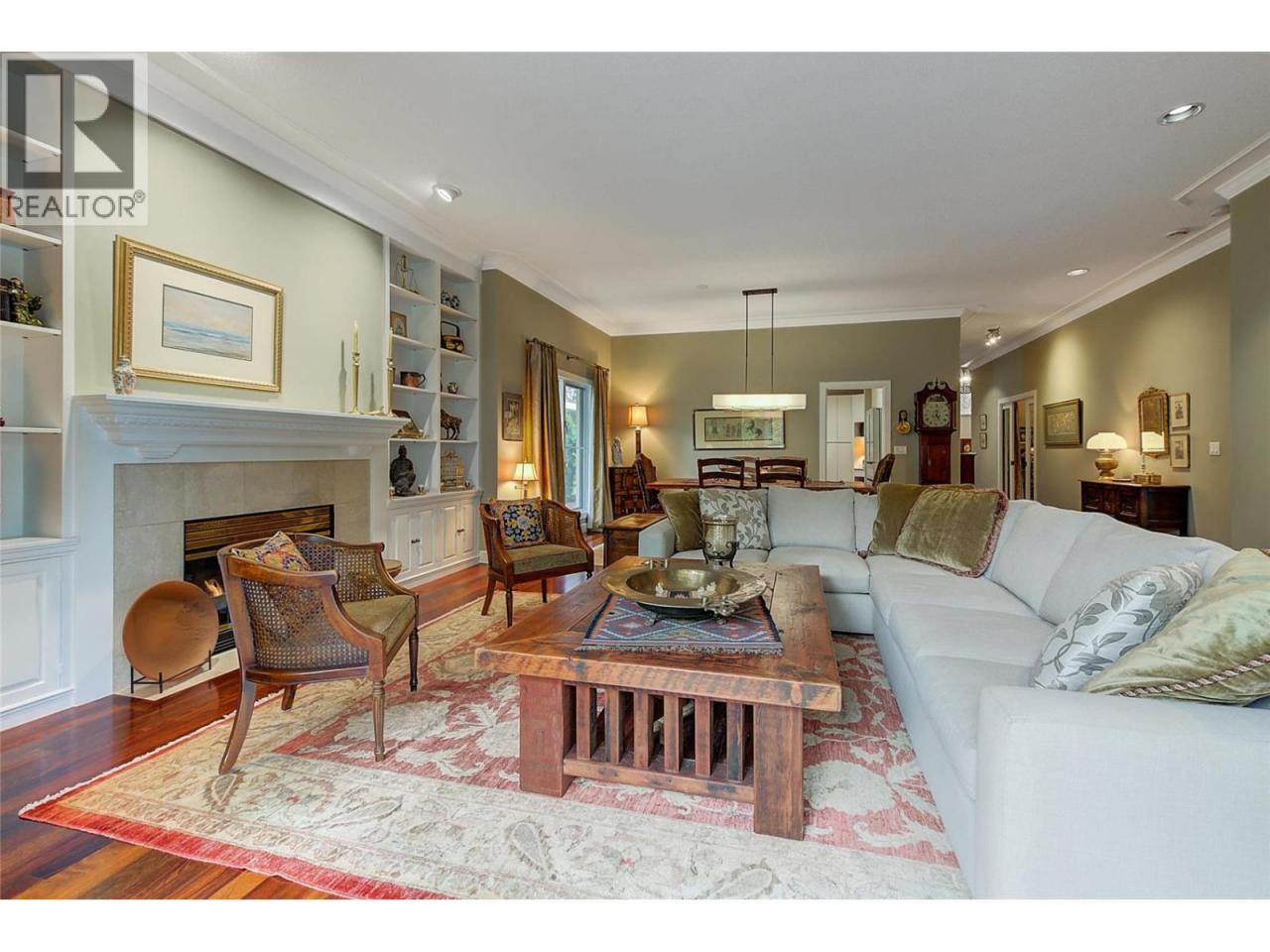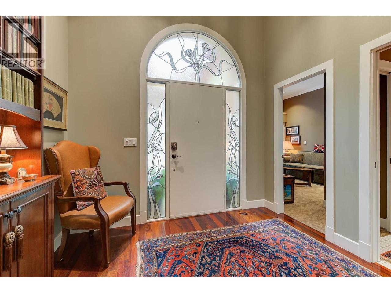 Luxurious One-Level Home in Gated Waterfront Community. Discover the perfect blend of comfort and convenience in this stunning one-level home located in an exclusive gated community. This residence offers easy access to the lake with your own private boat slip and lift. Enjoy tranquil living with waterfront pool beautifully landscaped surroundings. Residents of Le Chateau can also enjoy resort-style amenities on site including an outdoor pool, hot tub & private dock. Upon entry you're greeted by high ceilings, and rich cherry hardwood floors leading to the kitchen and the main living area. The chef’s kitchen features brand-new stainless-steel appliances. Centre island offers a gas range. Off the kitchen is an open, main living area with custom built-ins surrounding the gas fireplace. The primary suite is a gorgeous sanctuary with private access to the backyard and a recently renovated primary ensuite. The ensuite is finished with wood cabinetry, & granite counters for a luxurious feel. Enjoy unwinding in the soaker tub or expansive glass steam shower with a bench and speakers. One additional bedroom and den. In the backyard you’re surrounded by mature landscaping and a trellis bordering the patio. A water feature & outdoor lighting have been added. The two-car garage has been finished with epoxy flooring, and custom cabinetry. Incredible location within walking distance to beaches, cafes, restaurants and boutiques, and only a 5 minute drive to downtown Kelowna. (id:6769)
