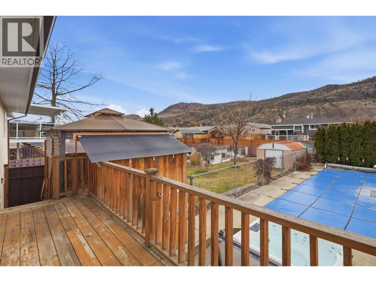 Beautiful 3 bedroom up with a 2 bedroom basement suite and a pool in a great Westsyde location. This almost 2200 sq ft home has a spacious main floor featuring a large living room with fireplace, dining area, functional kitchen with stainless steel appliances, updated counters and painted cabinets, main floor laundry with access to the deck, 4-pc bathroom and 3 good sized bedrooms. The basement with a separate entrance is great as part of the main residence or as a standalone 2 bedroom suite. Well laid out with a bright kitchen, updated 3-pc bathroom, in suite laundry and new flooring throughout. The private yard has a fenced in pool area with patio and gazebo, multiple level deck with cover, storage shed, underground sprinklers and alley access for a potential shop. The double wide driveway is large enough for at least 4 vehicles and there is a separate gravel pad for RV parking. Updates include windows 2018, roof 2012, furnace 2021 as well as flooring, paint, trim, lighting and 200 amp service. Great location close to rivers trail, schools, recreation, shopping and transit. (id:6769)