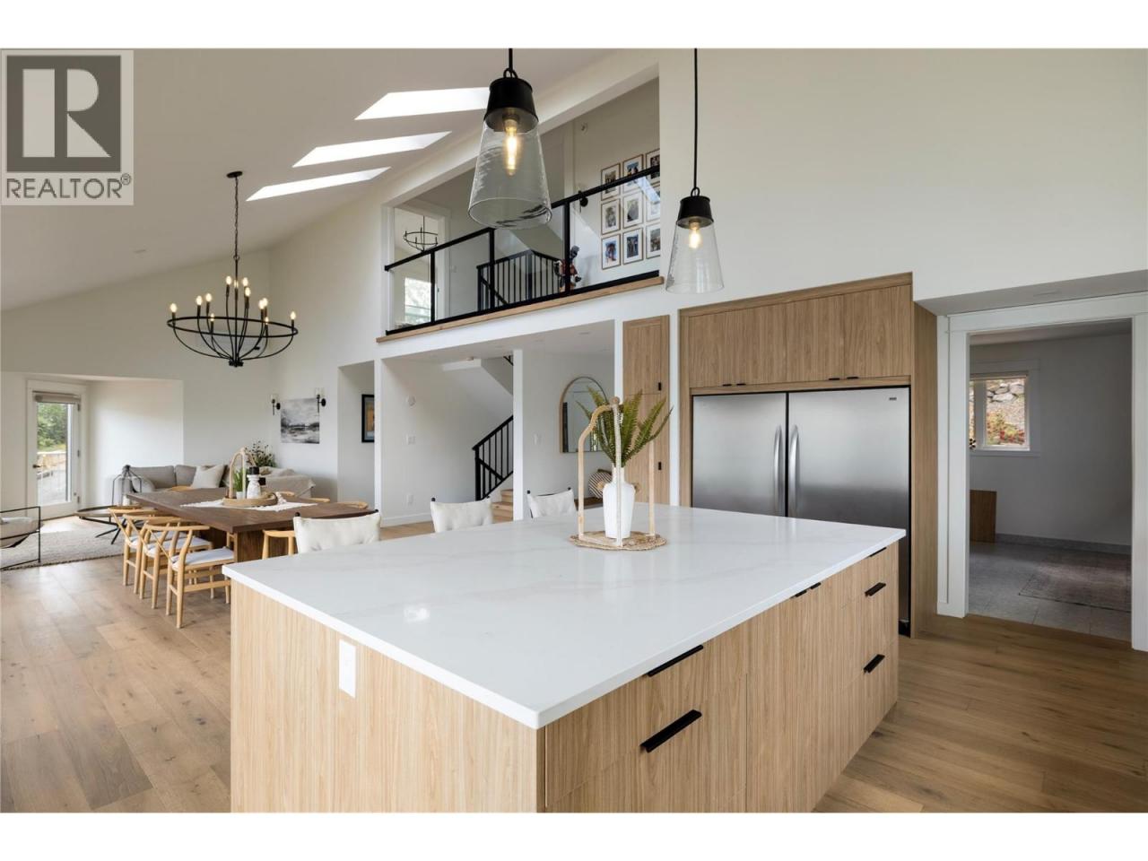 Wake up to panoramic views of Kalamalka Lake and unwind under the stars on your own 5-acre Oyama retreat. This beautifully updated 4-bedroom + flex, 4-bath home offers over 3,500 sq.ft. of bright, inviting living space designed to capture the view from nearly every angle. Vaulted ceilings, expansive windows, and engineered hardwood floors create warmth and openness throughout. The lakeview kitchen features a 5x8 quartz island, butler’s pantry, and direct access to the expansive deck — perfect for sunset dinners and seamless indoor-outdoor living. Upstairs offers three bedrooms and two full baths. The walkout lower level adds a fourth bedroom, full bath, rec space, and a versatile flex room ideal for a gym, office, studio, or future suite. Outside, enjoy a 1,000 sq.ft. sundeck, sunken hot tub, custom gazebo with fire pit, waterfall pond, landscaped gardens (2024), workshop and ample covered parking for RVs and recreational toys. Minutes to Kalamalka and Wood Lake, rail trail, wineries, local markets, the airport, Vernon (15 min), and Kelowna (25 min). A rare blend of privacy, space, and true Okanagan lifestyle. (id:6769)