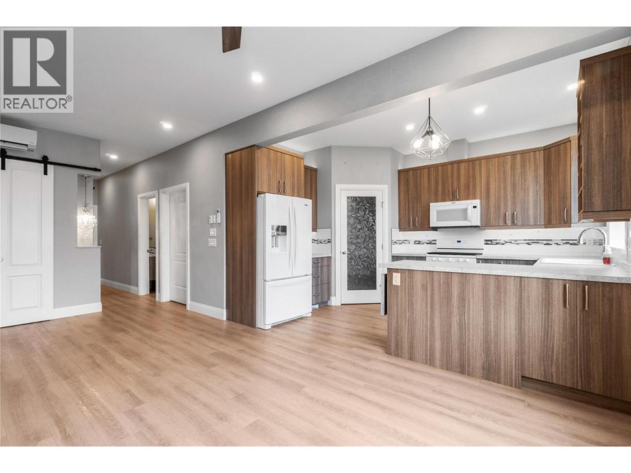 This level entry 2 bedroom, 2 bathroom townhouse in Valley Vista provides the perfect opportunity for downsizing or purchasing your first home! The second bedroom is cleverly designed for the potential to be easily turned into 2 bedrooms with the addition of 1 wall, turning this unit into a 3 bedroom home. The window and door for the 3rd bedroom are already in place. The kitchen is bright and open, complete with a pantry and eating bar. The living room with high ceilings features a gas fireplace for heating and an efficient heat pump for cooling. Plenty of storage available in the large in-suite laundry room. 2 parking stalls are conveniently located in front of the unit. With low monthly strata fees and within easy walking distance to all essential amenities, this home provides unbeatable value and flexibility. (id:6769)