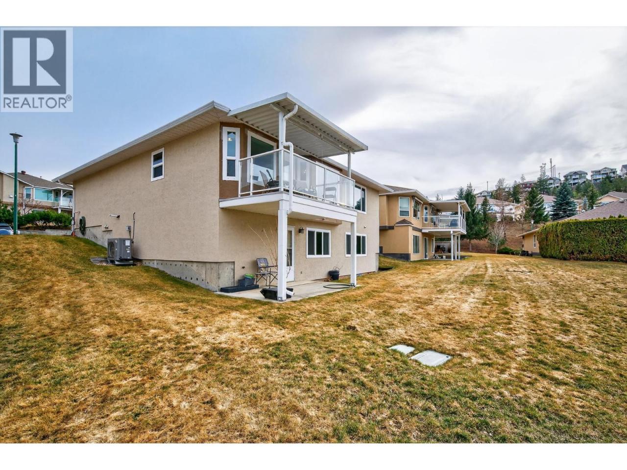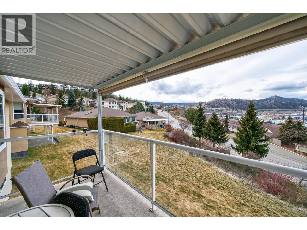 Welcome to Crestview Heights, one of Upper Sahali’s most sought-after bareland strata communities, just minutes from shopping, recreation, public transit, and a short drive to downtown and Royal Inland Hospital. This beautifully maintained 55+ home has been updated with new windows, a new furnace, and fresh paint. The main floor features two bedrooms, including a spacious primary with walk-in closet and 3-piece ensuite, a second full bathroom, main floor laundry, and a bright foyer with skylight. Cozy up by the corner gas fireplace in the living area or enjoy west-facing city, river, and mountain views from the covered deck off the kitchen, which boasts ample cabinetry and a large island. The walk-out lower level opens to a covered patio and offers flexible living with a finished family room with built-in cabinetry and sink, a recreation room, a full bathroom, and three additional rooms ready for your finishing touches. Additional perks include a double attached garage with interior access, central A/C, built-in vacuum, gas BBQ hookup, visitor parking nearby, and RV parking subject to availability—perfect for low-maintenance, comfortable living in a prime location. (id:6769)