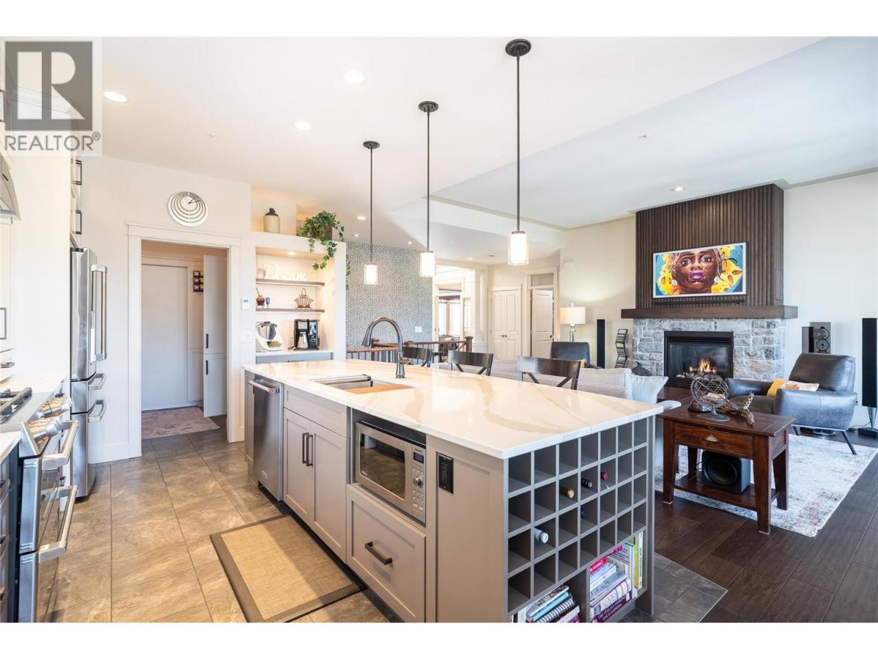 Perched above the golf course, this lovely home offers a treehouse-like feel with breathtaking, unobstructed views of Predator Ridge Resort and the surrounding mountains. Recently updated with stylish, modern finishes, this three bedroom, three bathroom home, provides a bright and inviting space filled with natural light. The spacious kitchen flows into the dining area and leads to an expansive deck with inset lighting and retractable screens—ideal for outdoor living. The master bedroom is a serene retreat, offering sweeping views and a luxurious spa-inspired ensuite. The main floor also includes an office, a convenient 2-piece bathroom, and a custom laundry/pantry room. The epoxy-finished garage provides ample space for two cars. The fully finished walk-out lower level features two additional bedrooms, a bathroom, and a spectacular sewing/craft room with abundant storage. A cozy family and games room, complemented by a wet bar and wine alcove, offers the perfect setting for entertaining. The lower patio, has poured aggregate, features a beautifully landscaped garden with maintenance-free artificial grass, creating a private oasis. Embrace the Predator Ridge year-round community, offering unparalleled amenities and two of Canada’s finest golf courses. Amenities include state of the art fitness centre, pool, hot tub and steam rooms, yoga studio, outdoor yoga platforms, biking, hiking, 5 tennis courts, and pickle ball courts. PREDATOR RIDGE EXEMPT FROM BC SPECULATION & VACANCY TAX (id:6769)