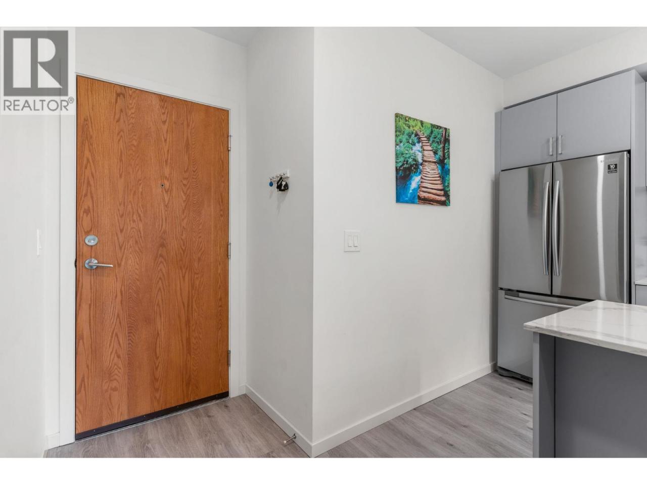 Welcome to 207–880 Saucier Avenue, a beautifully appointed 2-bedroom, 2-bathroom condo in the heart of Kelowna’s vibrant Pandosy Village. This bright and modern unit is located in the highly sought-after Copper Beech building, known for its quiet atmosphere, prime location, and timeless design. Step inside to an open-concept layout featuring 9-foot ceilings, oversized windows, and high-end finishings throughout. The chef’s kitchen includes quartz countertops, stainless steel appliances, and a spacious island with bar seating—perfect for entertaining family and friends. The living room opens to a private, covered patio overlooking lush greenery, creating a serene indoor-outdoor feel year-round. The primary suite offers a walk-through closet and a spa-inspired ensuite with dual vanities and a large glass shower. A generous second bedroom, full guest bath, in-unit laundry, and secure underground parking add convenience and comfort. Building amenities include a fitness room, guest suite, storage locker, secure entry, and pet-friendly policies. Enjoy peace of mind with professional management, a well-maintained strata, and a welcoming community of owners. Located just steps to Kelowna General Hospital, beaches, cafes, shops, and downtown nightlife, this home blends urban energy with quiet retreat. Whether you're a first-time buyer, downsizer, or investor, this is a rare opportunity to own in one of Kelowna’s most walkable and desirable neighbourhoods. (id:6769)