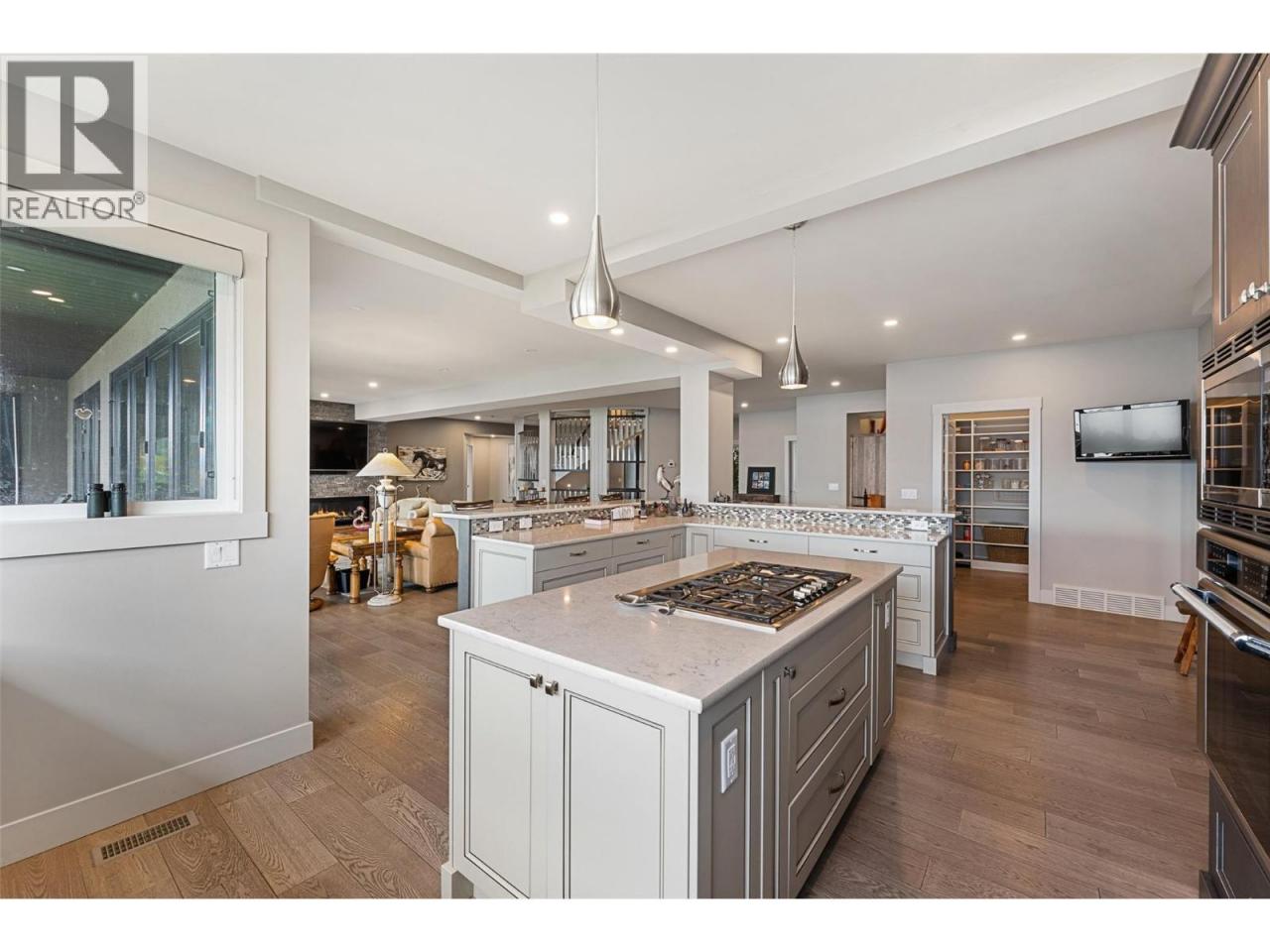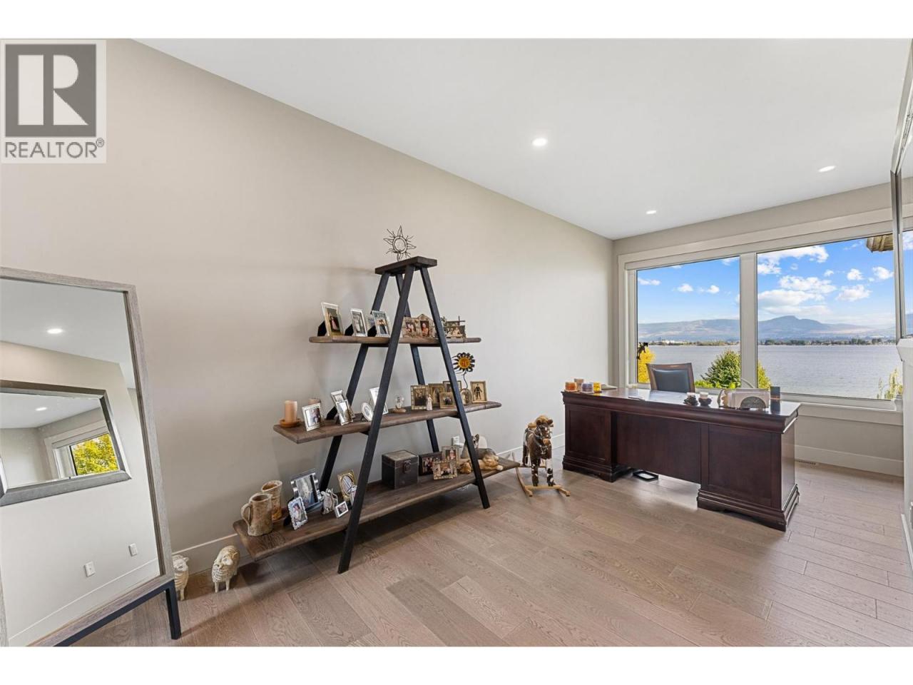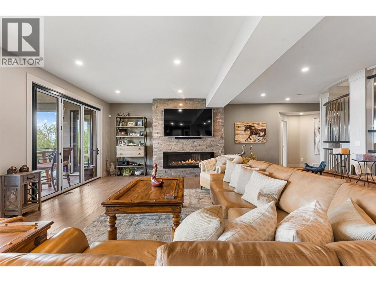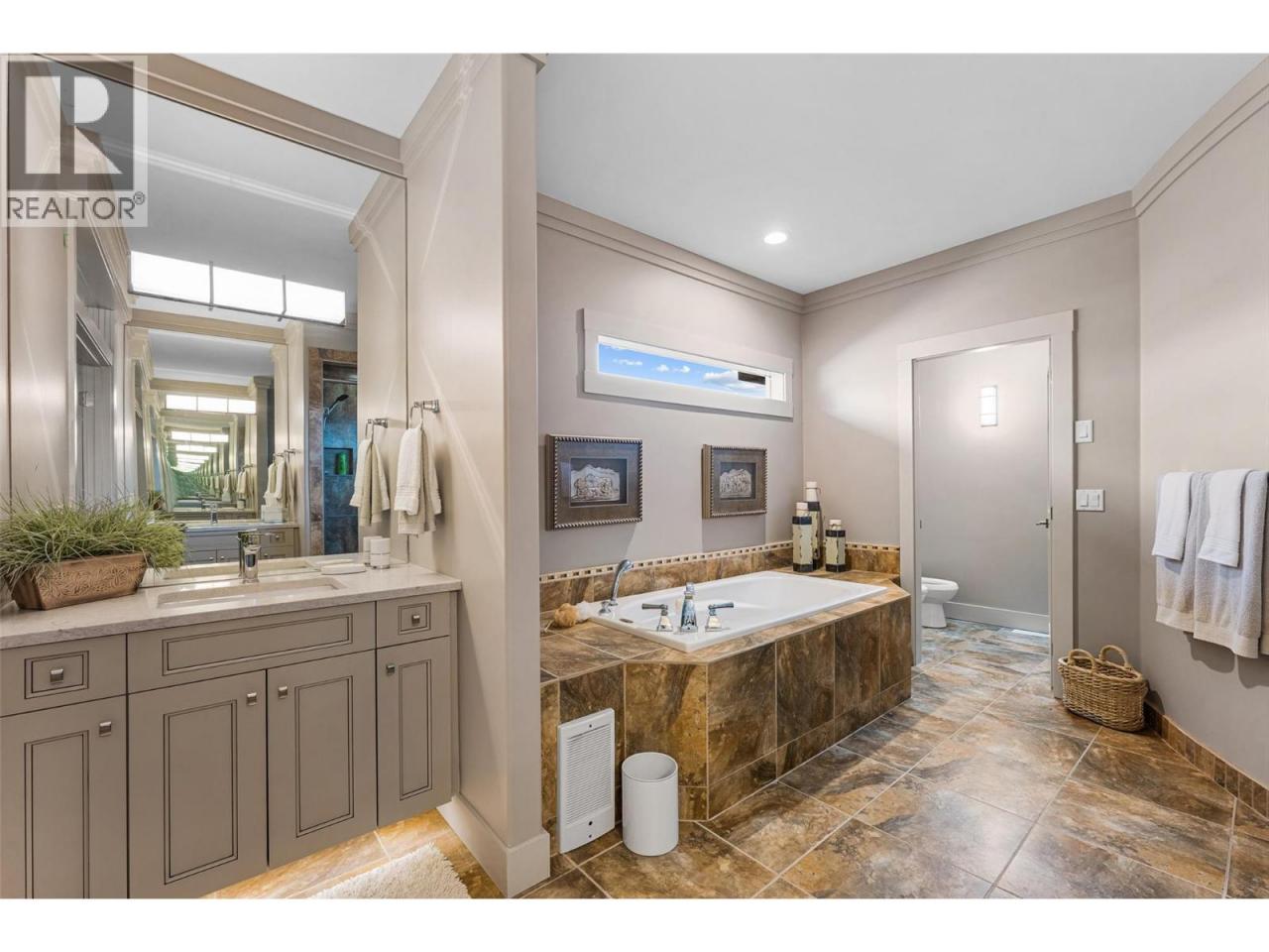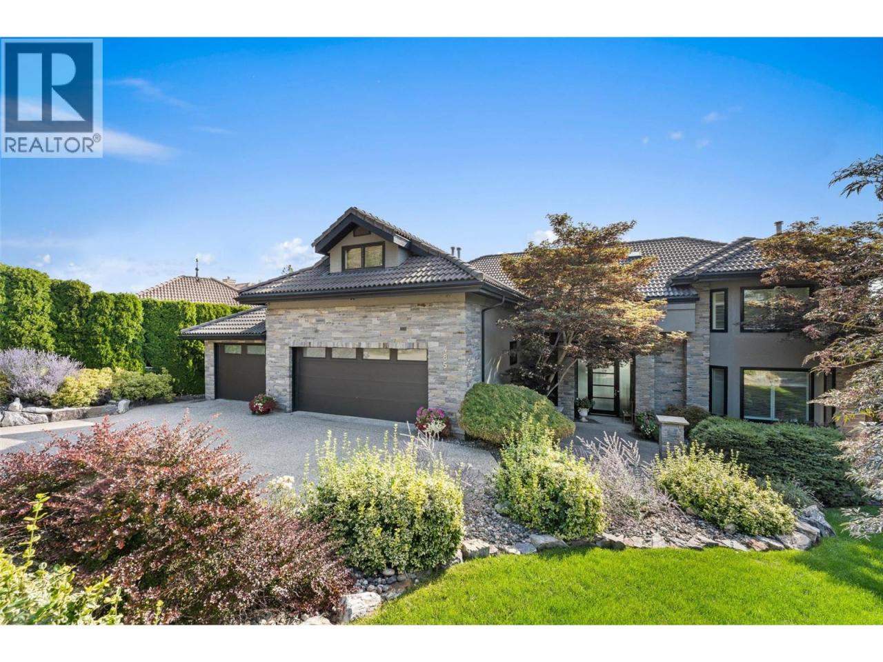 Nestled on a quiet cul de sac in a private waterfront setting, this beautiful customized residence offers a rare opportunity to experience tranquil living on the shores of Okanagan Lake. Surrounded by mature gently sloping grounds, the home blends refined design with a relaxed, resort-inspired lifestyle. Panoramic city and lake view and just minutes into town! A grand foyer with soaring ceilings, skylights and a graceful curved staircase welcomes you inside. The main living area unfolds beneath expansive windows and wall-to-wall Nano doors that open to the covered lakeside deck, creating seamless indoor-outdoor living just steps from the water. At the heart of the home, the chef’s kitchen featuring two islands, including a large L-shaped island with seating for seven, stone countertops, premium Thermador appliances and an oversized walk-in pantry. The primary retreat offers deck access, a custom walk-in closet and a spa-inspired ensuite with heated floors, a freestanding soaker tub and a fully tiled walk-in shower. Additional bedrooms on the upper level provide privacy for family and guests, including a second primary-style suite. The lower level is designed for relaxation with a spacious rec room, temp-controlled wine room, guest suite and walk-out access to the covered patio and backyard. All levels with elevator access! Outside, tiered landscaping leads to a sandy beach and a dock with boat and Seadoo lifts. Heated triple garage and generous driveway parking. (id:6769)