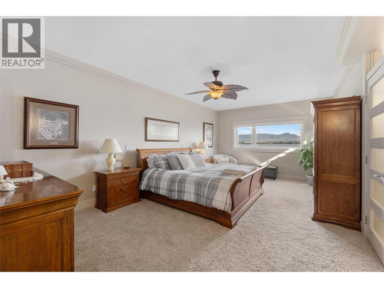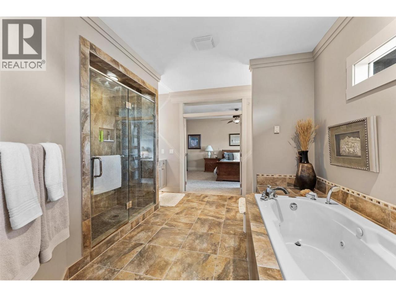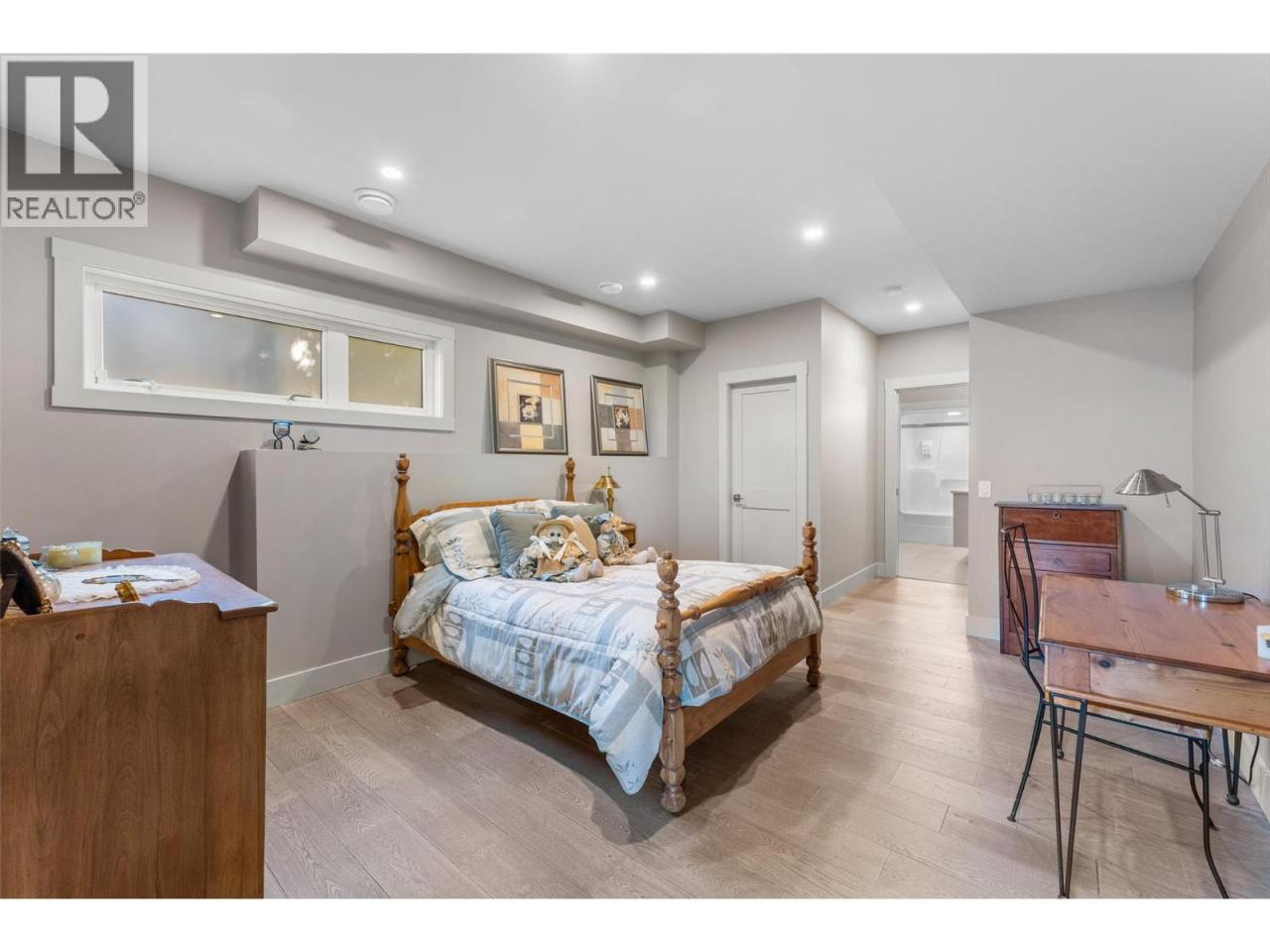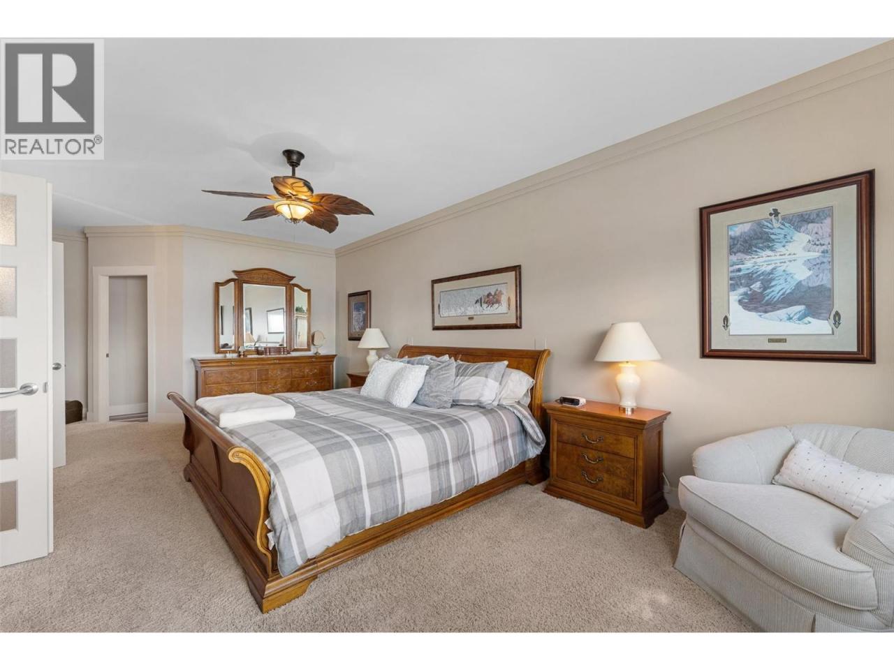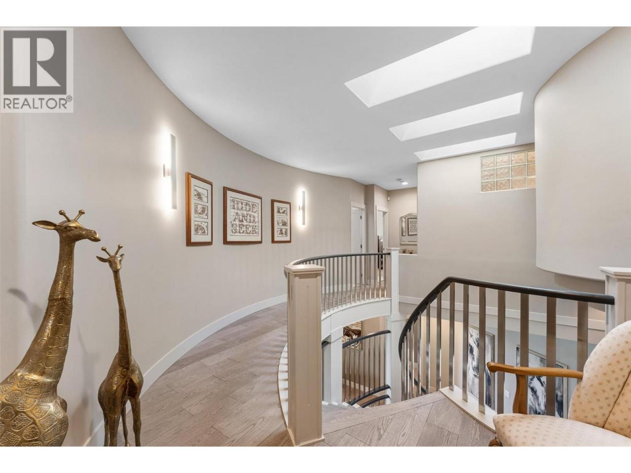Nestled on a quiet cul de sac in a private waterfront setting, this beautiful customized residence offers a rare opportunity to experience tranquil living on the shores of Okanagan Lake. Surrounded by mature gently sloping grounds, the home blends refined design with a relaxed, resort-inspired lifestyle. Panoramic city and lake view and just minutes into town! A grand foyer with soaring ceilings, skylights and a graceful curved staircase welcomes you inside. The main living area unfolds beneath expansive windows and wall-to-wall Nano doors that open to the covered lakeside deck, creating seamless indoor-outdoor living just steps from the water. At the heart of the home, the chef’s kitchen featuring two islands, including a large L-shaped island with seating for seven, stone countertops, premium Thermador appliances and an oversized walk-in pantry. The primary retreat offers deck access, a custom walk-in closet and a spa-inspired ensuite with heated floors, a freestanding soaker tub and a fully tiled walk-in shower. Additional bedrooms on the upper level provide privacy for family and guests, including a second primary-style suite. The lower level is designed for relaxation with a spacious rec room, temp-controlled wine room, guest suite and walk-out access to the covered patio and backyard. All levels with elevator access! Outside, tiered landscaping leads to a sandy beach and a dock with boat and Seadoo lifts. Heated triple garage and generous driveway parking. (id:6769)