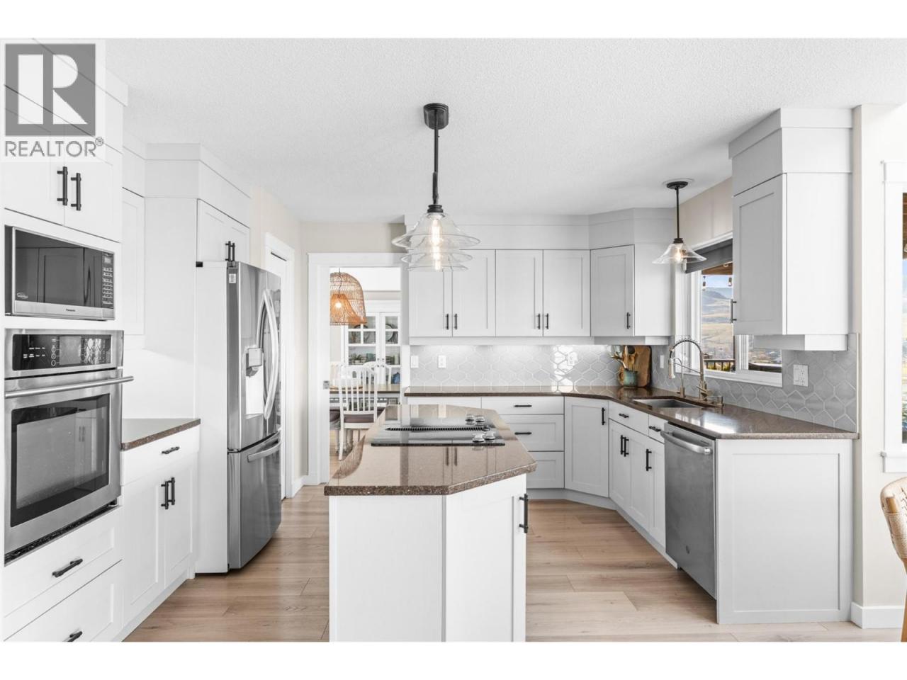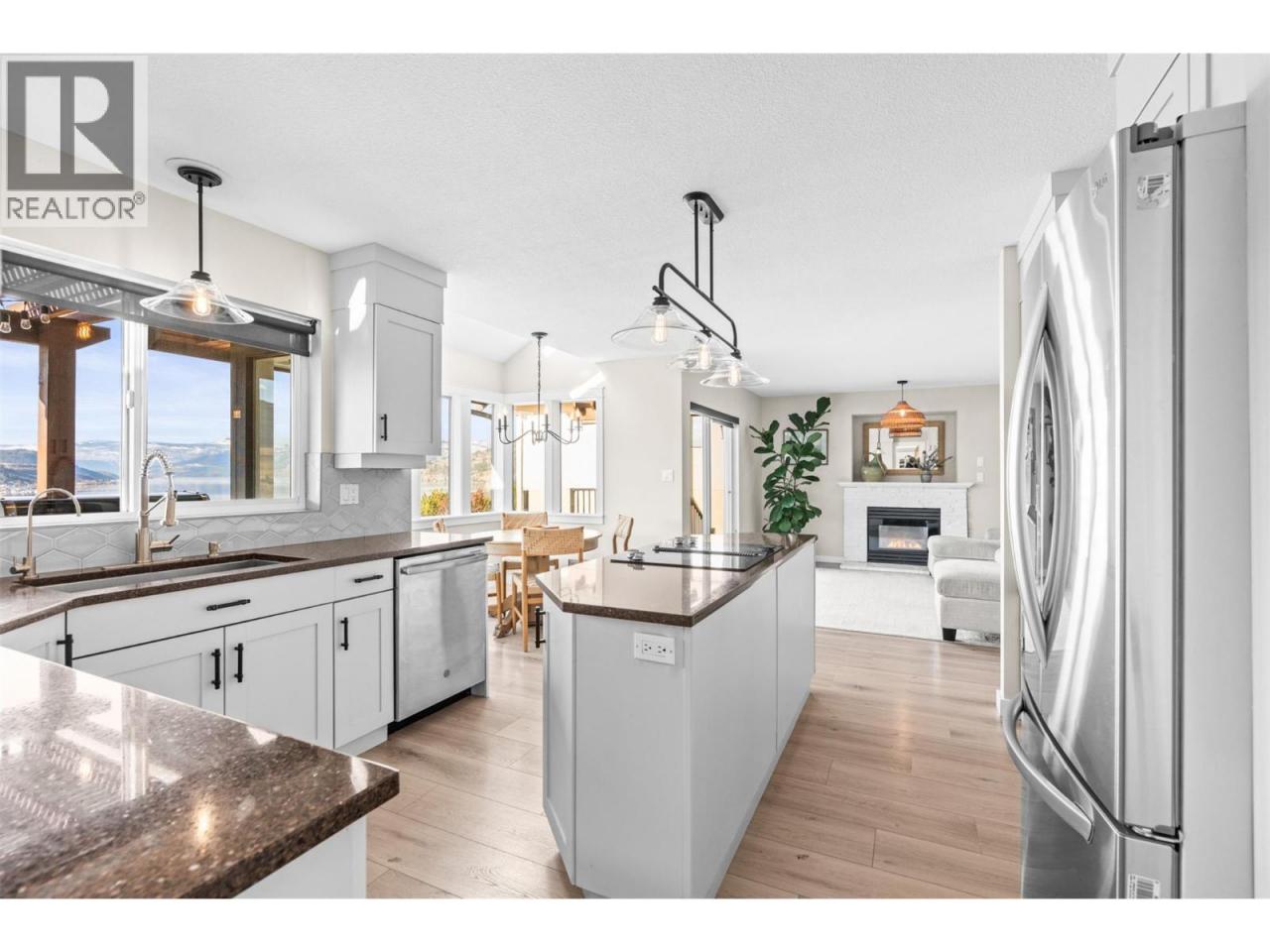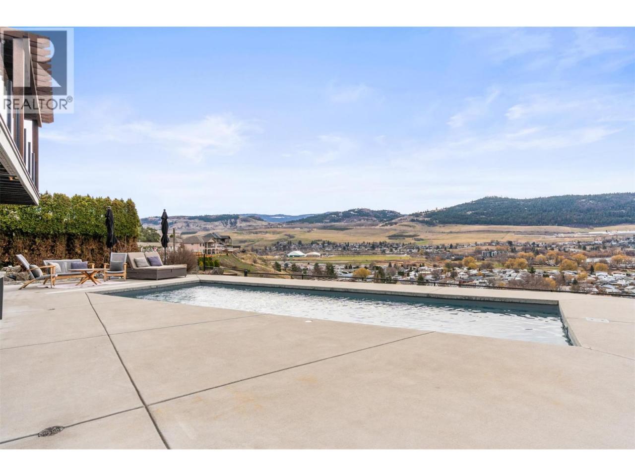 Enjoy breathtaking panoramic, unobstructed views down Okanagan Lake from this beautifully maintained home on sought-after Cameo Drive North in Bella Vista. Designed for true Okanagan living, the private backyard features an in-ground fiberglass pool with a brand-new heater, hot tub, tranquil waterfall and pond, and mature low-maintenance landscaping. Take in the ever-changing scenery of lake, sky, and wildlife while relaxing or entertaining in this exceptional setting. Inside, soaring vaulted ceilings and a graceful curved staircase create a bright, welcoming living space, while sunlight fills the home from sunrise to sunset. The home offers 4 bedrooms upstairs, with one thoughtfully converted to a convenient upper-level laundry room (easily converted back if desired), creating comfortable one-level living for families. The walk-out basement features a brand-new summer kitchen / in-law suite—perfect for poolside snacks and drinks, hosting guests, or accommodating extended family. Located just 5 minutes to the beach and only 2 minutes to golf, this property is surrounded by orchards, vineyards, and scenic walking trails including the Grey Canal Trail, with new wineries emerging nearby. Families will appreciate the excellent school catchment of Okanagan Landing Elementary and Clarence Fulton Secondary. Meticulously cared for and offering privacy, incredible views, and an exceptional lifestyle, this is a rare opportunity in one of Vernon’s most desirable neighbourhoods. (id:6769)