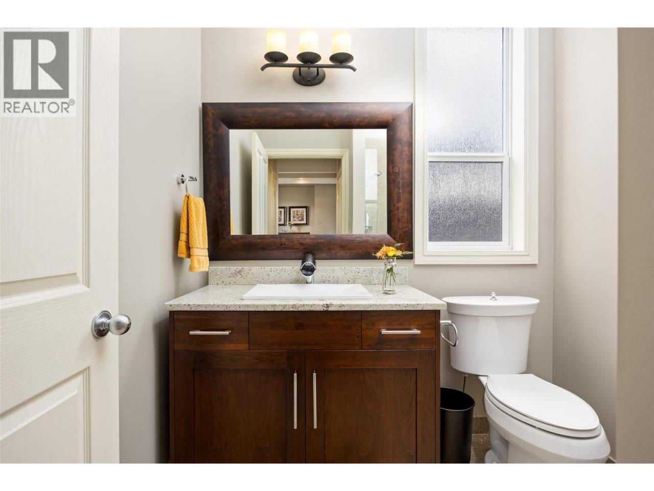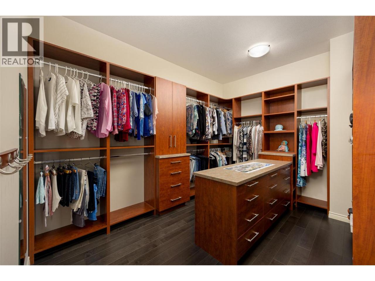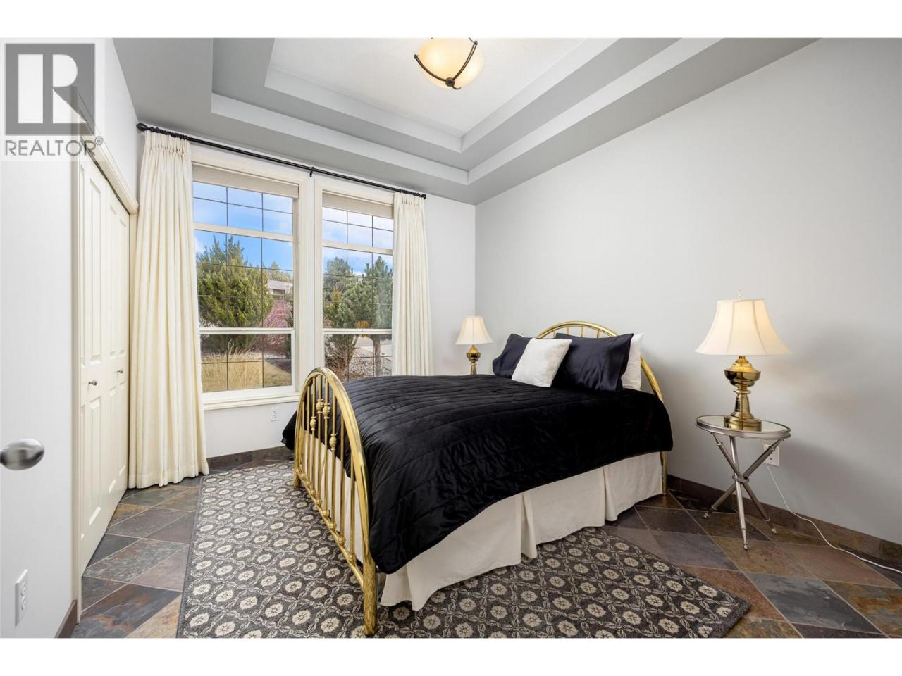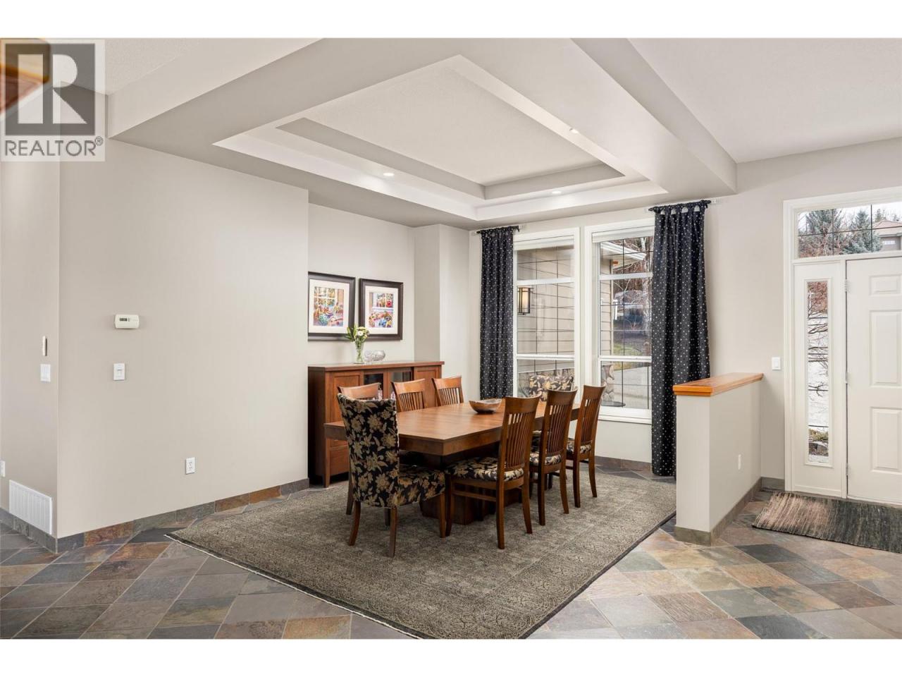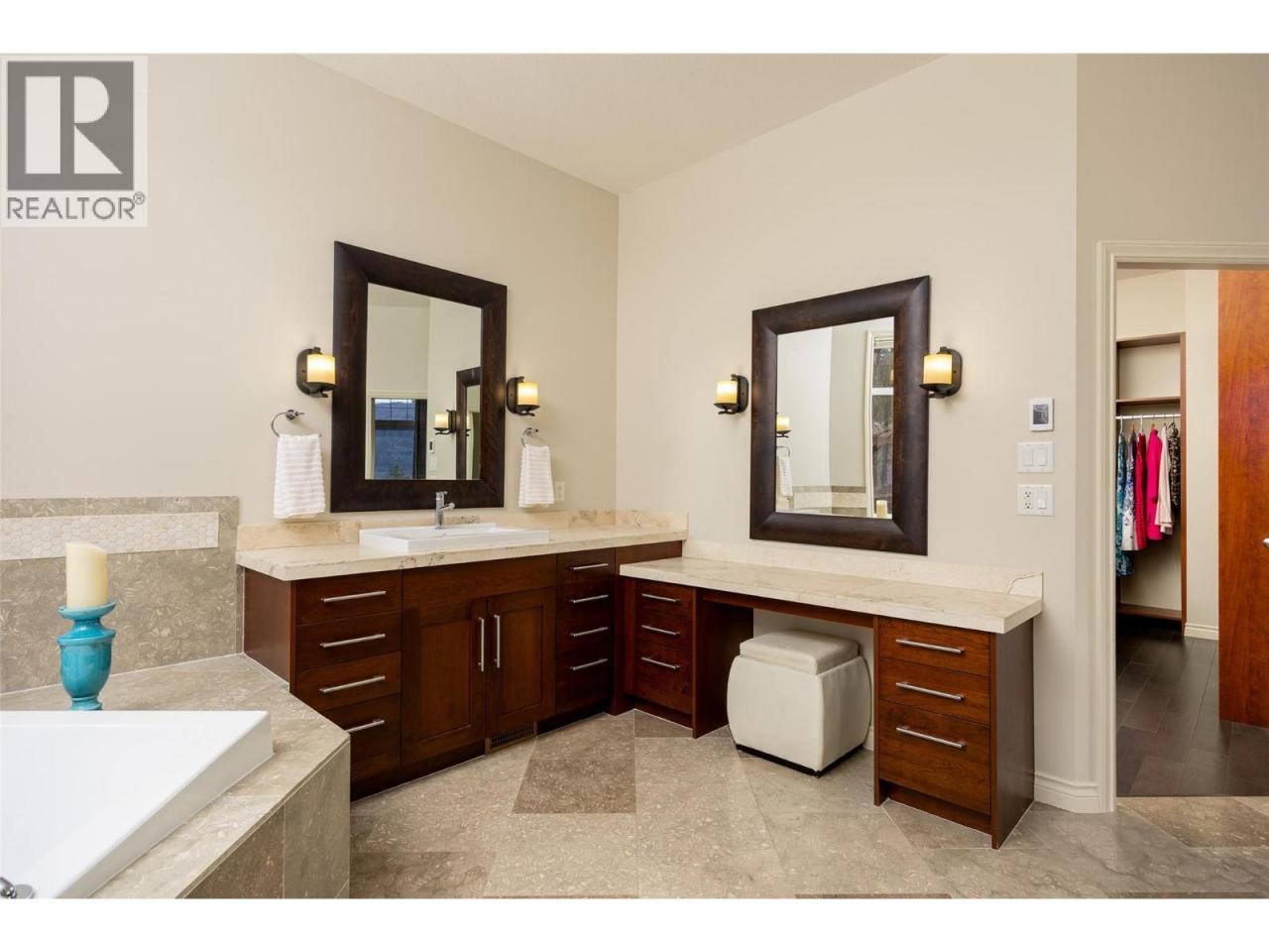 Set at the end of a quiet cul-de-sac within an exclusive community of just eight homes, this 1.3 acre property commands nearly 180-degree western views over Okanagan Lake and the surrounding mountains, offering unforgettable sunsets as your daily backdrop. This rancher with full walkout basement showcases exceptional craftsmanship and thoughtful design across more than 4,100 sq. ft. with 4 bedrooms, a den, gym and 4 bathrooms. The main level features ten foot ceilings, wide doorways, generous storage and an open-concept layout anchored by a striking two-sided wood-burning fireplace. The kitchen is both elegant and functional, appointed with granite countertops, a large island with seating for five, a 6-burner Jade gas range, KitchenAid appliances, wine fridge, under-mount lighting, automated blinds and Phantom screens for seamless indoor-outdoor living to a large balcony. Expansive living and dining areas, enhanced by surround sound on both levels, provide an elegant setting for hosting, easily accommodating large gatherings with comfort and atmosphere. The primary suite is a private retreat with lounge space, a spa-inspired ensuite with heated floors, steam shower, soaker tub, travertine counters, dual sinks and a spacious walk-in closet. A guest bedroom with tray ceiling, second full bath and large laundry room complete the upper level. Downstairs offers 8 foot ceilings, a gas fireplace, 2 bedrooms, a den/office with separate entrance and a substantial gym with wall-to-wall mirrors and oversized windows. A large recreation area offers flexibility to add a wet bar, and provides access to an ideal space for a future hot tub or sauna. Outdoors, over $60,000 in professional landscaping is supported by 21-zone irrigation, with ample room for a pool. An oversized two-car garage, flat driveway and parking for an RV complete this exceptional Okanagan offering. Only minutes from public beaches, a boat launch, world class wineries and exceptional hiking trails surrounding. (id:6769)