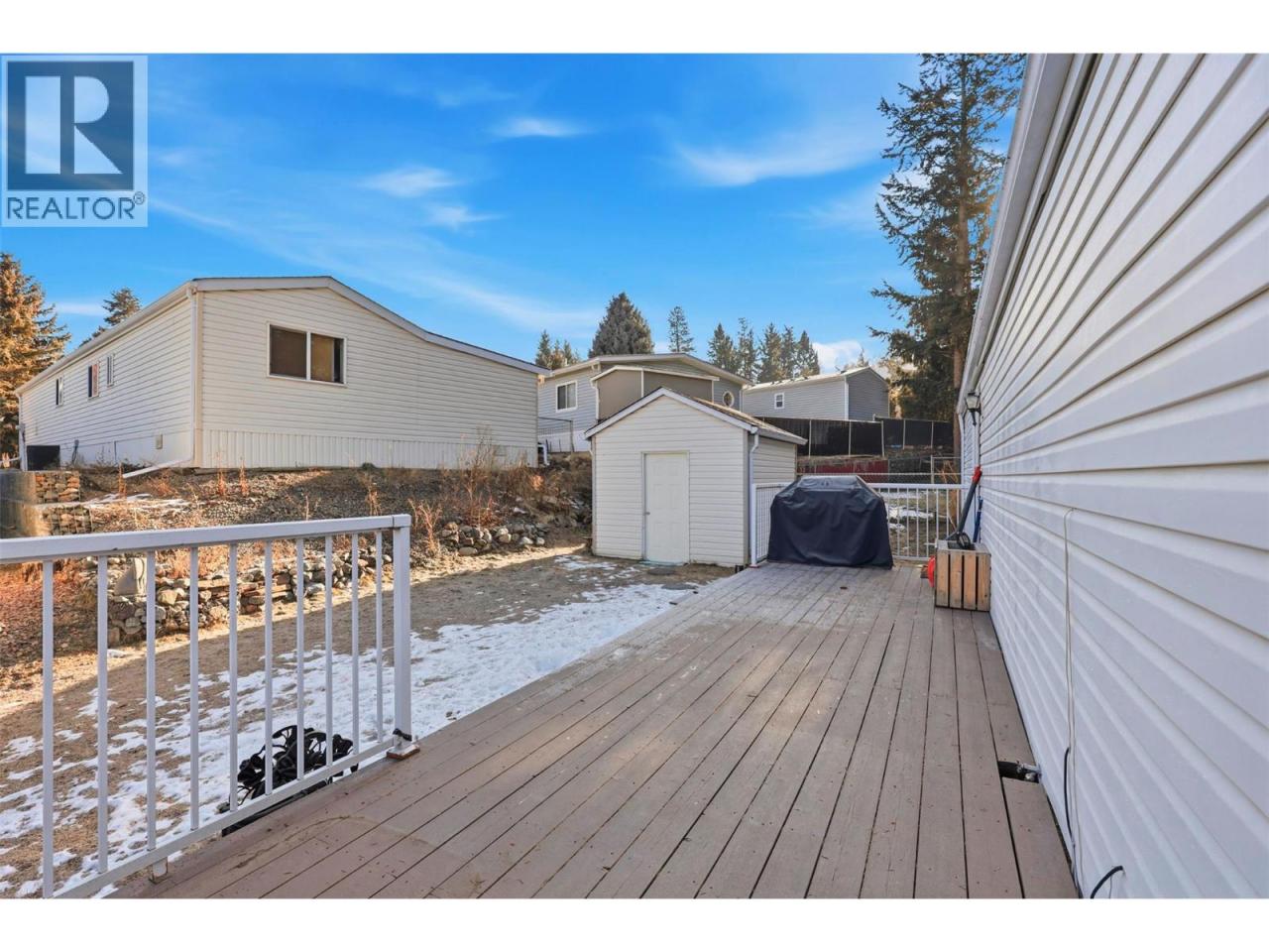 Welcome to Aberdeen Glen Village, a well-maintained bareland strata community where comfort meets convenience. This charming 2-bedroom, 1-bathroom home features an open-concept living, dining, and kitchen area with a vaulted ceiling that creates a bright and spacious feel. Step outside to a large deck offering privacy and a perfect spot to relax or entertain. The home backs directly onto a greenspace park. Recent updates include a newer asphalt roof, furnace, paint and flooring, all providing peace of mind for years to come. Additional highlights include air conditioning, a skylight in the 4-piece bathroom, garden boxes, and a 10x12 powered shed—perfect for storage or hobbies. Located close to amenities and scenic hiking and biking trails, this pet-friendly community offers a lifestyle that’s both convenient and outdoorsy, all with a low strata fee. A fantastic opportunity to enjoy affordable, low-maintenance living in a desirable location. (id:6769)