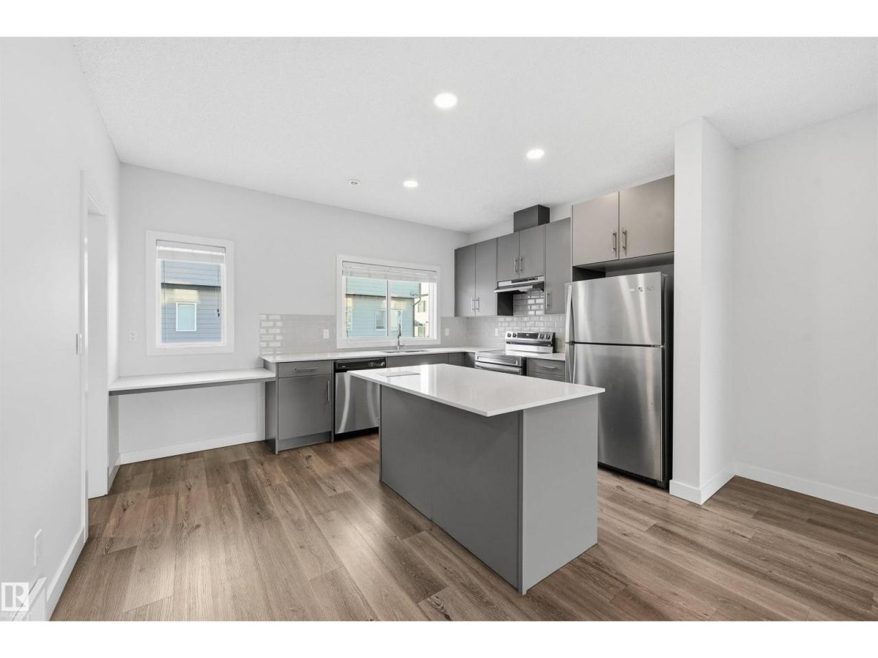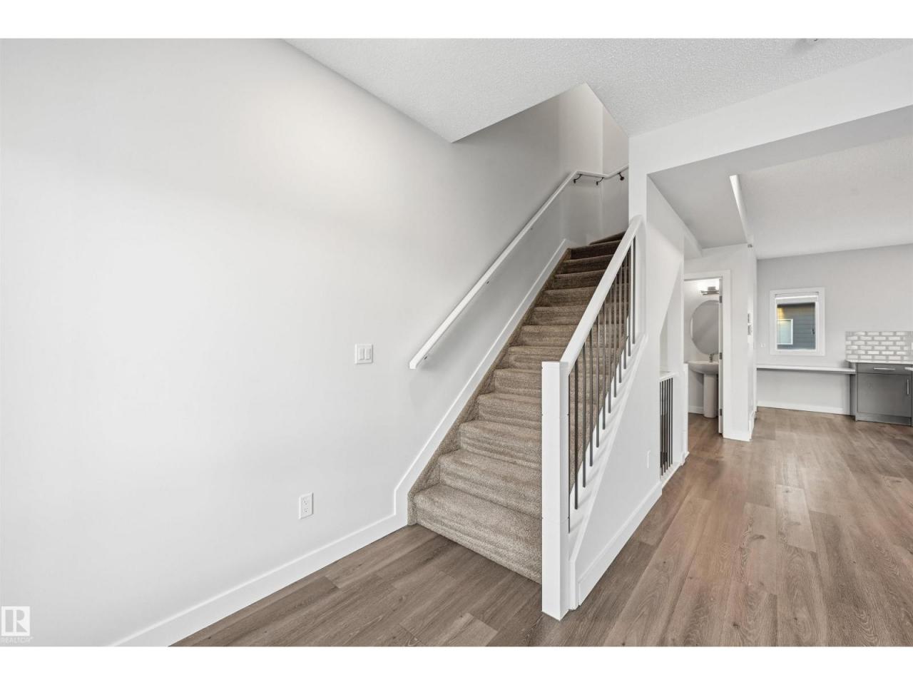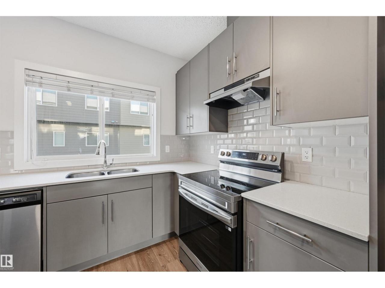 Bright, modern & spacious 3 bed/2.5 bath townhouse w/ double attached garage in the desirable Walker neighborhood. 1600 sf total living space. Perfect for 1st time home owners or investors! Main floor features 9' ceilings, vinyl plank floors & a roomy living rm filled with natural light. Kitchen offers a functional layout, stainless steel appliances, quartz countertops, tons of counter space, walk-in pantry, eating bar, & built in desk. Upper level also has 9' ceilings & large primary bedrm w/ 3pc ensuite & walk in closet. Two other well sized bedrms, 4 pc main bath & laundry complete this level. Ground floor flex room w/ large window is perfect for an office, play rm, exercise area, or extra storage space! Energy-efficient mechanical including HRV & tankless hot water for a lower utility bill. This well maintained complex offers visitor parking and nearby walking trails & lake. Conveniently close to shopping, schools & public transit. Quick access to commuter routes incl Henday! (id:6769)