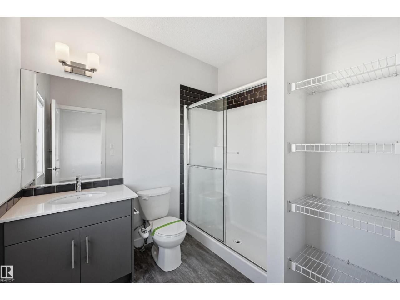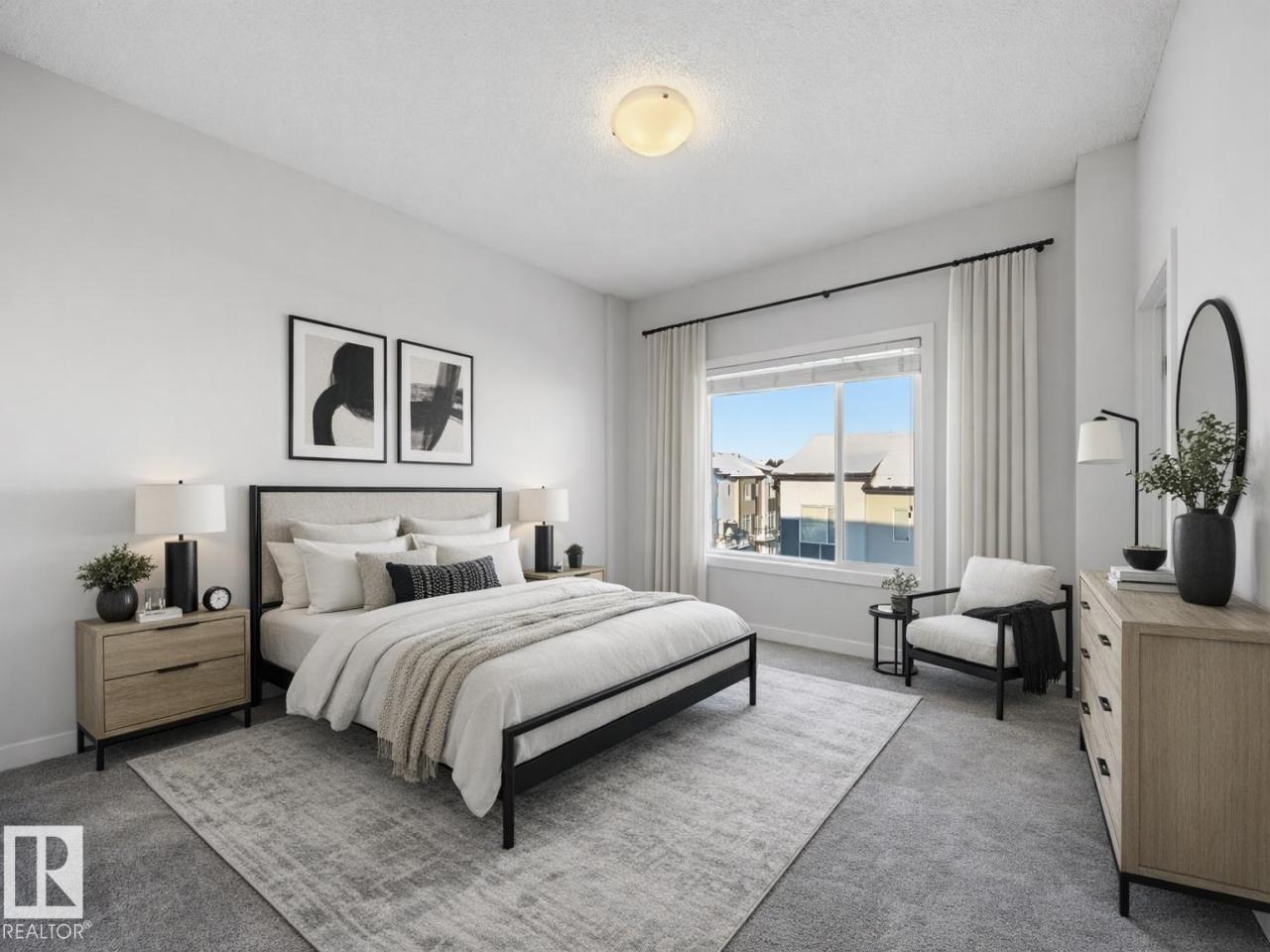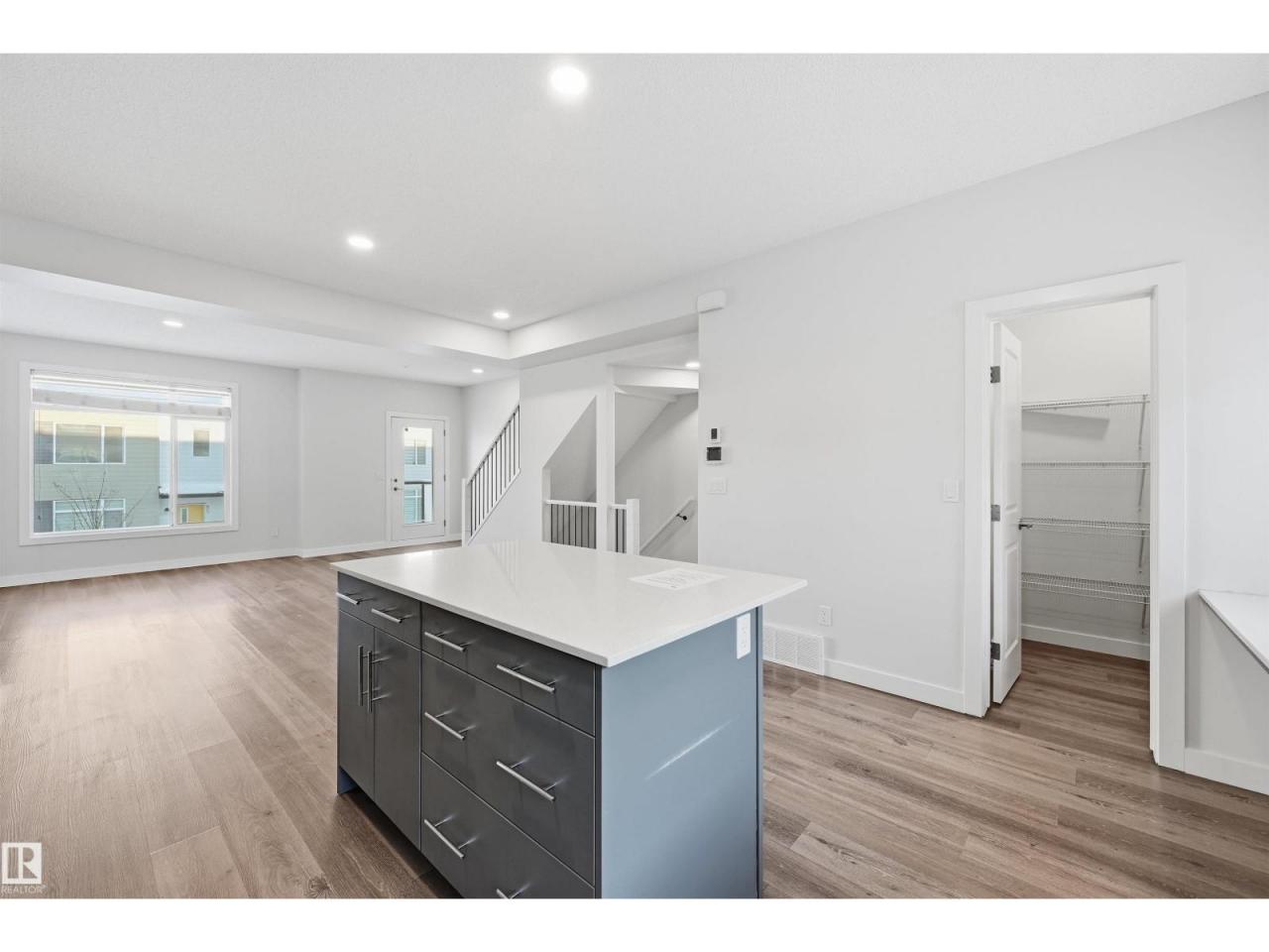 Bright, modern & spacious 3 bed/2.5 bath townhouse w/ double attached garage in the desirable Walker neighborhood. 1600 sf total living space. Perfect for 1st time home owners or investors! Main floor features 9' ceilings, vinyl plank floors & a roomy living rm filled with natural light. Kitchen offers a functional layout, stainless steel appliances, quartz countertops, tons of counter space, walk-in pantry, eating bar, & built in desk. Upper level also has 9' ceilings & large primary bedrm w/ 3pc ensuite & walk in closet. Two other well sized bedrms, 4 pc main bath & laundry complete this level. Ground floor flex room w/ large window is perfect for an office, play rm, exercise area, or extra storage space! Energy-efficient mechanical including HRV & tankless hot water for a lower utility bill. This well maintained complex offers visitor parking and nearby walking trails & lake. Conveniently close to shopping, schools & public transit. Quick access to commuter routes incl Henday! (id:6769)