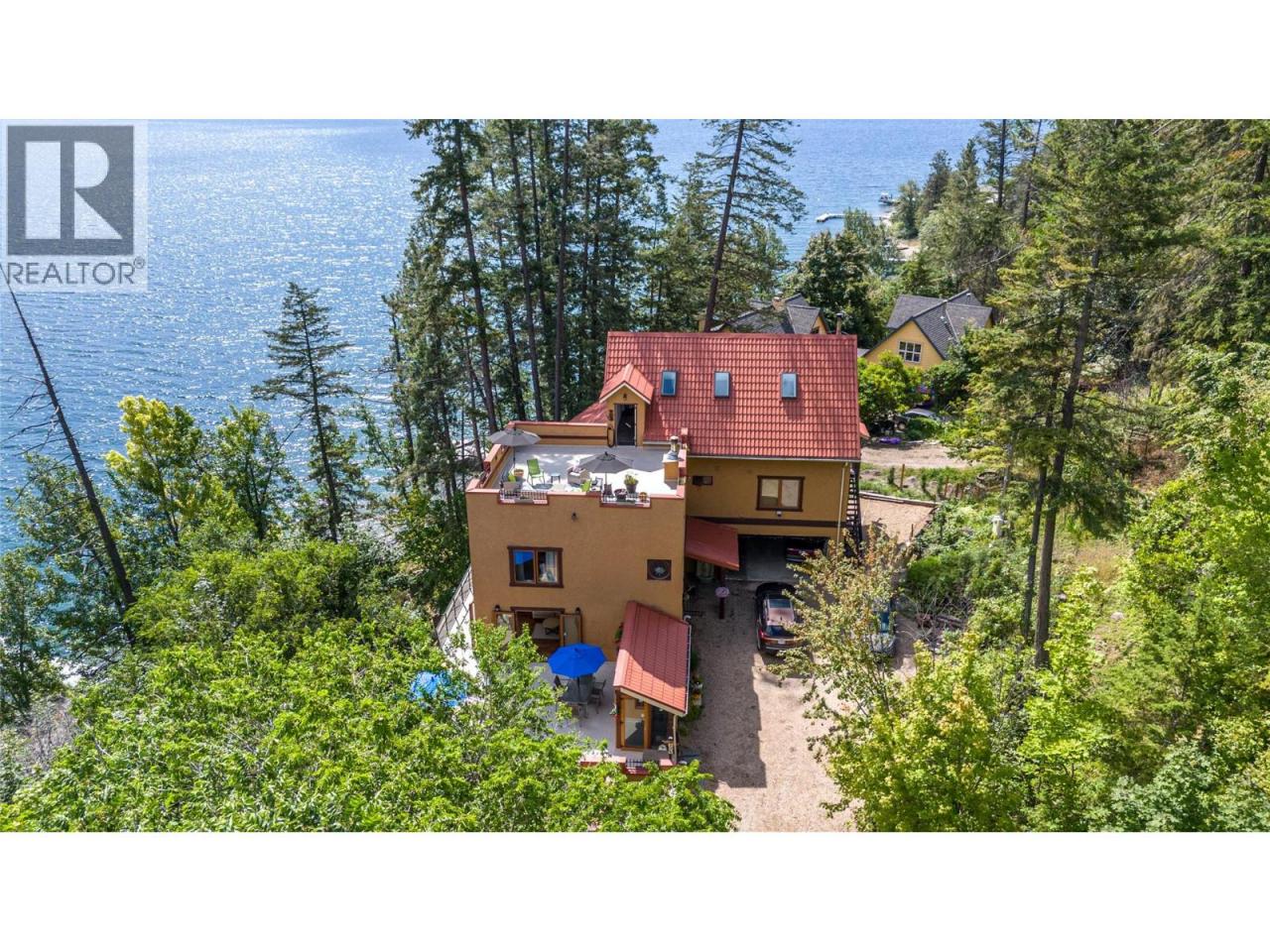 Experience lakefront living like never before with this expansive estate on Okanagan Lakeshore. Featuring 150 ft of desirable waterfront, this property is designed for ultimate relaxation and entertainment. Spanning nearly 2.5 acres, this privately set estate offers a rare opportunity for a secluded retreat, perfect for creating lasting memories with friends and family. This estate boasts four stories of containing a suite and in law suite, with several different decks or patios to enjoy breathtaking lake views. Inside, the property houses 6 bedrooms and 5 bathrooms with plenty of space for family and friends. The main floor features a grand kitchen with vaulted ceilings and abundant storage, seamlessly connected to a spacious living area. This level offers incredible panoramic views and access to both the garage and a large deck, making it a perfect space for gatherings. The property's expansive lake frontage features a large dock, accommodating multiple water toys and enhancing the overall lakefront experience. This estate offers a unique combination of luxury, privacy, and stunning natural beauty, making it an ideal location for both personal use and rental opportunities. (id:6769)