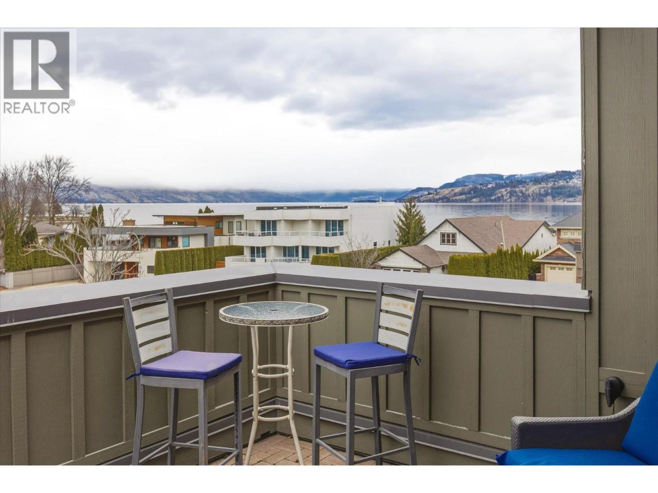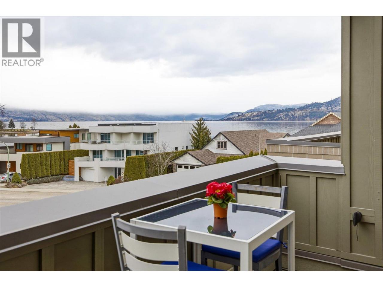 South-Facing Condo at The Abbott House with Partial Lake Views! Located in the highly desirable Abbott Street corridor, this beautifully maintained condo offers exceptional walkability to nearby beaches, the Lake, boutique shops, professional services and restaurants. This bright and spacious 2-bedroom + den, 2-bathroom residence is enhanced by abundant natural light with partial lake and mountain views. The open-concept kitchen, dining/living area features updated stainless- steel appliances (dishwasher, stove, above range microwave), a kitchen island with additional under-storage, a walk-in pantry and a cozy fireplace plus recent custom built-in cabinetry. Additional highlights include wide-plank laminate flooring and new custom window coverings throughout. The open den provides flexible space, perfect for a home office, a creative space or study area. The split-bedroom floor plan offers comfort and privacy, with both primary bedrooms featuring attached ensuites and located on opposite sides of the home—ideal for guests or family. Enjoy outdoor living with two large private patios—one accessed from a primary bedroom and the other from the living and dining area. An additional feature includes one secured underground parking stall, conveniently located near a designated storage room. Welcome to #304 at the Abbott House-where comfort, style and an unbeatable location come together. (id:6769)