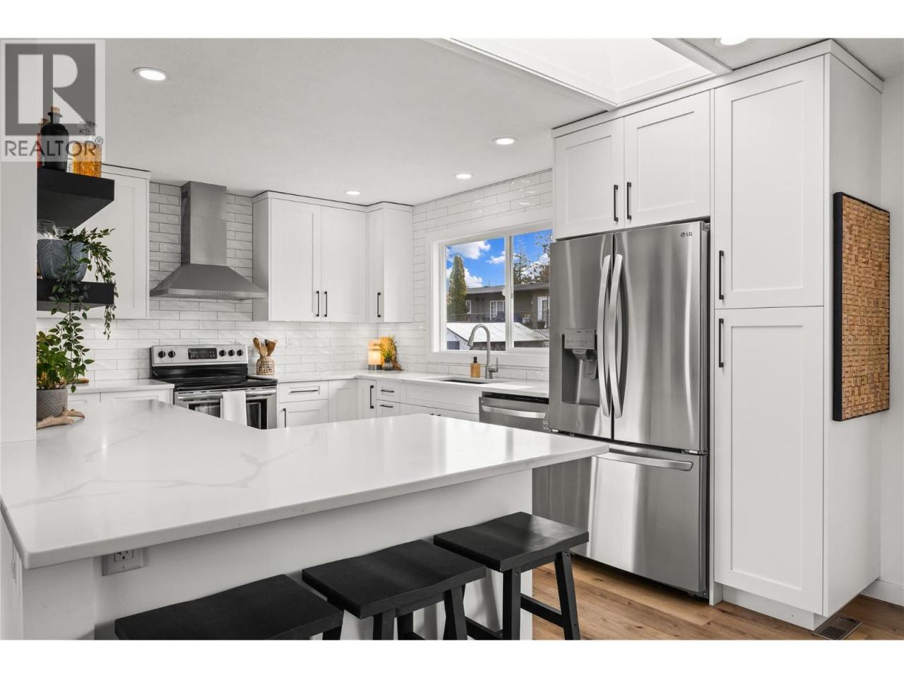 Beautifully updated and full of natural light, this modern West Kelowna home is set in a peaceful community just minutes from local wineries, Okanagan Lake, and everyday amenities. The main level features a bright open-concept living space with large windows and a charming brick surround wood-burning fireplace. The wrap-around kitchen is both stylish and functional with stainless steel appliances, a built-in pantry, and dine-up bar seating. Down the hall you’ll find a 4-piece main bathroom with a tile surround tub/shower combo and three bedrooms, including the spacious primary suite with a private 3-piece ensuite featuring a walk-in glass and tile shower. Downstairs, the freshly painted basement provides plenty of additional living space with a large family room featuring a freestanding gas fireplace, a rec room with a cozy wood-burning fireplace, an oversized fourth bedroom, generous storage, and a spacious laundry room with backyard access. The fully fenced backyard offers an abundance of greenspace, refreshed landscaping, and a storage shed. Additional highlights include central air, an attached garage, and plenty of extra parking, including space for your RV! (id:6769)