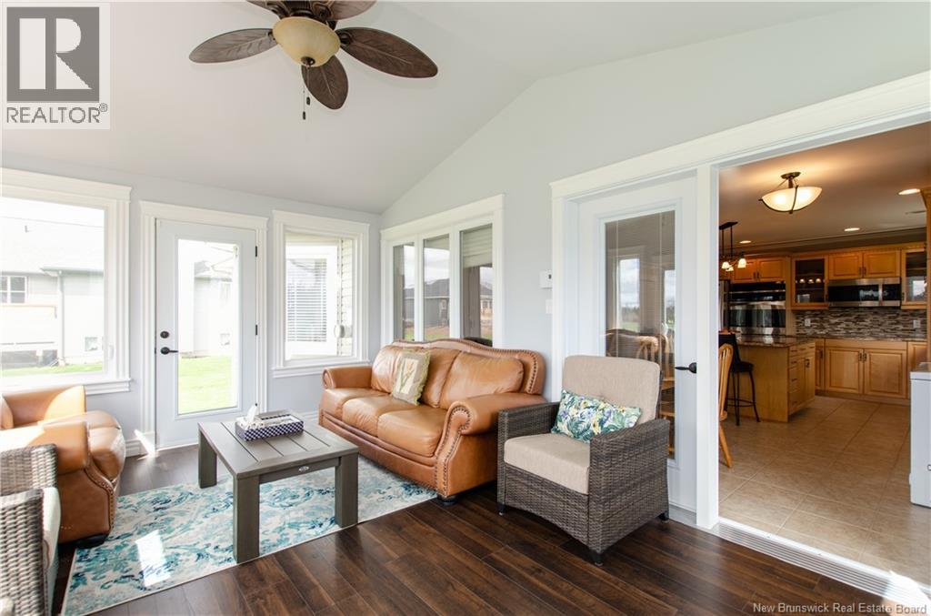 Beautiful Executive Raised Ranch located in Moncton's Royal Oaks community featuring the professionally designed Royal Oaks Golf and Country Club. This immaculate home sits on an oversized lot, walking distance to the clubhouse with restaurant and golf course facilities. As you enter into the spacious foyer, you are immediately drawn to the well designed hardwood stairs leading you to the formal living/dining room. You then continue to the open kitchen where you will find a chef's dream with plenty of cabinetry, center island with breakfast bar, all finished with granite countertops providing lots of work space. Off the kitchen you will notice a nicely finished family room with fireplace for relaxation and family gatherings. A beautiful sunroom with fireplace over looks the backyard with a patio area, great for outdoor cooking. The main floor is completed with a huge primary bedroom with fireplace, seating area and beautiful spa like ensuite. A second bedroom and full bathroom complete the main floor. As you move down to the lower level you will find a spacious large bedroom, full bath, a huge family room for relaxation, an additional bedroom or office, gym area with an infrared sauna. The owners are open to discuss available furniture you may be interested in. This home is a must see, so call your REALTOR® today for a viewing!!! (id:6769)