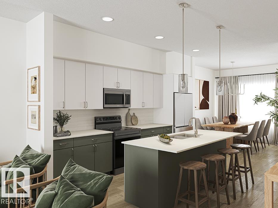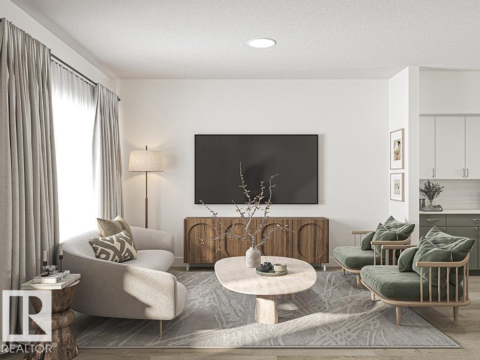 Beautifully crafted 2-storey home by Sterling Homes, blending modern style with practical living. The main floor features 9’ ceilings, luxury vinyl plank flooring, and a bright open-concept layout connecting the great room, dining area, and kitchen. The kitchen offers quartz countertops, a central island with eating ledge, and generous pantry storage. Large front and rear windows bring in plenty of natural light, creating a warm and inviting space. A convenient 2-piece powder room and backyard access with parking pad complete the main level. Upstairs features a spacious loft, three bedrooms, and a primary suite with walk-in closet and private 3-piece ensuite. Upper-floor laundry adds everyday convenience. Basement rough-in plumbing and a separate side entrance provide excellent future development potential. Option to add a detached double garage for added parking and storage. (id:6769)