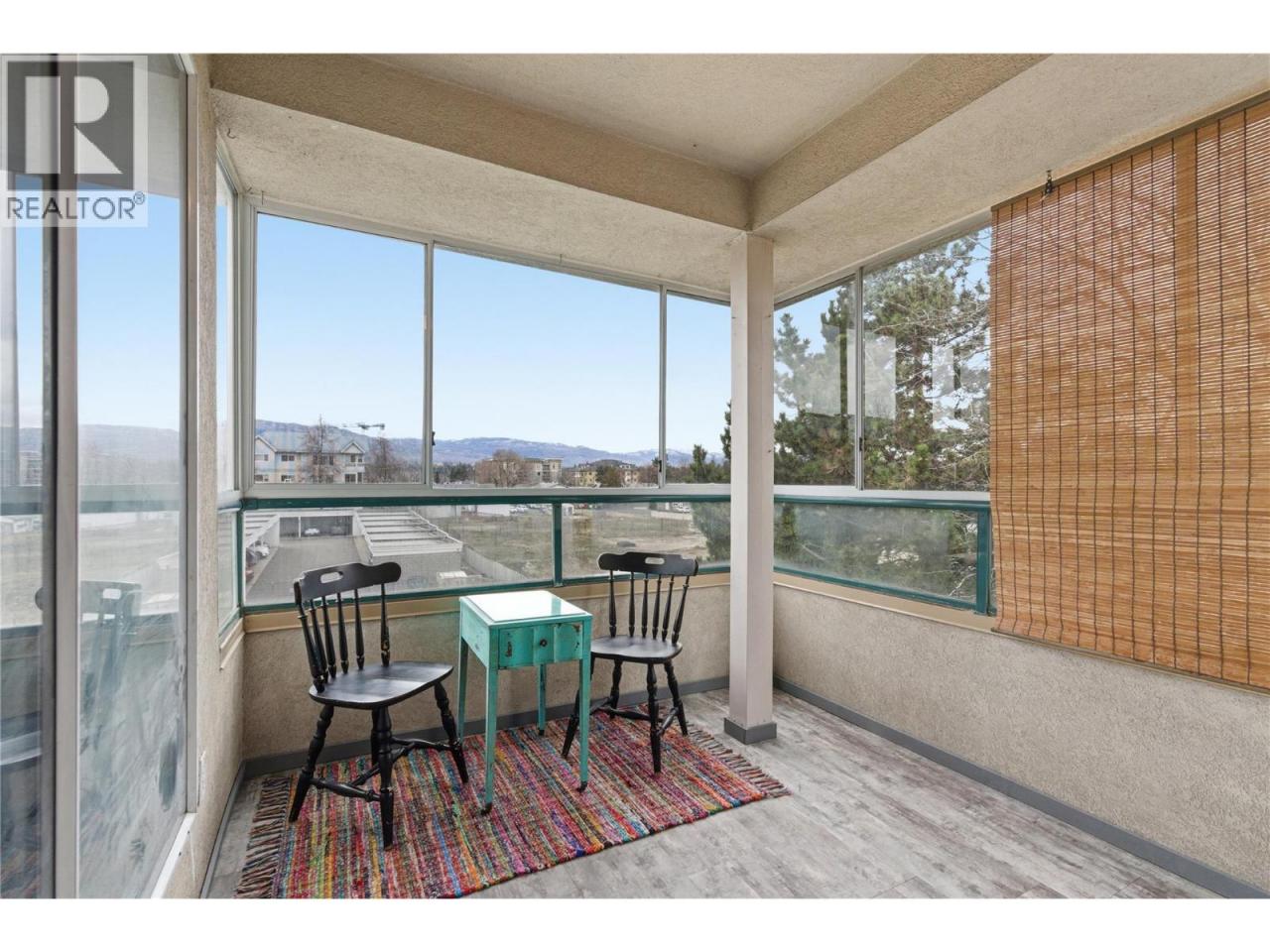 TOP-FLOOR CORNER UNIT in La Sierra, offering an abundance of natural light & beautiful mountain views. Tucked away on a quiet cul-de-sac, this 2-bed, 2-bath condo has been thoughtfully renovated & is move-in ready. The bright, open kitchen features crisp white cabinetry & overlooks the inviting living room, creating a functional space for everyday living & entertaining. Just off the kitchen, the dining area comfortably accommodates a table for 6. A smart layout places bedrooms on opposite ends of the unit, offering extra privacy. The spacious primary bedroom includes a full 4-piece ensuite, while the 2nd bedroom & full bathroom right beside it provide flexibility for guests, an office, or a home gym - the choice is yours. Enjoy your morning coffee or relax in the evening in the enclosed sunroom, surrounded by windows that showcase the views. Additional highlights include a large in-suite laundry room, secure underground parking, & a separate storage unit. Located in a highly walkable area, you'll appreciate having great restaurants & everyday services close at hand. This home also offers very quick access to midtown & the airport. It is close to downtown Kelowna, schools & playgrounds, & it's situated on the transit loop. One dog with a shoulder height of up to 22"", or 2 cats are allowed, making it a great option for pet owners. For more information, please visit our website. Don't miss this fantastic Kelowna opportunity! Book your private showing today. (id:6769)