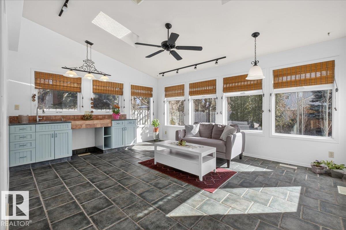 Experience luxury in Gariepy, just a block from the River Valley. This executive 7-bed, 4-bath home sits on a massive, private pie-shaped lot in a quiet cul-de-sac. You cannot beat this unique location—walking distance to top restaurants, bars, cafes, and amenities, plus minutes to West Edmonton Mall, the Anthony Henday, and St. Albert. Main floor bedroom / office. The heart of the home is a chef’s dream kitchen with top-notch high-end appliances, a 6-burner gas stove, and a massive two-level island. It flows into a heated sunroom, perfect for year-round views. The south-facing backyard is a private oasis with professional stonework, a koi pond, and a fire pit—an incredible space once the snow melts. The fully finished basement includes its own kitchen, ideal for a mother-in-law suite. With three bedrooms up, including a master oasis with an air-jet tub, this home is perfect for raising your kids near the city’s best schools. Nothing is missing; your family’s dream home is waiting. (id:6769)