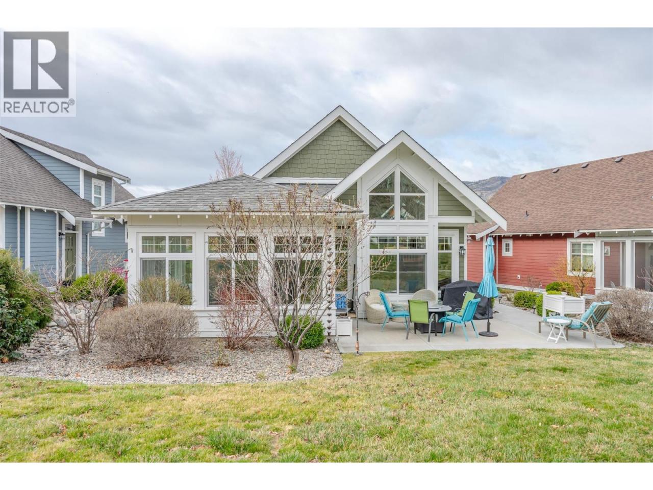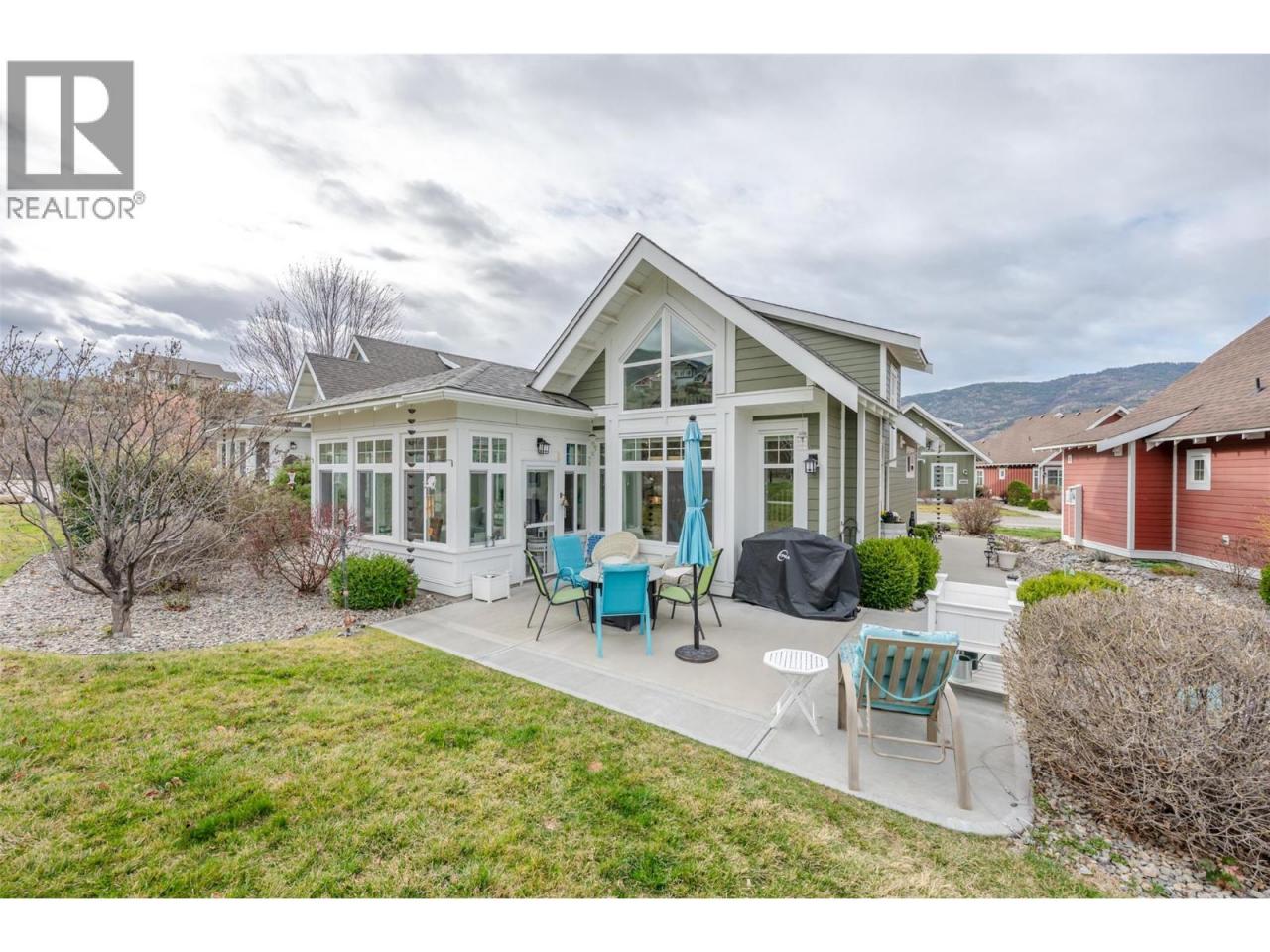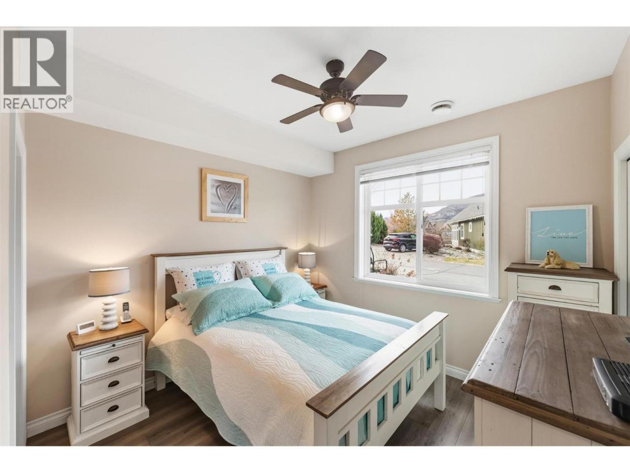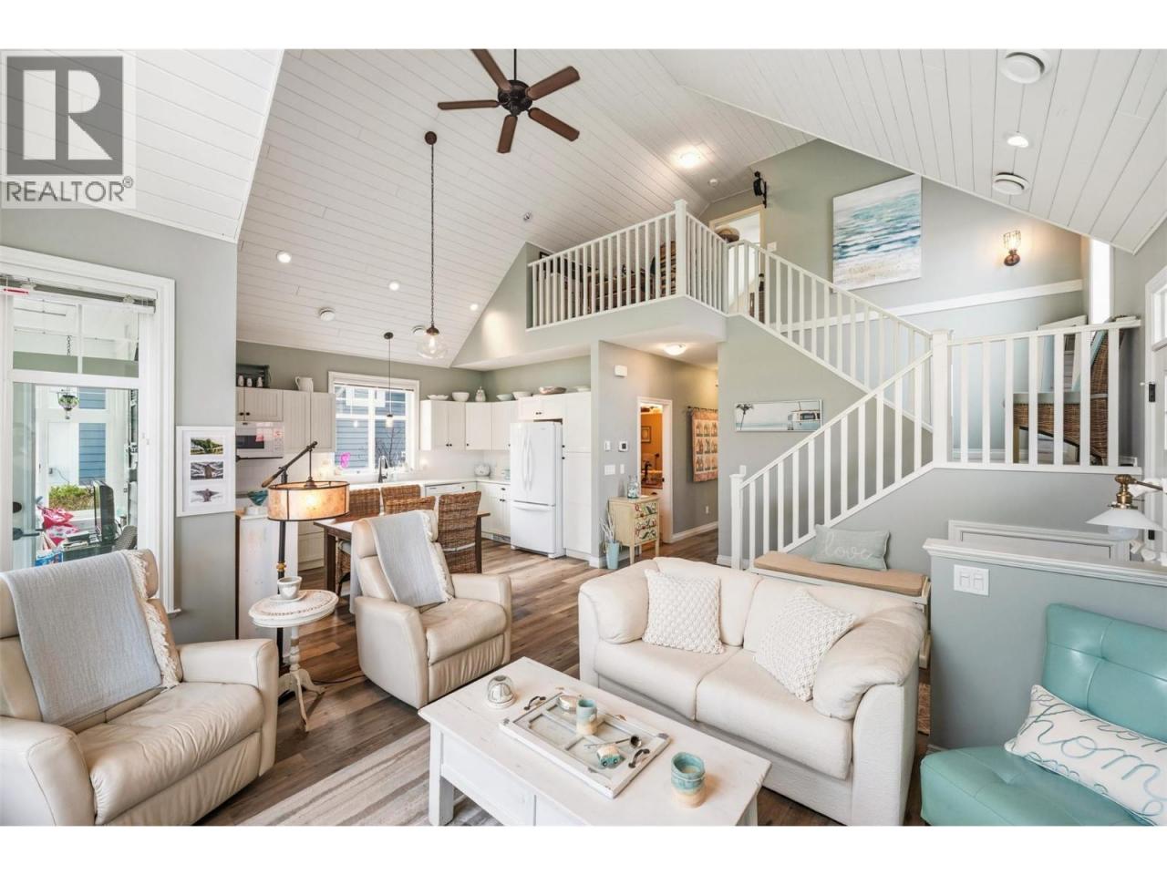 Welcome to The Cottages on Osoyoos Lake—an exceptional opportunity to own a beautifully maintained 3-bedroom, 2-bathroom cottage with a charming enclosed sunroom in the sought-after Meadows. Ideally located just a short stroll to the beach, clubhouse, pools, and amenities, this home offers a peaceful setting. With 1,230 sq ft of well-designed living space, the open-concept layout features vaulted ceilings, a bright great room, and seamless indoor-outdoor flow. The stylish kitchen offers quartz countertops, a farmhouse sink, upgraded appliances, and quality finishes throughout. The main level includes two bedrooms, including the primary suite, and a second full bathroom. Upstairs, a versatile loft and third bedroom provide ideal space for guests or family. The enclosed sunroom and extended patio create a relaxing outdoor retreat, with a northeast-facing backyard backing onto green space. Meticulously maintained by the original owners and never rented, this home also features geothermal heating and cooling, vinyl plank flooring, and tasteful décor. Residents enjoy over 1,800 ft of waterfront, sandy beach, marina, pools, hot tubs, a 7,000 sq ft clubhouse, fitness centre, trails, and more within a gated community. Short-term rentals permitted (4-night minimum). Leasehold property on Indigenous land—NO GST, NO Property Transfer Tax, and NO Vacancy Tax. HOA $600/month. (id:6769)
