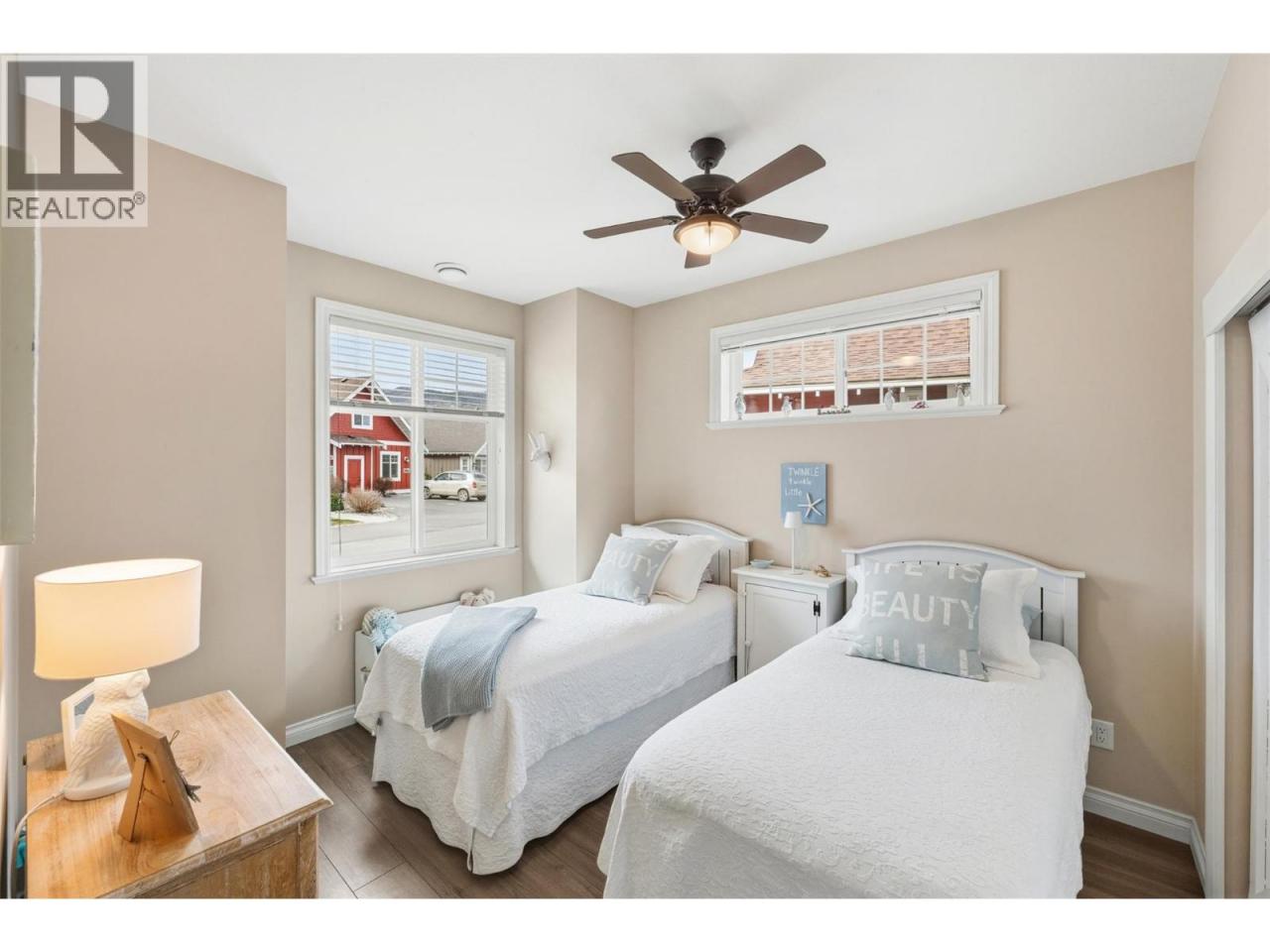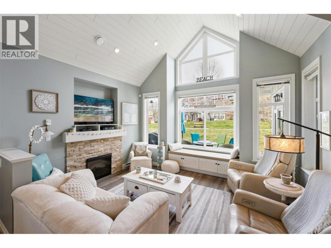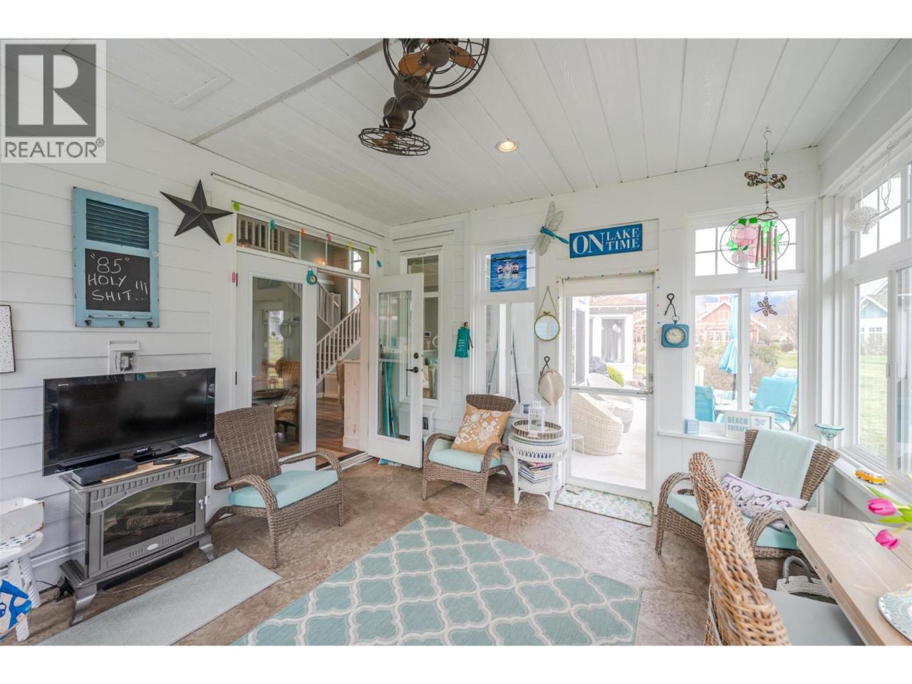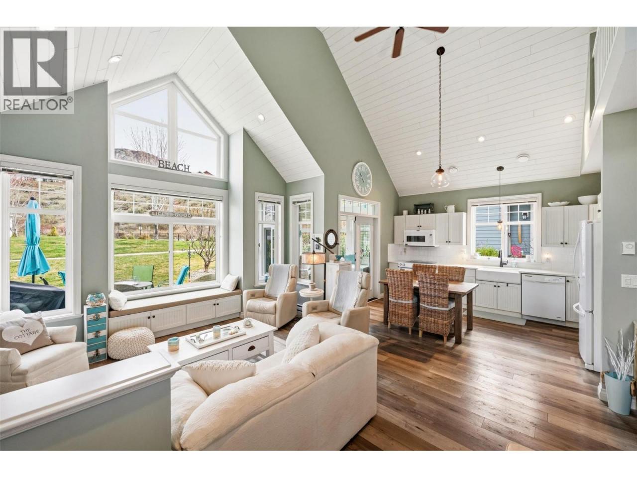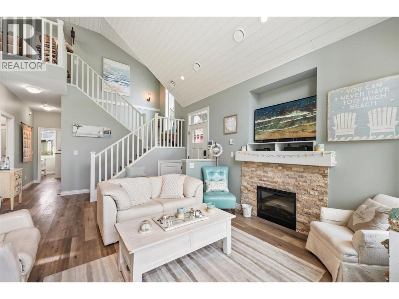 Welcome to The Cottages on Osoyoos Lake—an exceptional opportunity to own a beautifully maintained 3-bedroom, 2-bathroom cottage with a charming enclosed sunroom in the sought-after Meadows. Ideally located just a short stroll to the beach, clubhouse, pools, and amenities, this home offers a peaceful setting. With 1,230 sq ft of well-designed living space, the open-concept layout features vaulted ceilings, a bright great room, and seamless indoor-outdoor flow. The stylish kitchen offers quartz countertops, a farmhouse sink, upgraded appliances, and quality finishes throughout. The main level includes two bedrooms, including the primary suite, and a second full bathroom. Upstairs, a versatile loft and third bedroom provide ideal space for guests or family. The enclosed sunroom and extended patio create a relaxing outdoor retreat, with a northeast-facing backyard backing onto green space. Meticulously maintained by the original owners and never rented, this home also features geothermal heating and cooling, vinyl plank flooring, and tasteful décor. Residents enjoy over 1,800 ft of waterfront, sandy beach, marina, pools, hot tubs, a 7,000 sq ft clubhouse, fitness centre, trails, and more within a gated community. Short-term rentals permitted (4-night minimum). Leasehold property on Indigenous land—NO GST, NO Property Transfer Tax, and NO Vacancy Tax. HOA $600/month. (id:6769)