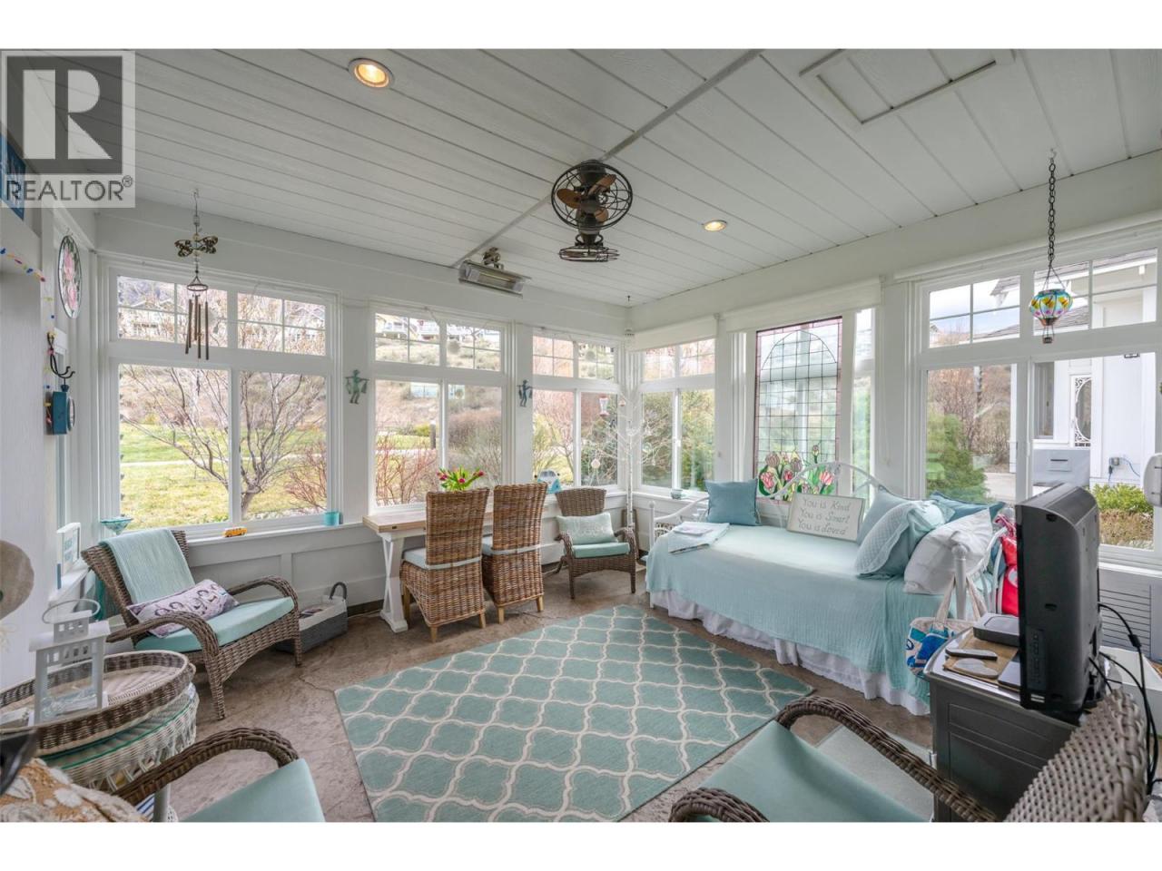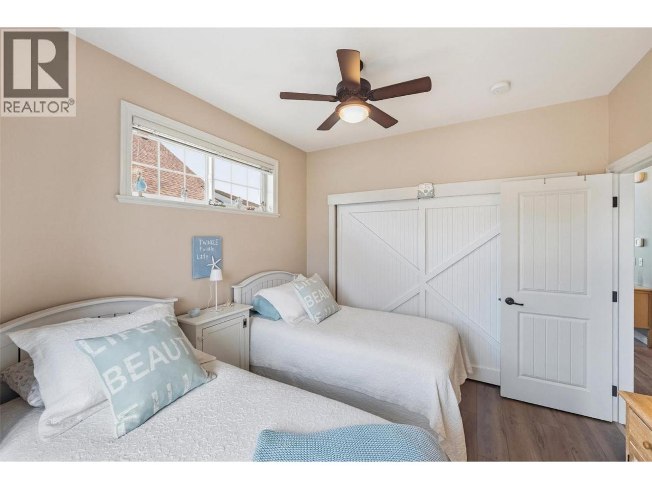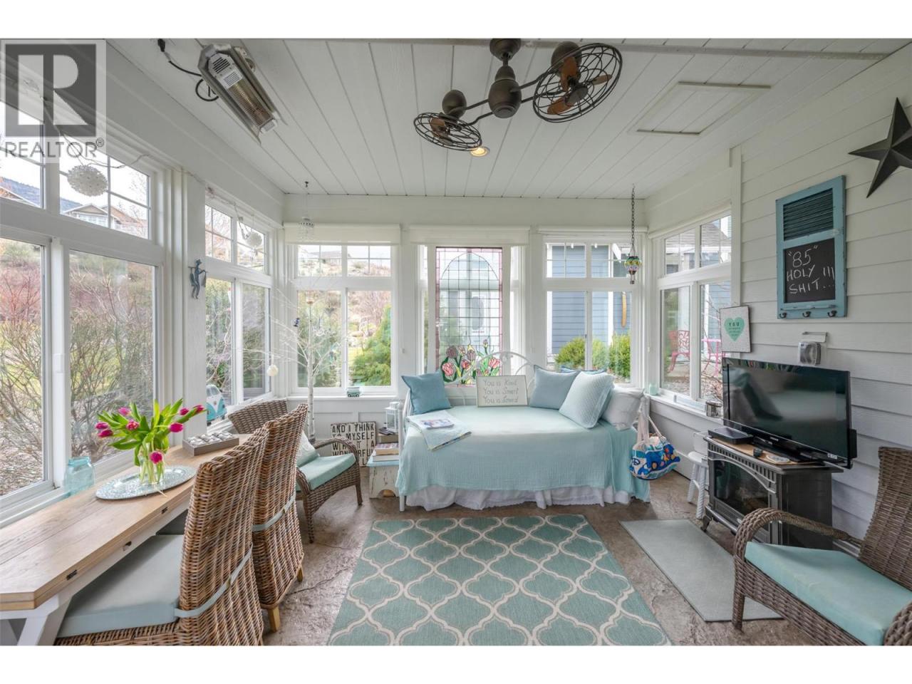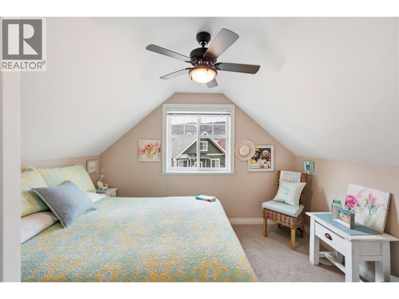 Welcome to The Cottages on Osoyoos Lake—an exceptional opportunity to own a beautifully maintained 3-bedroom, 2-bathroom cottage with a charming enclosed sunroom in the sought-after Meadows. Ideally located just a short stroll to the beach, clubhouse, pools, and amenities, this home offers a peaceful setting. With 1,230 sq ft of well-designed living space, the open-concept layout features vaulted ceilings, a bright great room, and seamless indoor-outdoor flow. The stylish kitchen offers quartz countertops, a farmhouse sink, upgraded appliances, and quality finishes throughout. The main level includes two bedrooms, including the primary suite, and a second full bathroom. Upstairs, a versatile loft and third bedroom provide ideal space for guests or family. The enclosed sunroom and extended patio create a relaxing outdoor retreat, with a northeast-facing backyard backing onto green space. Meticulously maintained by the original owners and never rented, this home also features geothermal heating and cooling, vinyl plank flooring, and tasteful décor. Residents enjoy over 1,800 ft of waterfront, sandy beach, marina, pools, hot tubs, a 7,000 sq ft clubhouse, fitness centre, trails, and more within a gated community. Short-term rentals permitted (4-night minimum). Leasehold property on Indigenous land—NO GST, NO Property Transfer Tax, and NO Vacancy Tax. HOA $600/month. (id:6769)