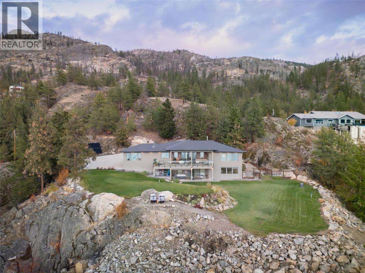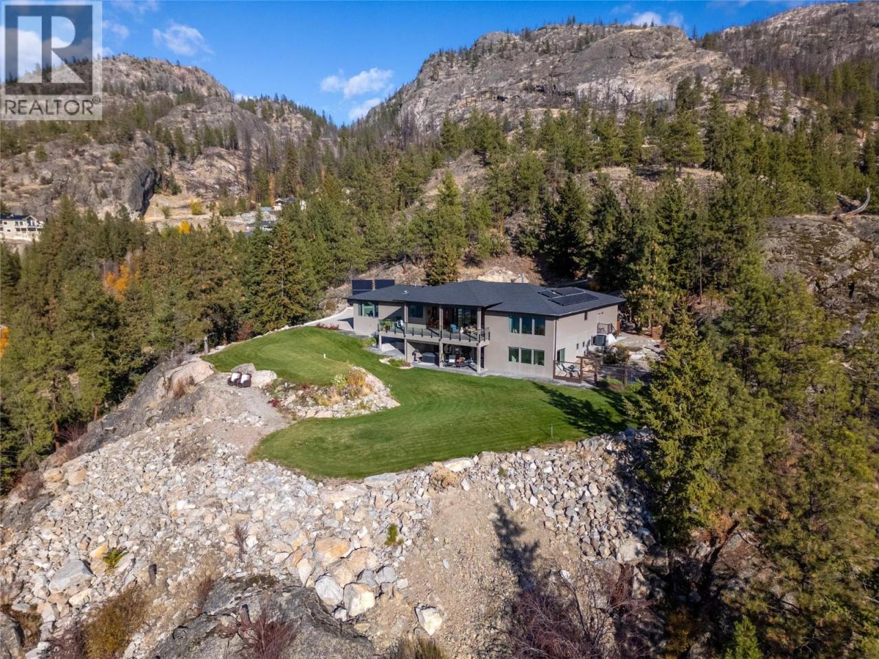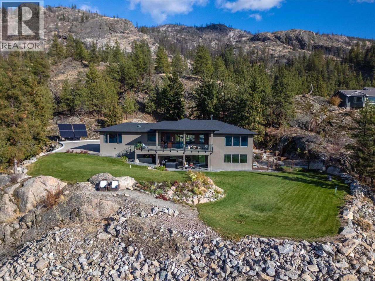 CLICK VIDEO. When they say Real Estate is all about location…this is it. Nestled on a mountainside, this private estate of just under 4 acres offers breathtaking views of Skaha Lake, surrounded by natural peace and tranquility. This exceptional 4-bedroom, 4-bathroom residence is perfectly positioned to capture the essence of Okanagan living, with expansive windows that fill the home with natural light. The open-concept living and dining areas flow seamlessly onto a sprawling deck showcasing 180-degree views of the lake and valley. The chef-inspired kitchen features a full walk-in pantry, a 5-burner gas cooktop and oven, and a double stone sink perfectly placed beneath a window overlooking the outdoors. A gated entry lead to a beautifully landscaped setting showcasing this 4,200 sq ft home designed for both elegance and comfort. The primary suite offers panoramic lake views and a spa-like ensuite with a double walk-in shower. The lower level with a convenient SEPARATE ENTRANCE, includes two spacious bedrooms with walk-out access to the patio and a generous backyard with a hot tub. Perfect to host your guests or run an BnB. Built for modern efficiency, this home features solar panels, a full off-grid system with battery storage and gas backup generators, underground irrigation, and phantom screens designed to withstand strong winds. A full double garage and ample extra parking complete this stunning, self-sustaining property. A true blend of luxury and tranquility in the Okanagan. (id:6769)