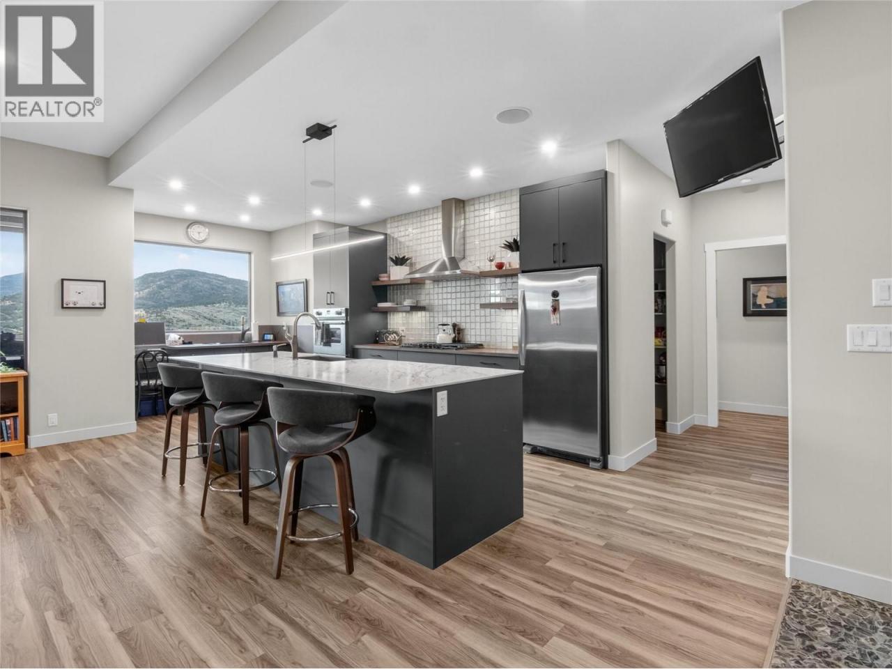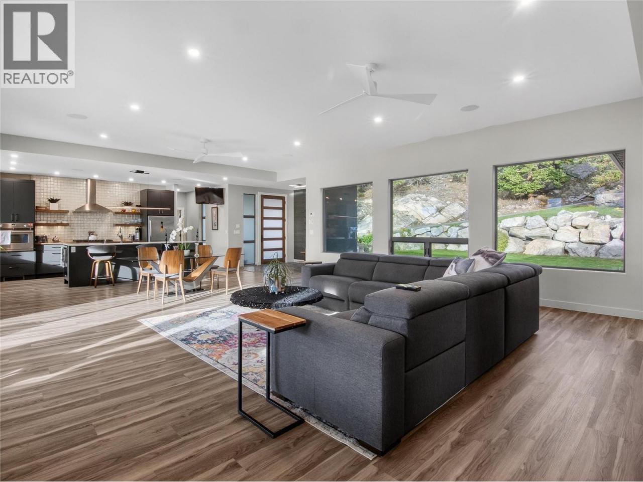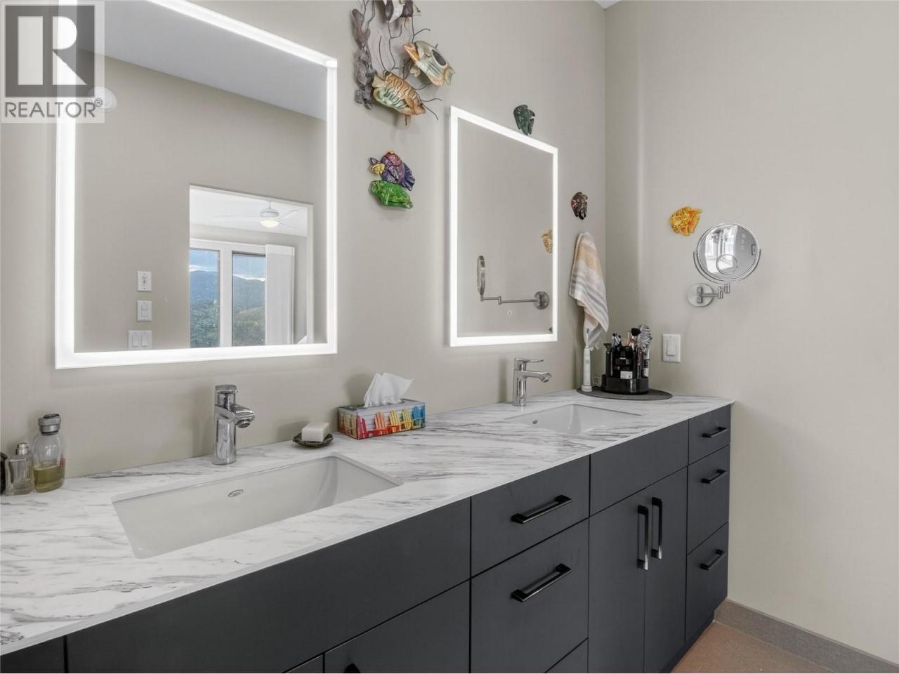 CLICK VIDEO. When they say Real Estate is all about location…this is it. Nestled on a mountainside, this private estate of just under 4 acres offers breathtaking views of Skaha Lake, surrounded by natural peace and tranquility. This exceptional 4-bedroom, 4-bathroom residence is perfectly positioned to capture the essence of Okanagan living, with expansive windows that fill the home with natural light. The open-concept living and dining areas flow seamlessly onto a sprawling deck showcasing 180-degree views of the lake and valley. The chef-inspired kitchen features a full walk-in pantry, a 5-burner gas cooktop and oven, and a double stone sink perfectly placed beneath a window overlooking the outdoors. A gated entry lead to a beautifully landscaped setting showcasing this 4,200 sq ft home designed for both elegance and comfort. The primary suite offers panoramic lake views and a spa-like ensuite with a double walk-in shower. The lower level with a convenient SEPARATE ENTRANCE, includes two spacious bedrooms with walk-out access to the patio and a generous backyard with a hot tub. Perfect to host your guests or run an BnB. Built for modern efficiency, this home features solar panels, a full off-grid system with battery storage and gas backup generators, underground irrigation, and phantom screens designed to withstand strong winds. A full double garage and ample extra parking complete this stunning, self-sustaining property. A true blend of luxury and tranquility in the Okanagan. (id:6769)